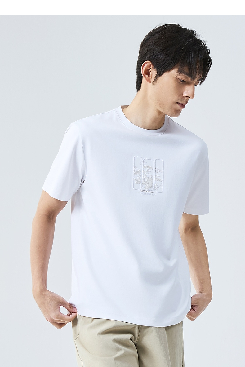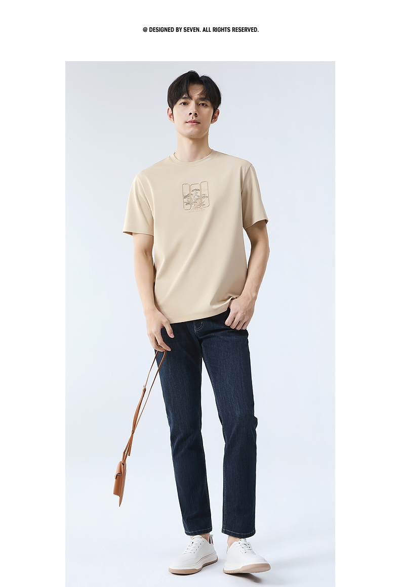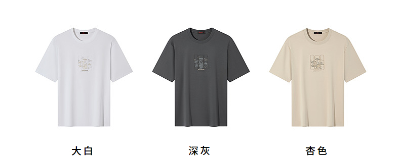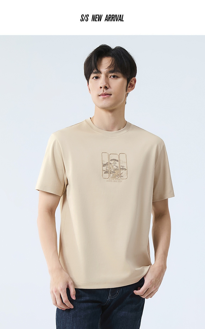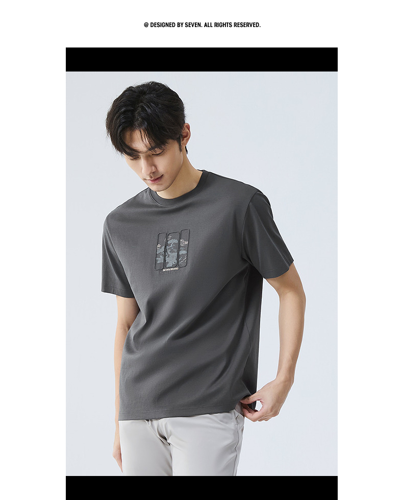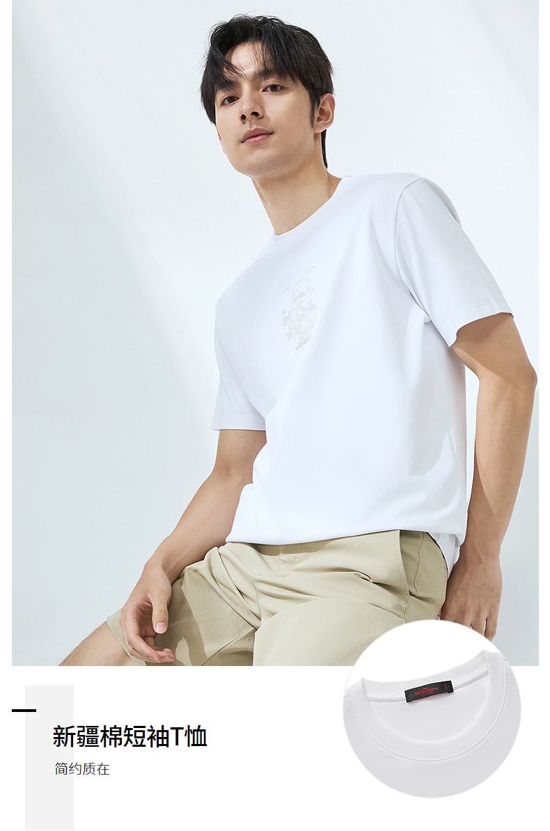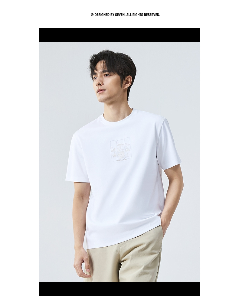 柒牌男士宽松圆领短袖T恤衫男2025夏季薄款植物花卉休闲百搭上衣128T72900