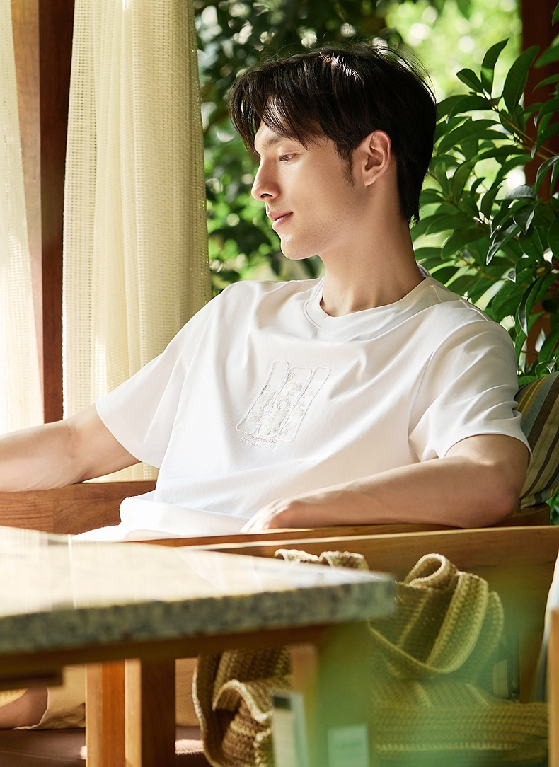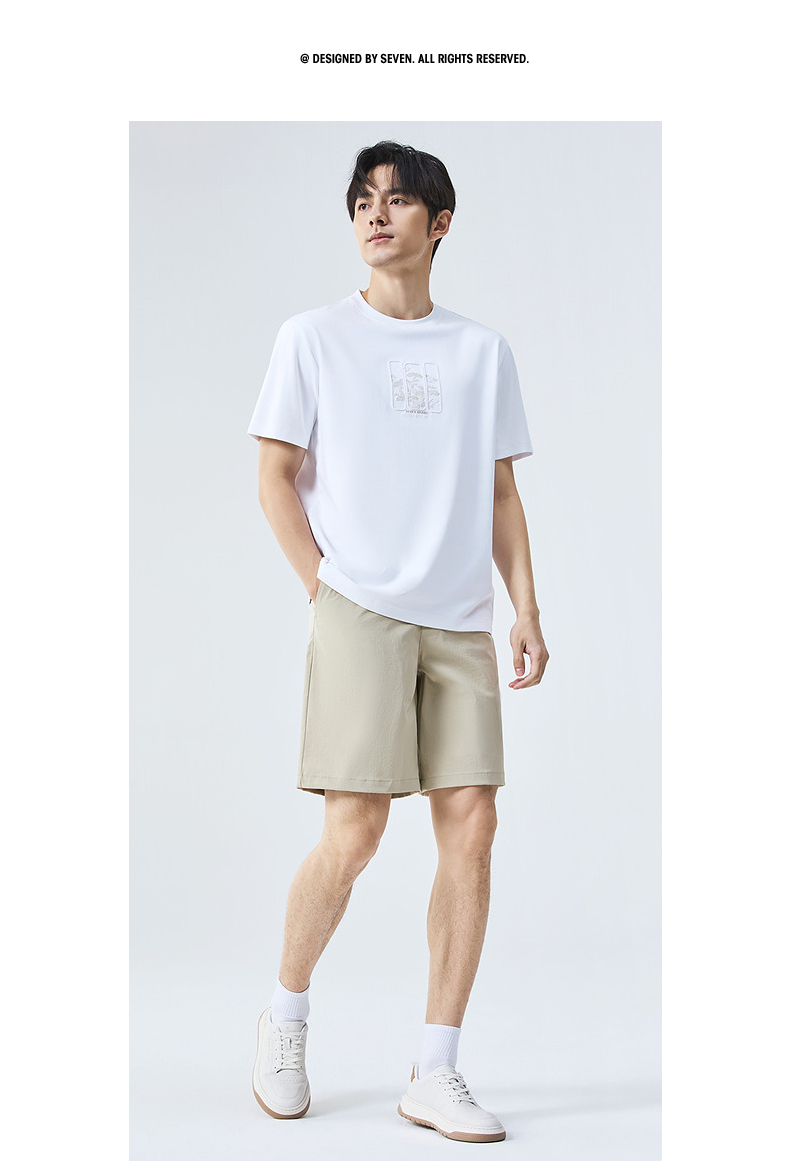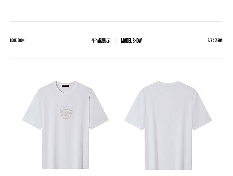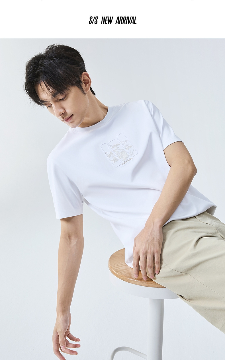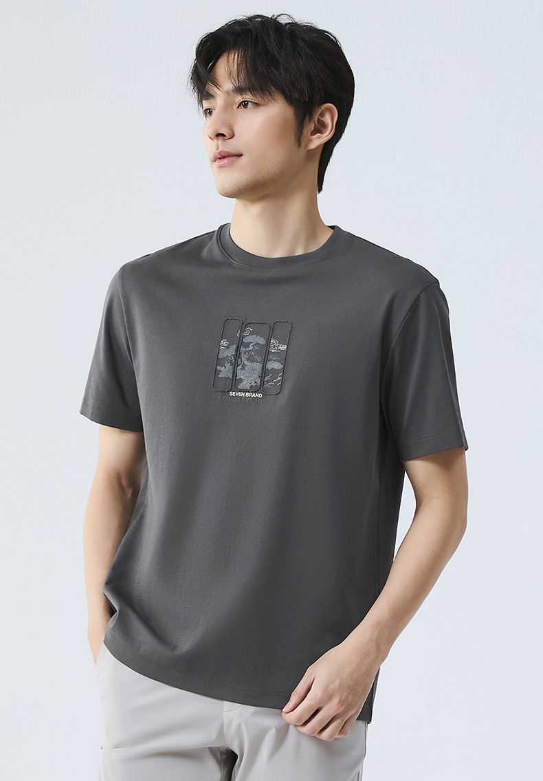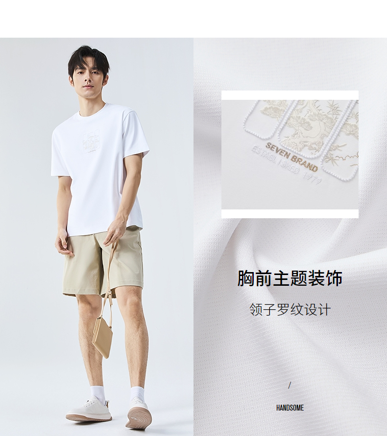 柒牌男士宽松圆领短袖T恤衫男2025夏季薄款植物花卉休闲百搭上衣128T72900