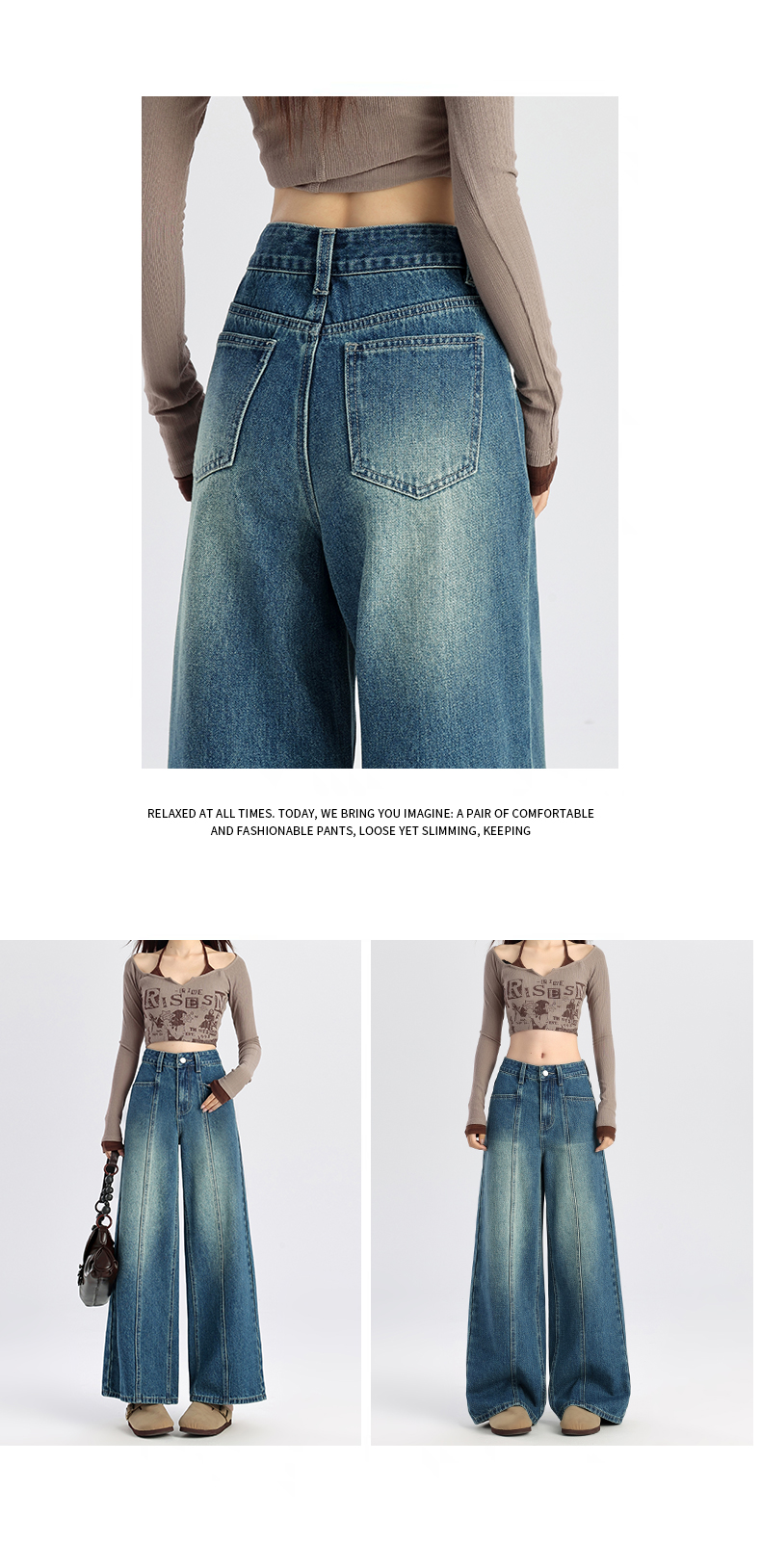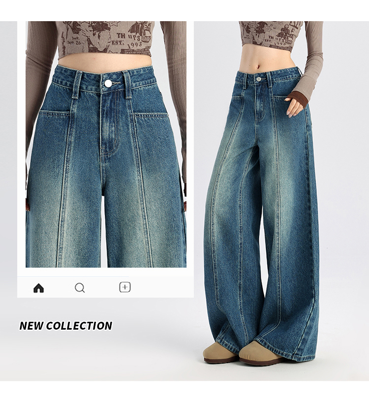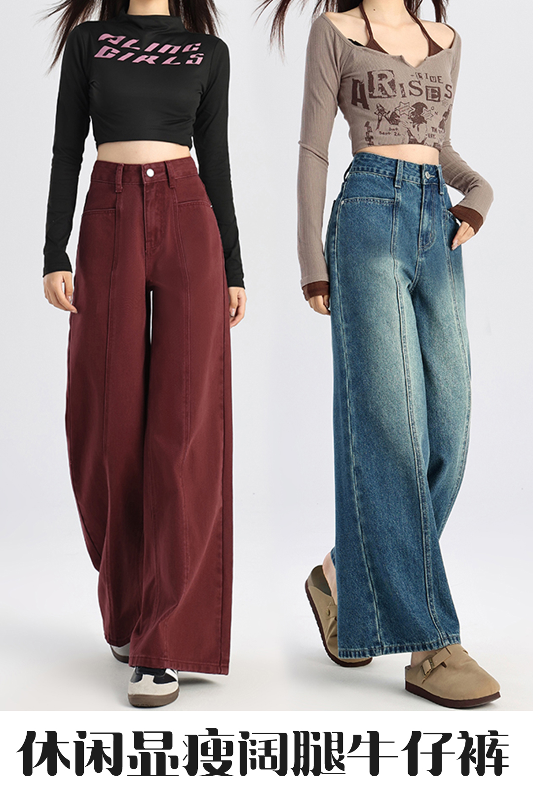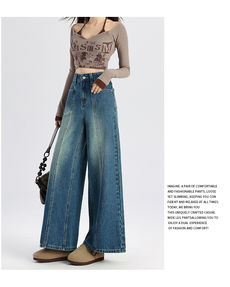 馥迦 休闲显瘦牛仔裤阔腿裤