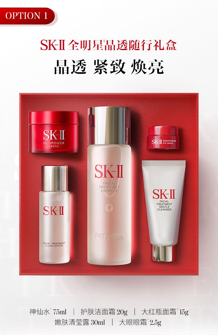 【美丽全开】新版SK-II全明星晶透随行装(五件套)「75ml+30ml+20g+15g+2.5g」送礼袋
