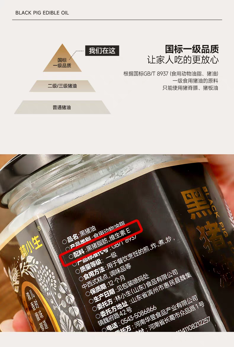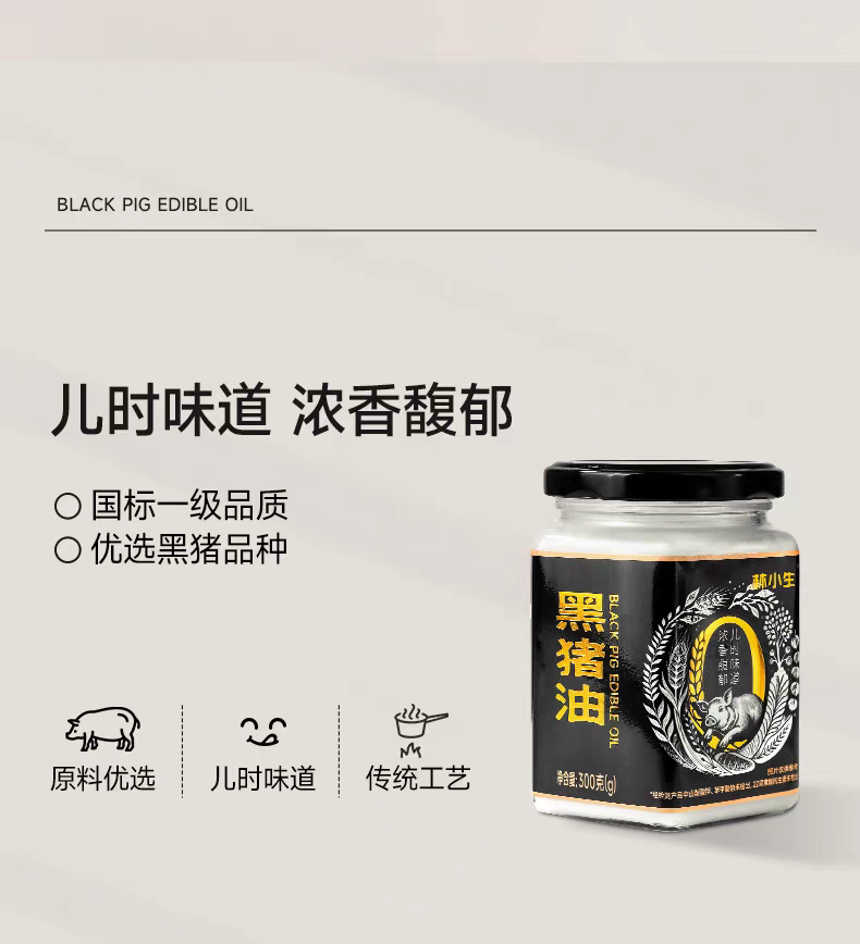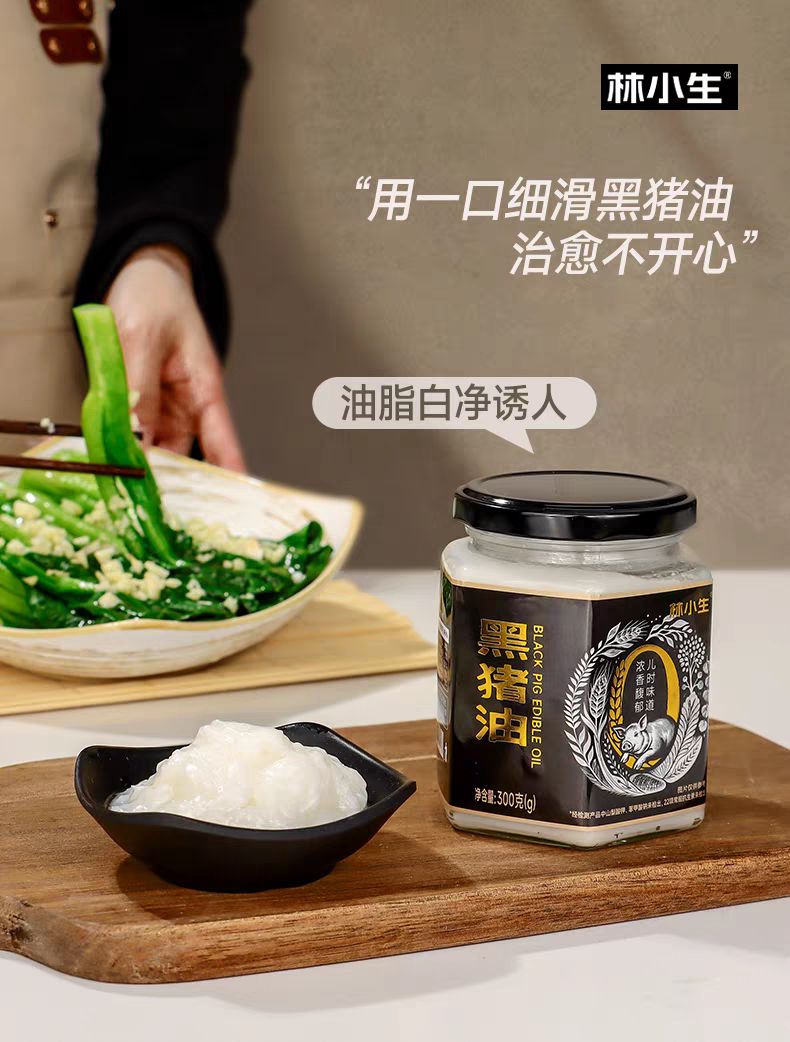 林小生黑猪油 300g*2罐 配料干净 优选跑山黑猪板油 传统人工慢熬 色泽奶白 醇香细腻无杂质 炒菜拌饭