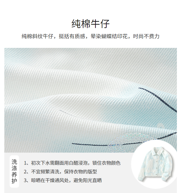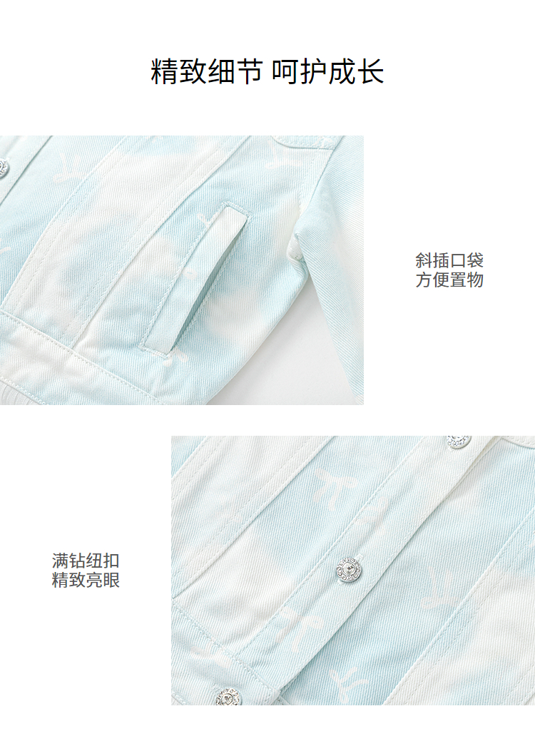 巴拉巴拉儿童牛仔外套女童装春季晕染蝴蝶结印花上衣纯棉舒适时尚