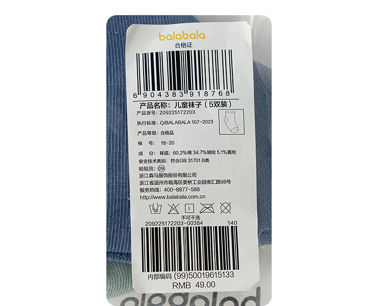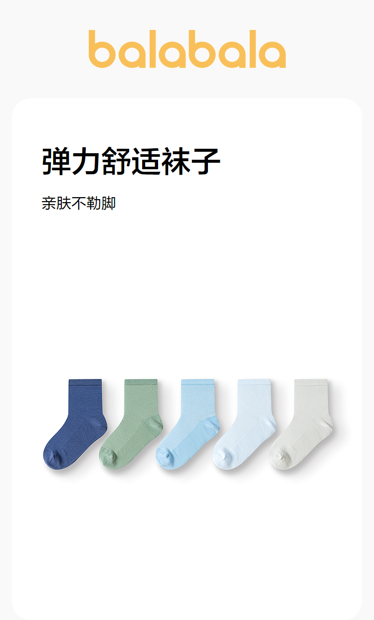 巴拉巴拉儿童袜子夏季网眼儿童运动风袜透气男女童小童大童五双装