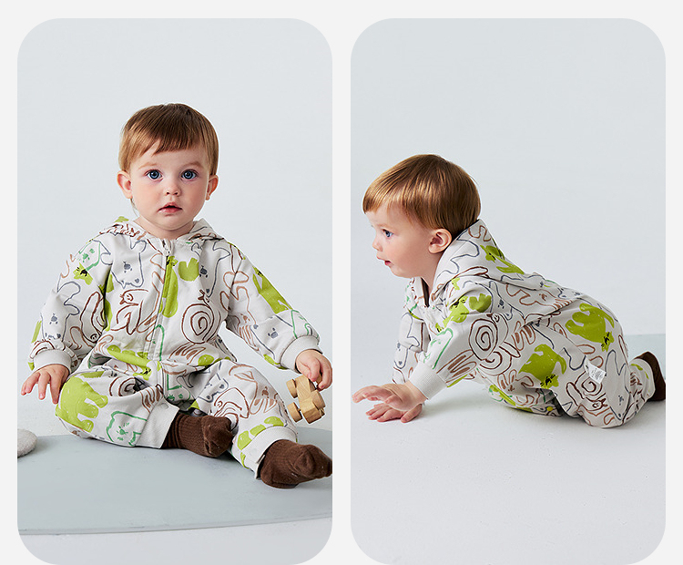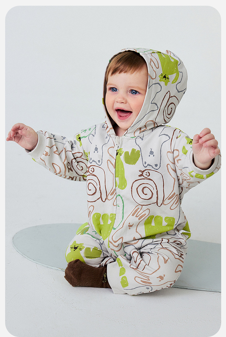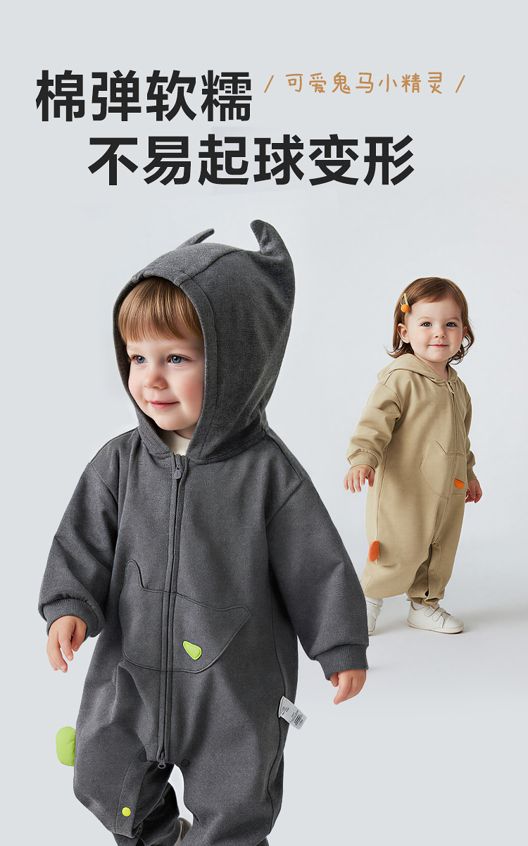 迷你巴拉巴拉男女童宝宝柔软可爱造型连帽连体衣可外出爬服春秋季