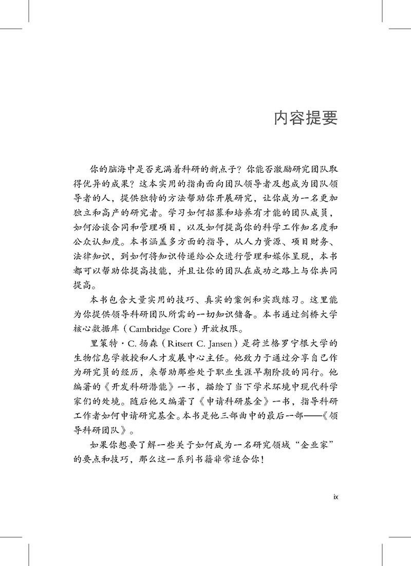 领导科研团队 李乃适译 科研人员早期职业生涯系列 管理已经获得资助科研项目成功处理所有相关职责指导 中国协和医科大学出版社