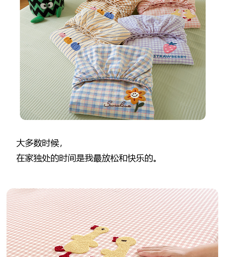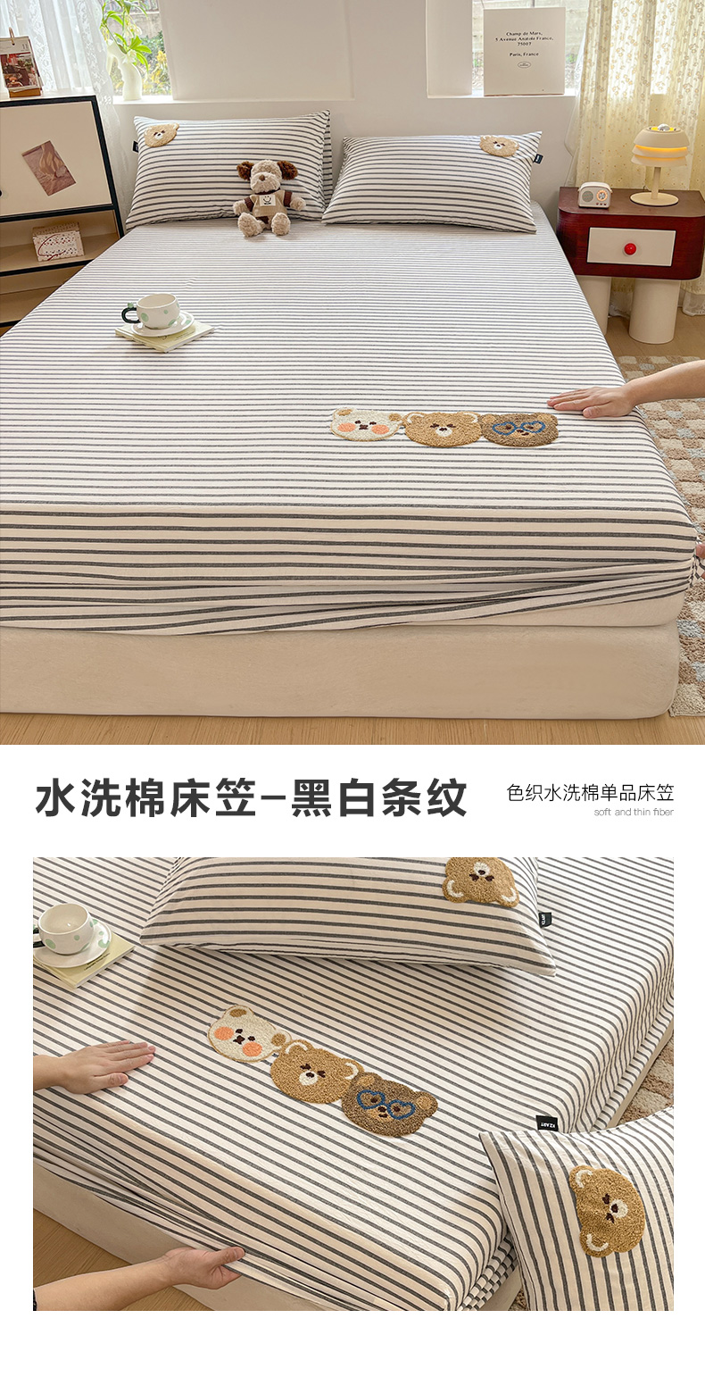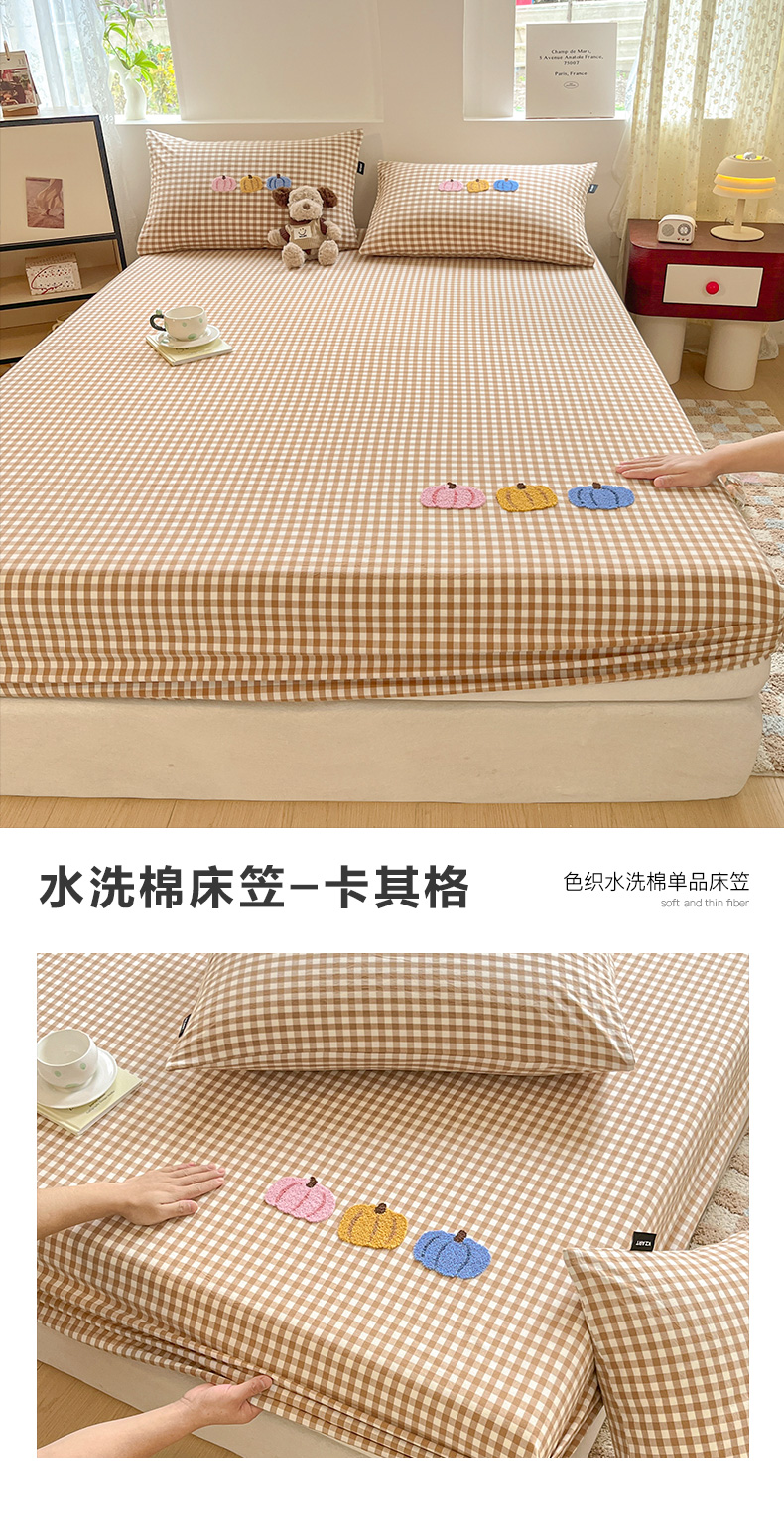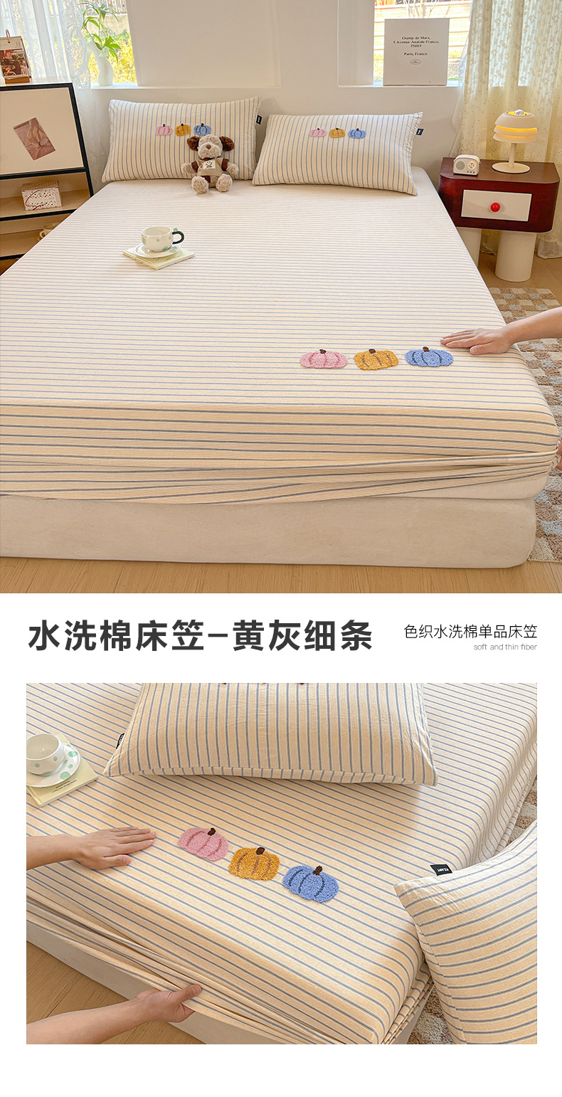 2025春夏色织水洗棉单品床笠、夏被 软糯柔韧耐磨透气全棉床笠三件套