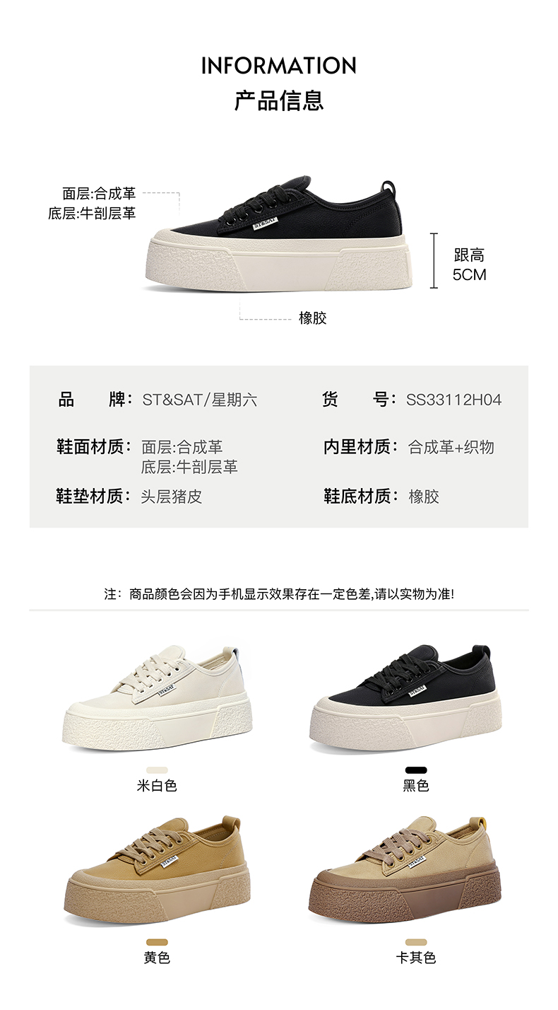 星期六简约松糕厚底休闲板鞋SS33112H04