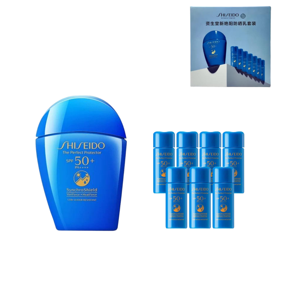 【一般贸易】资生堂蓝胖子防晒霜八件套 50ml*1+防晒乳7ml*7
