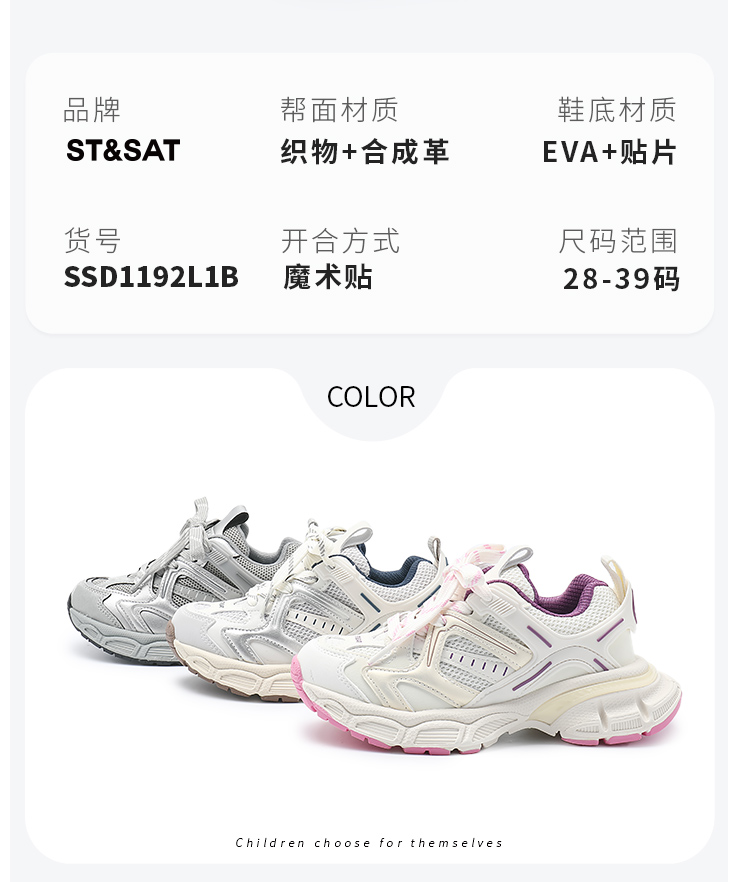 【童鞋】星期六机能风网面透气男女童老爹鞋SSD1192L1B