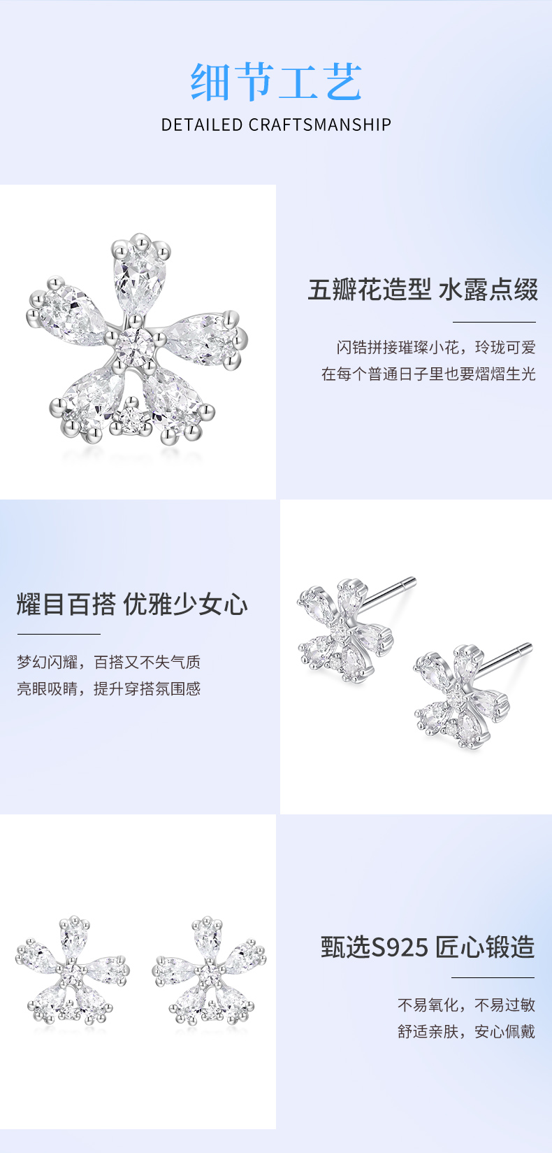 卡蒂罗/KADER 纯白茉莉耳钉 春夏穿搭一路生花经典五瓣花满镶闪钻优雅气质仙气款纯银耳饰 璀璨闪耀小香风配饰