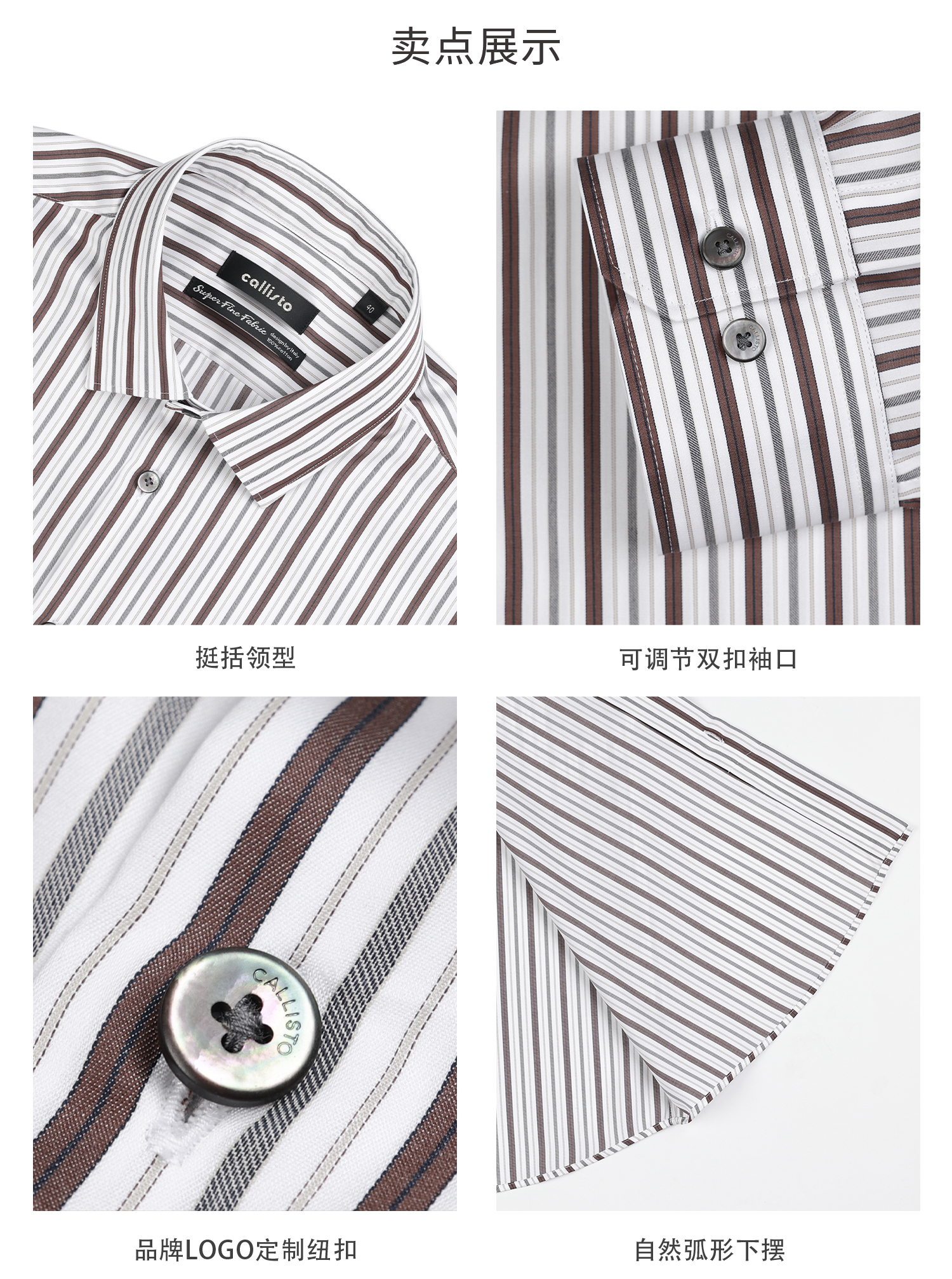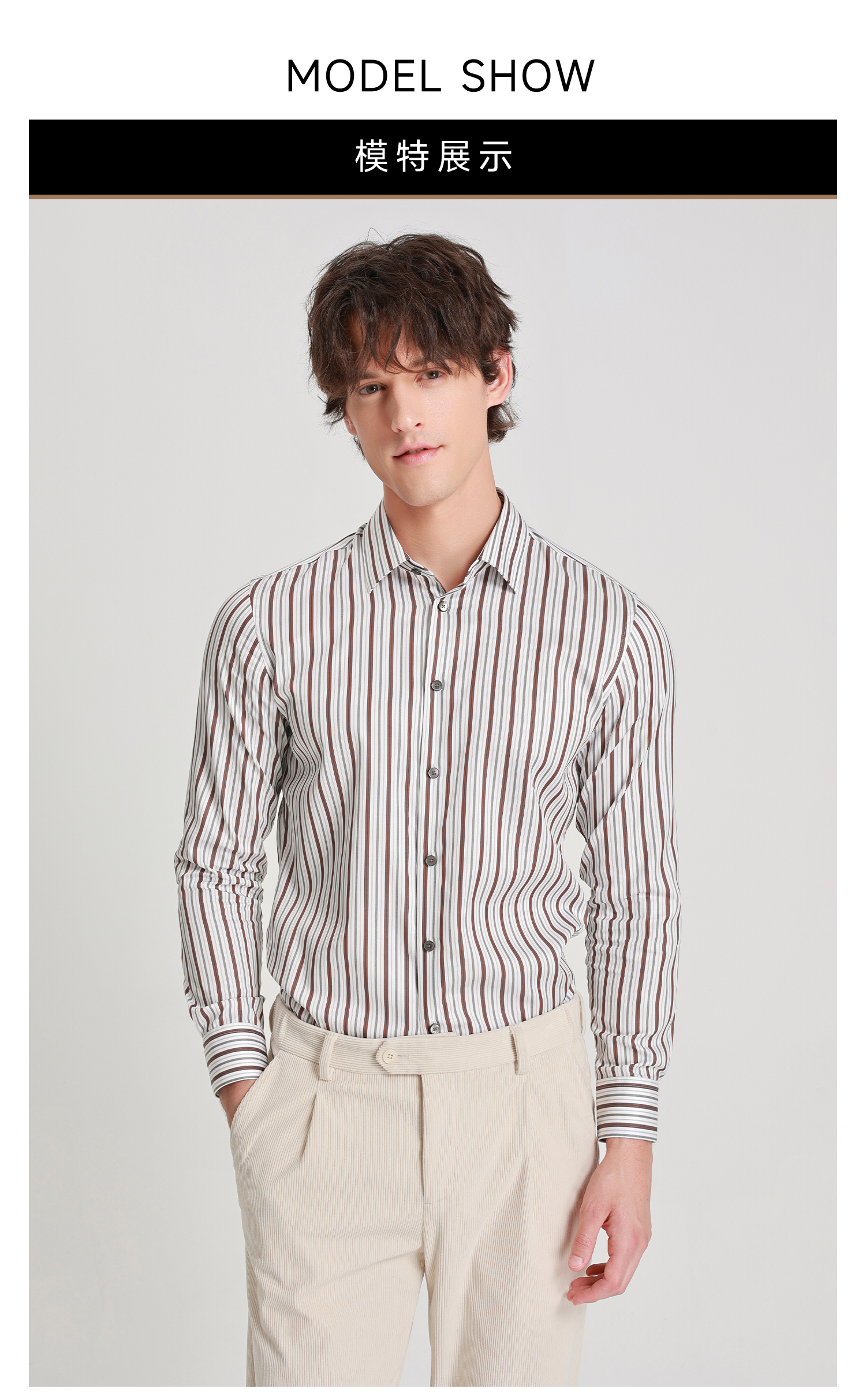 callisto燕麦卡其精梳长绒棉条纹衬衫