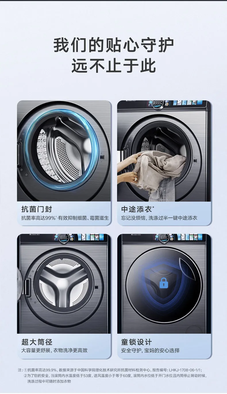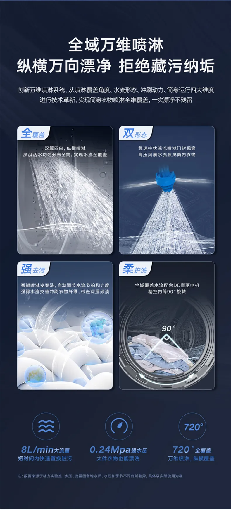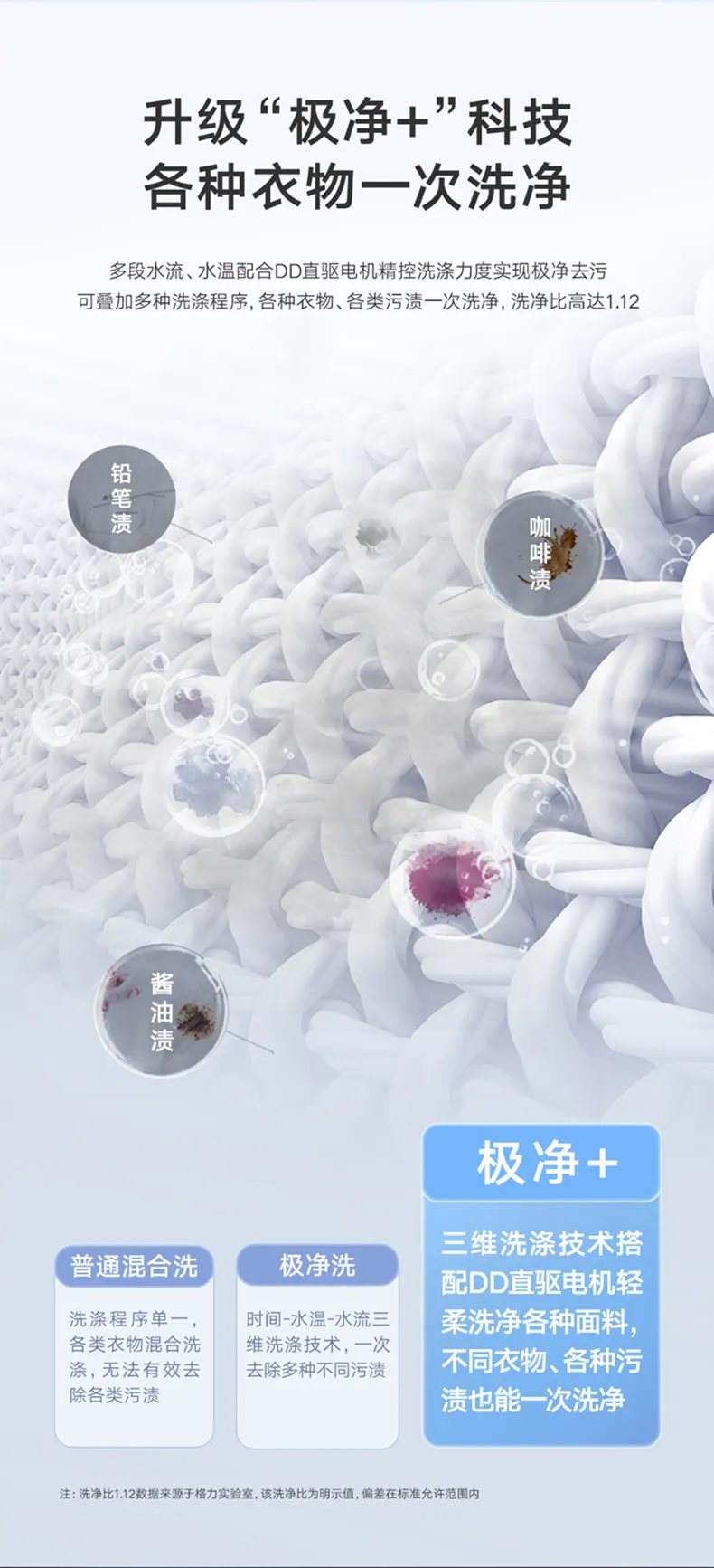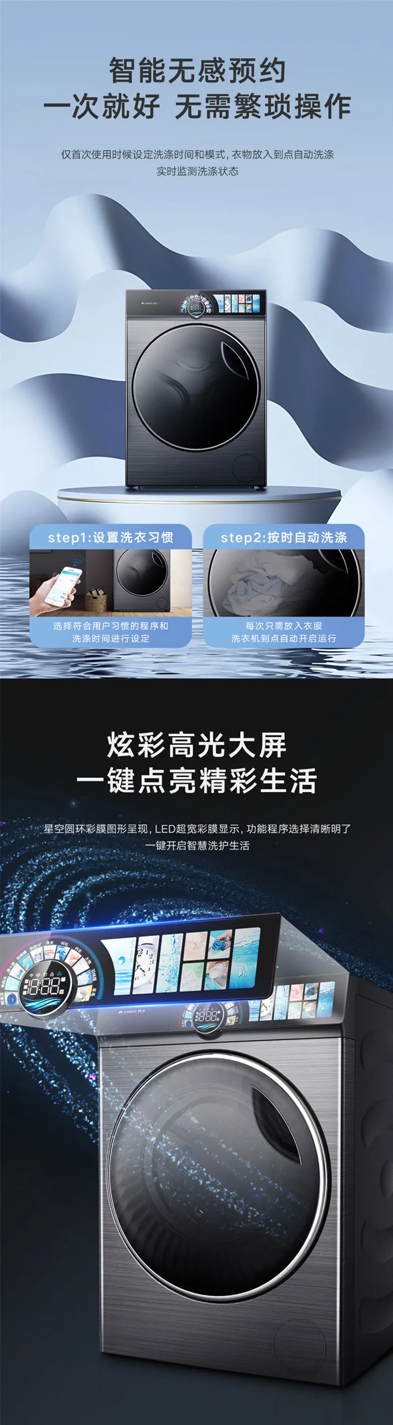 格力·臻柔 滚筒洗衣机 10kg XQG100-D1401Fa1 顶(珍珠黑)