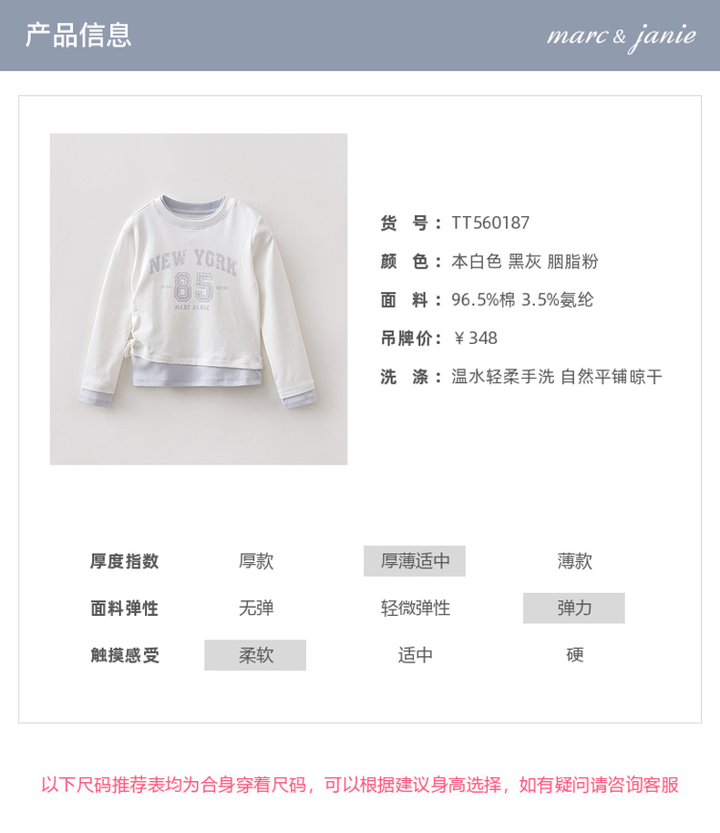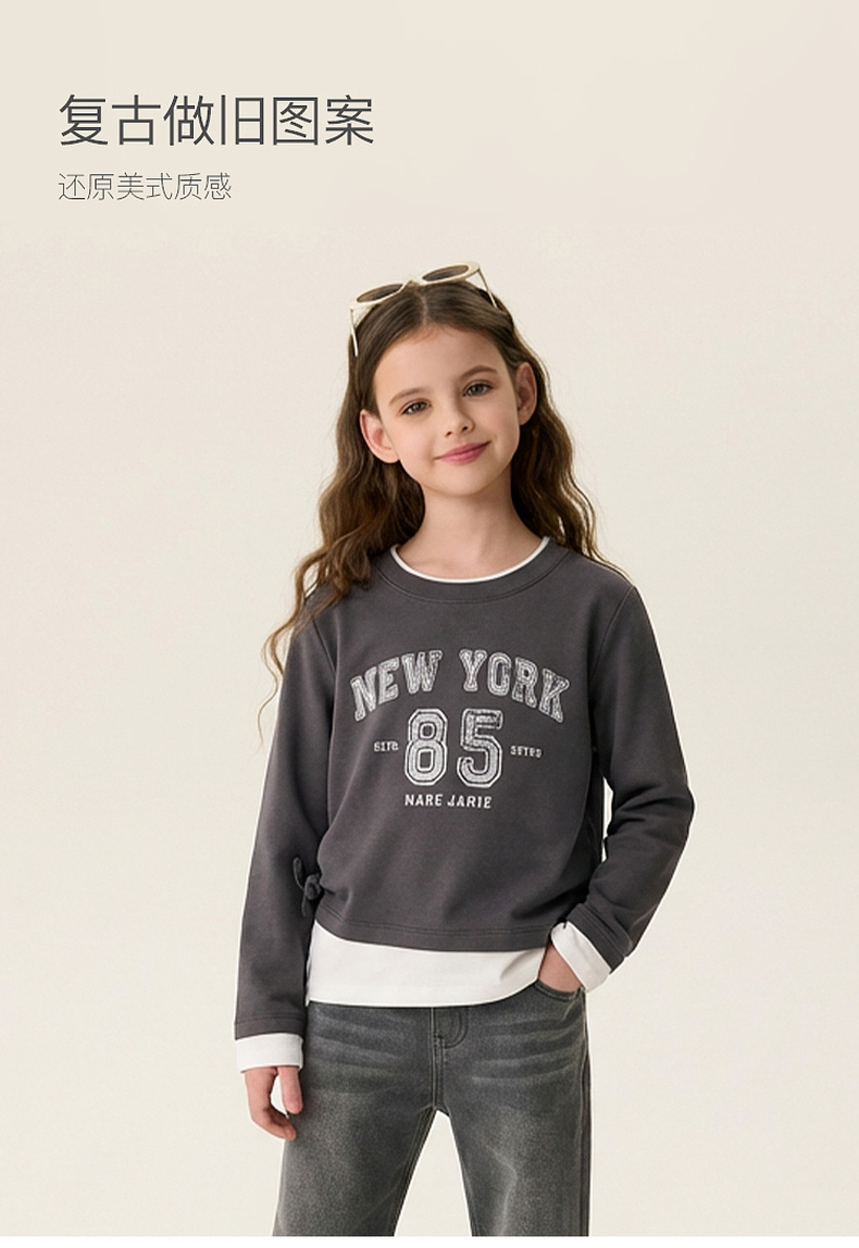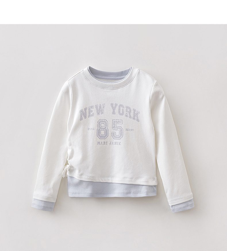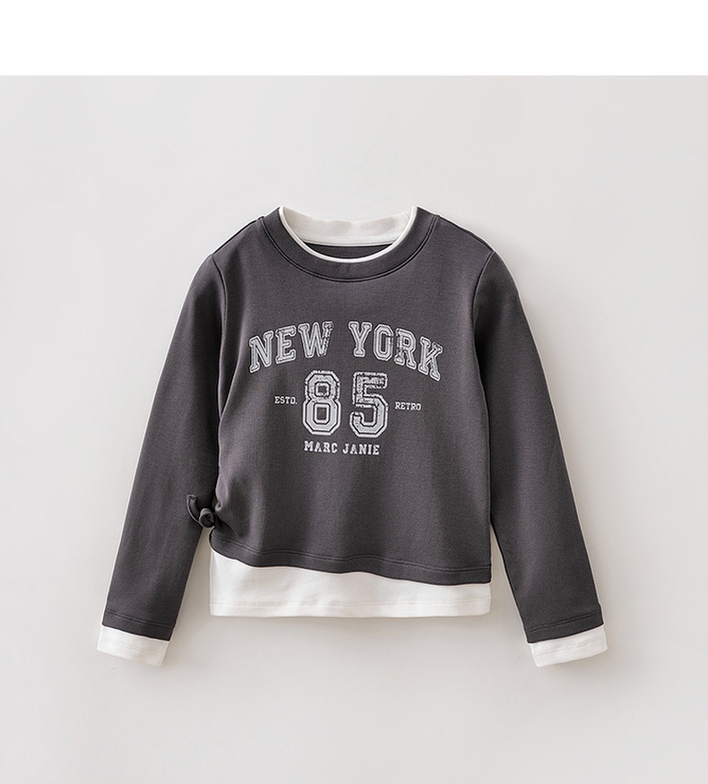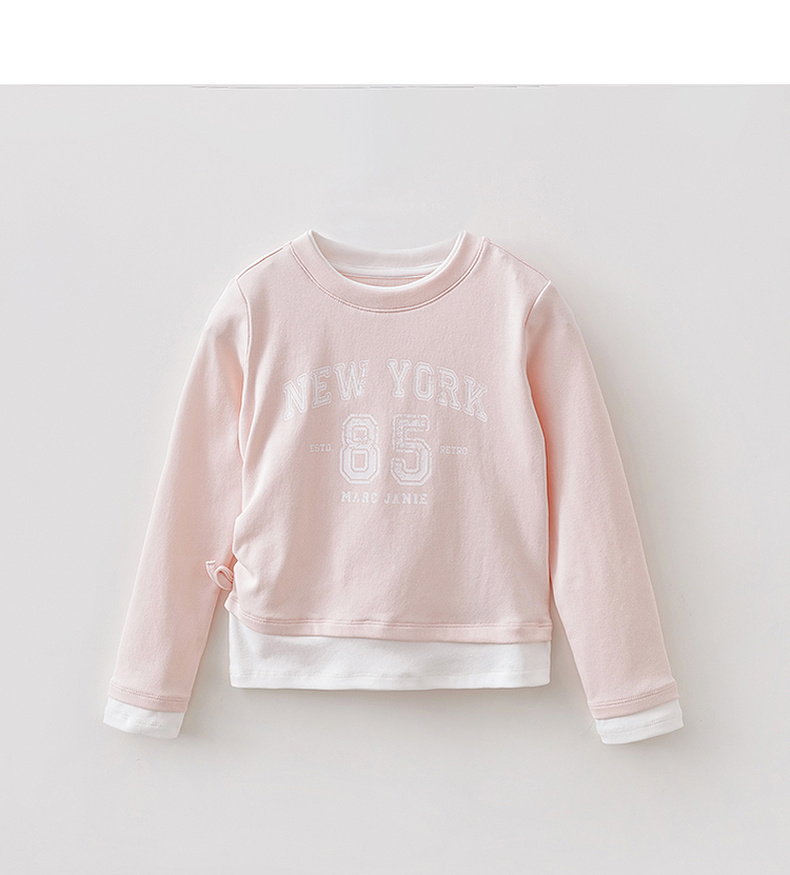马克珍妮美式休闲女童假两件抽褶T恤2026年春装新款560187