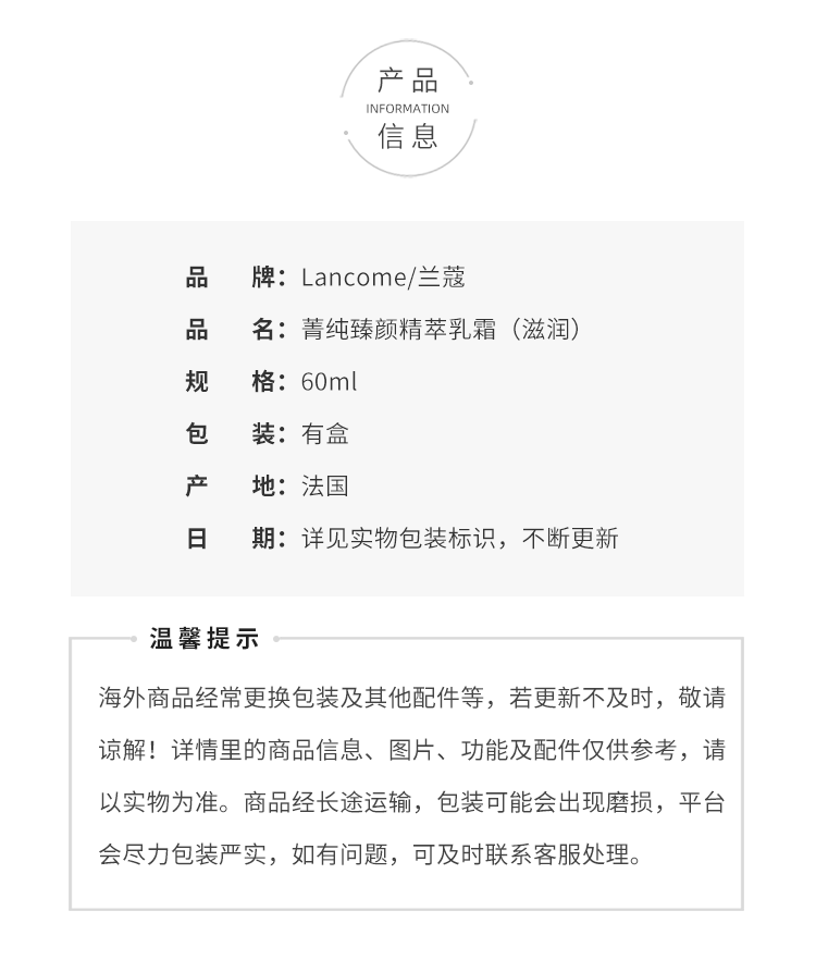 LANCÔME/兰蔻 菁纯面霜滋润型 60ml 保湿修护【CDF】