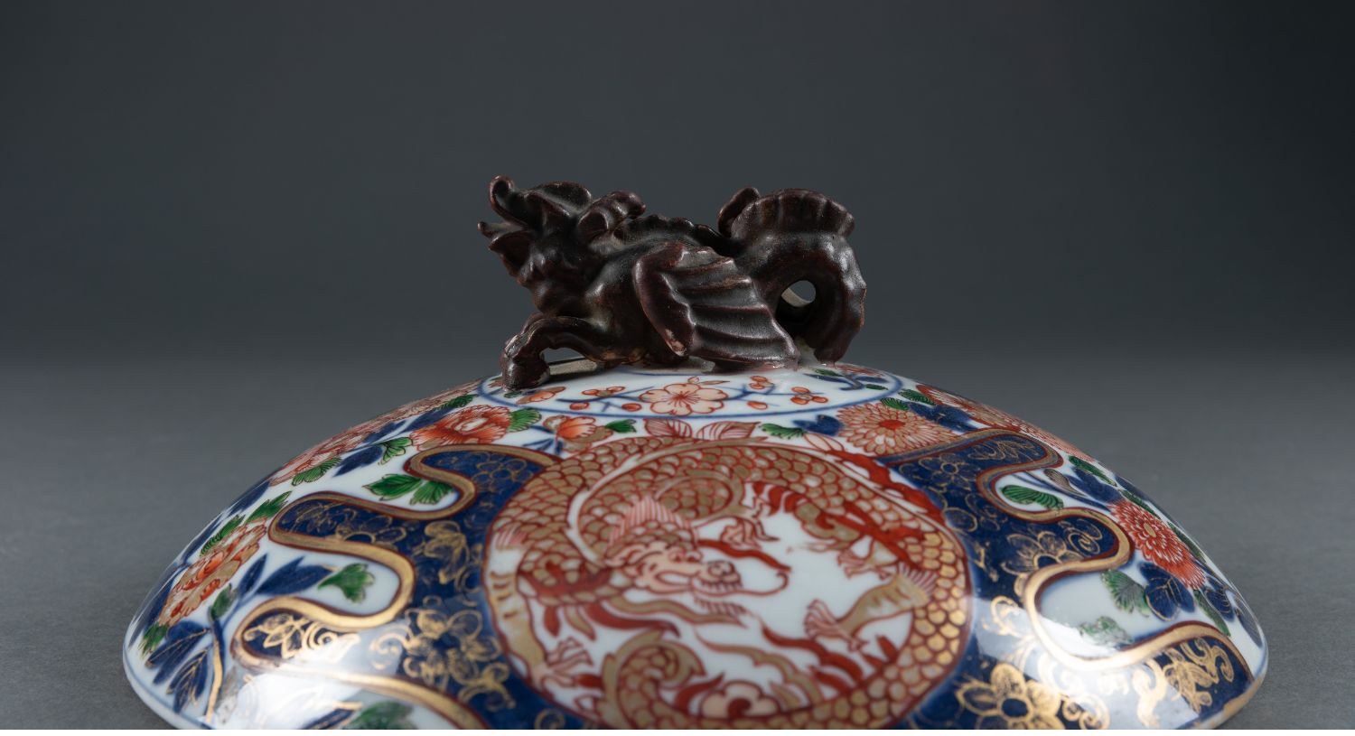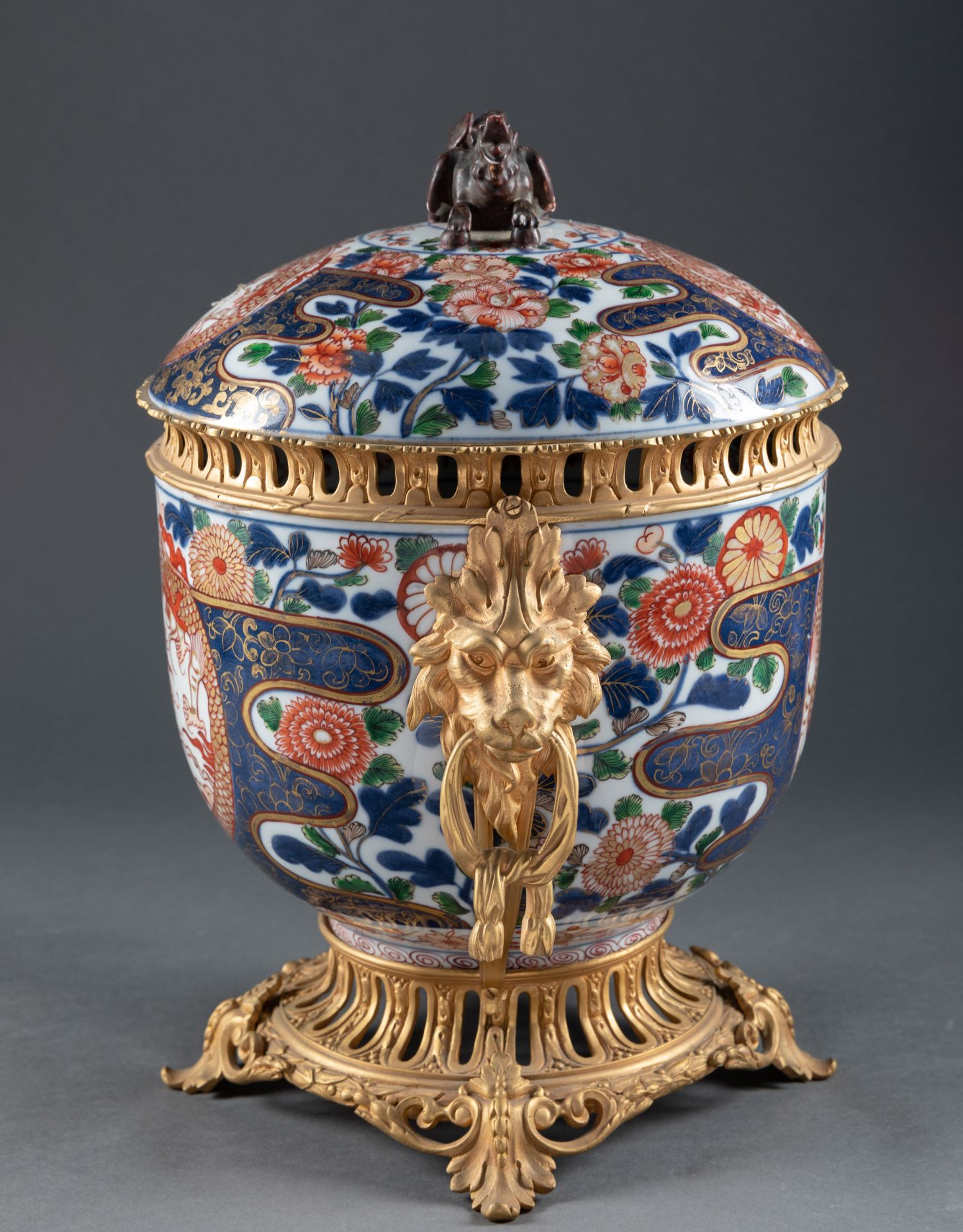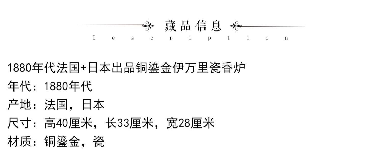 独角鹿西洋古董1880年代法国+日本出品铜鎏金伊万里瓷香薰炉摆件