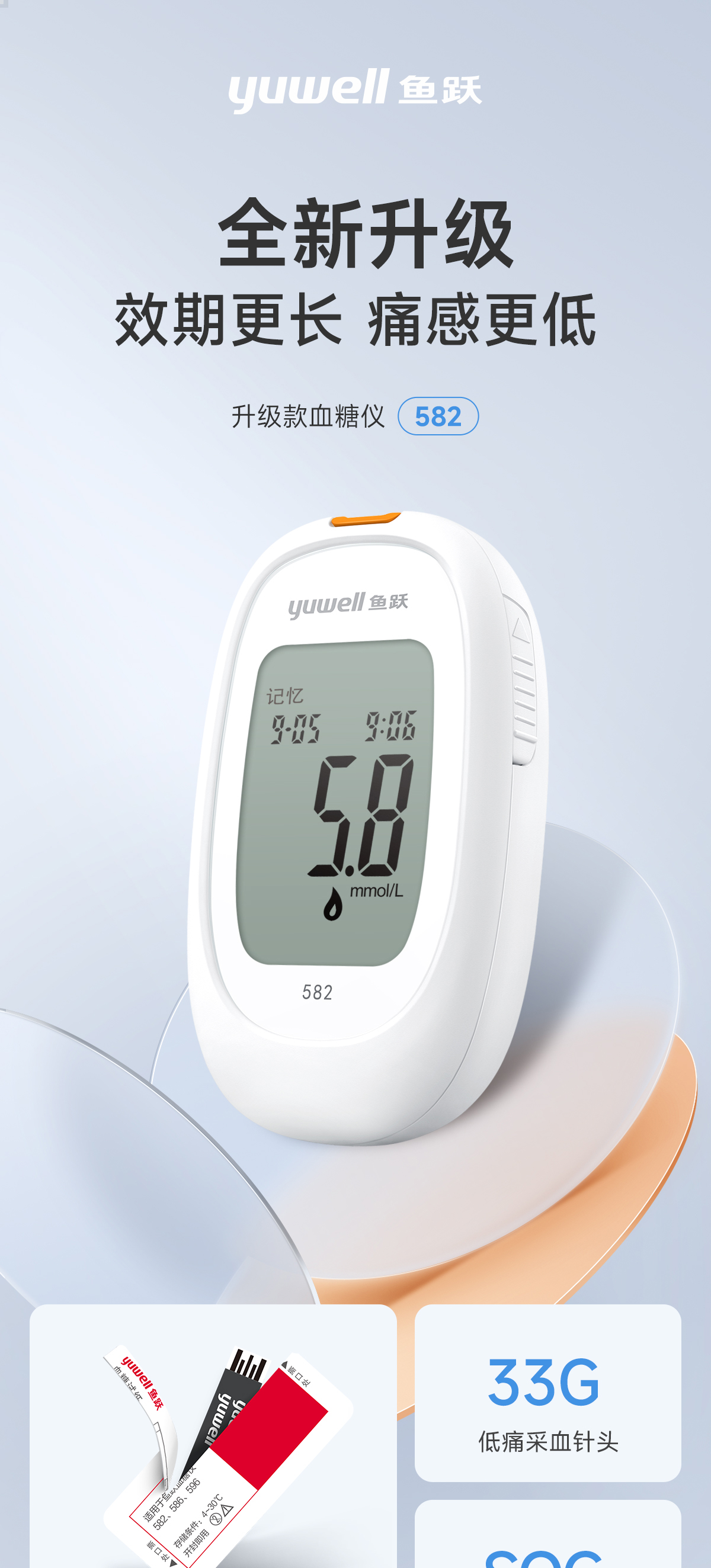 鱼跃血糖试纸582/ 586/596型机器适用 多规格(独立包装低痛采血针)