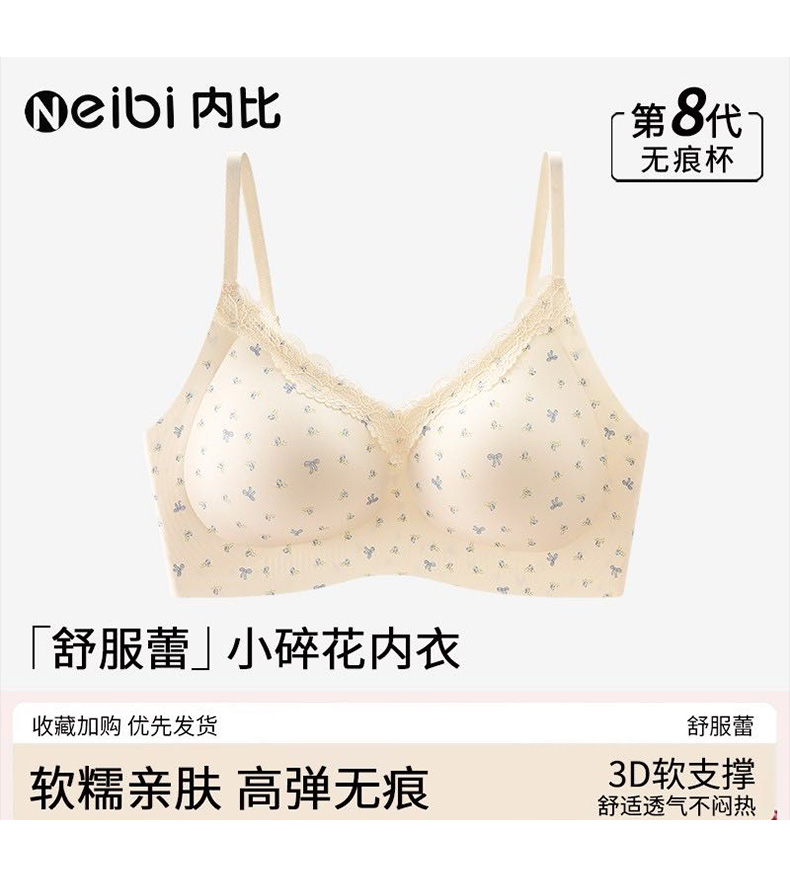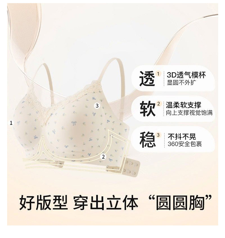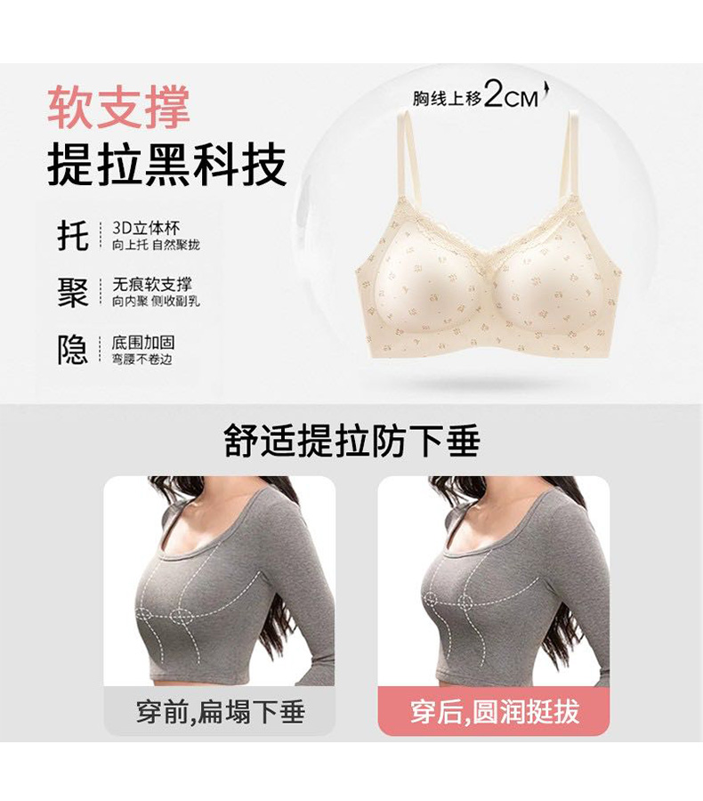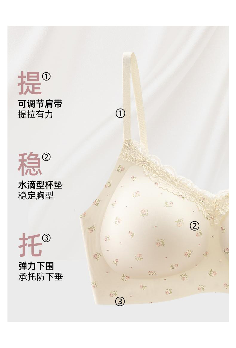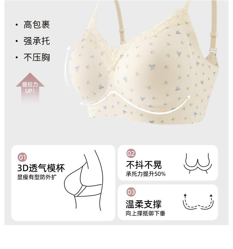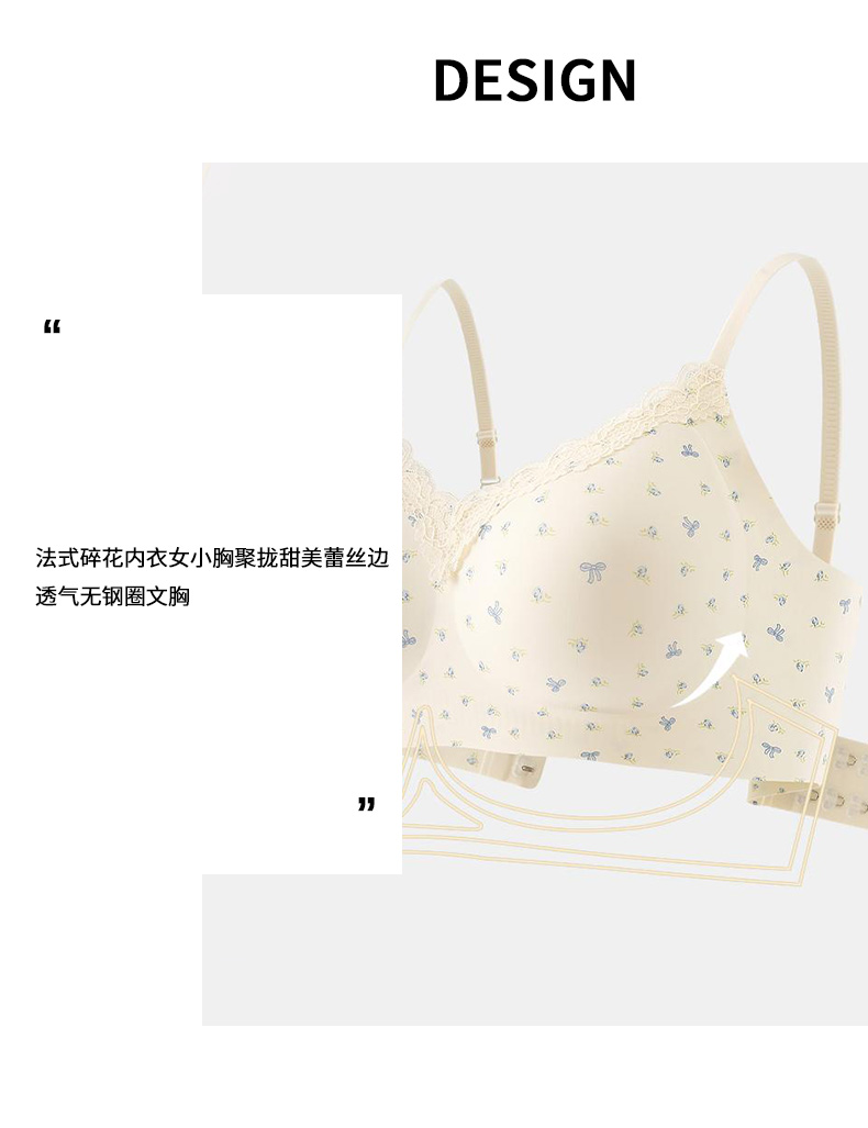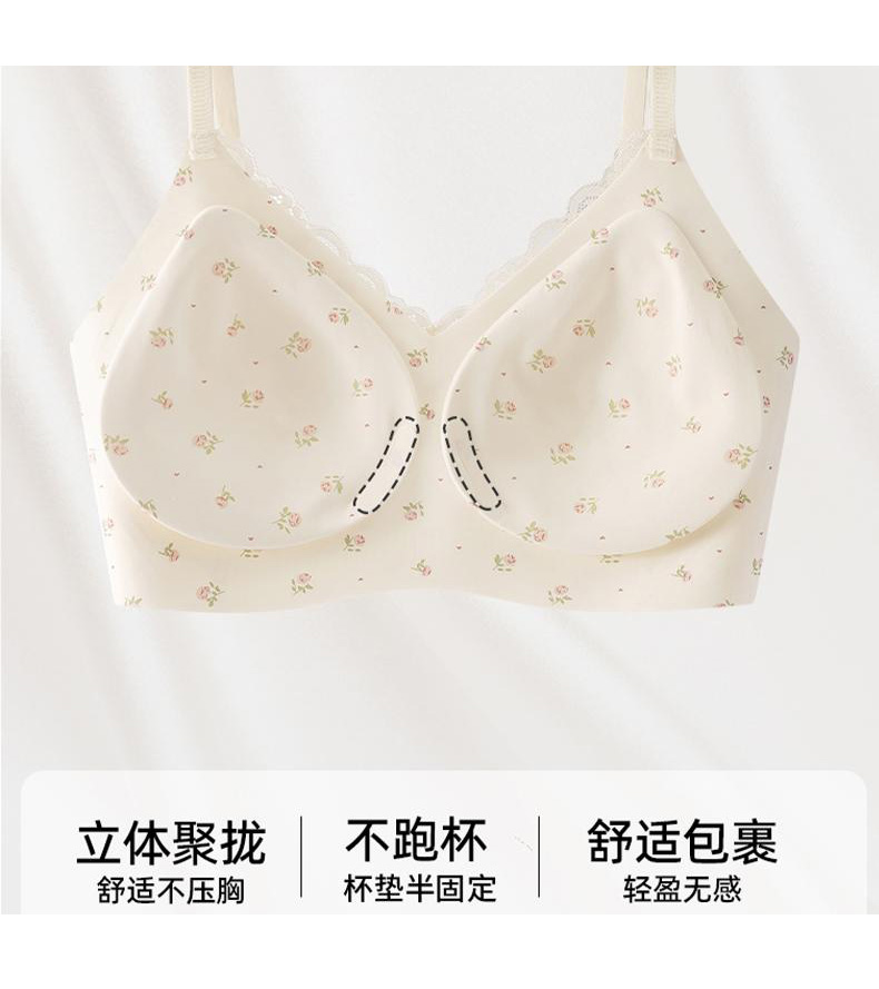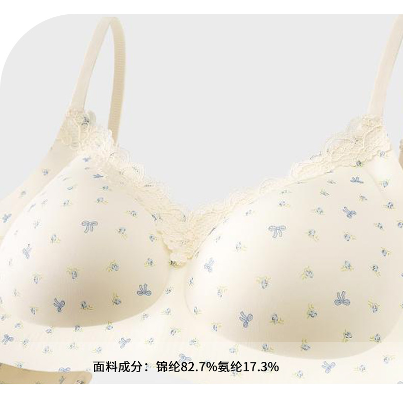 【59.9元2件文胸吊带】法式甜美蕾丝边小印花裹胸聚拢文胸-纪念日百货门店同款169649921