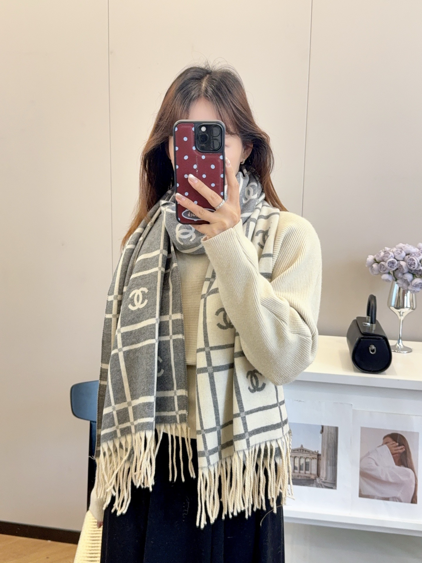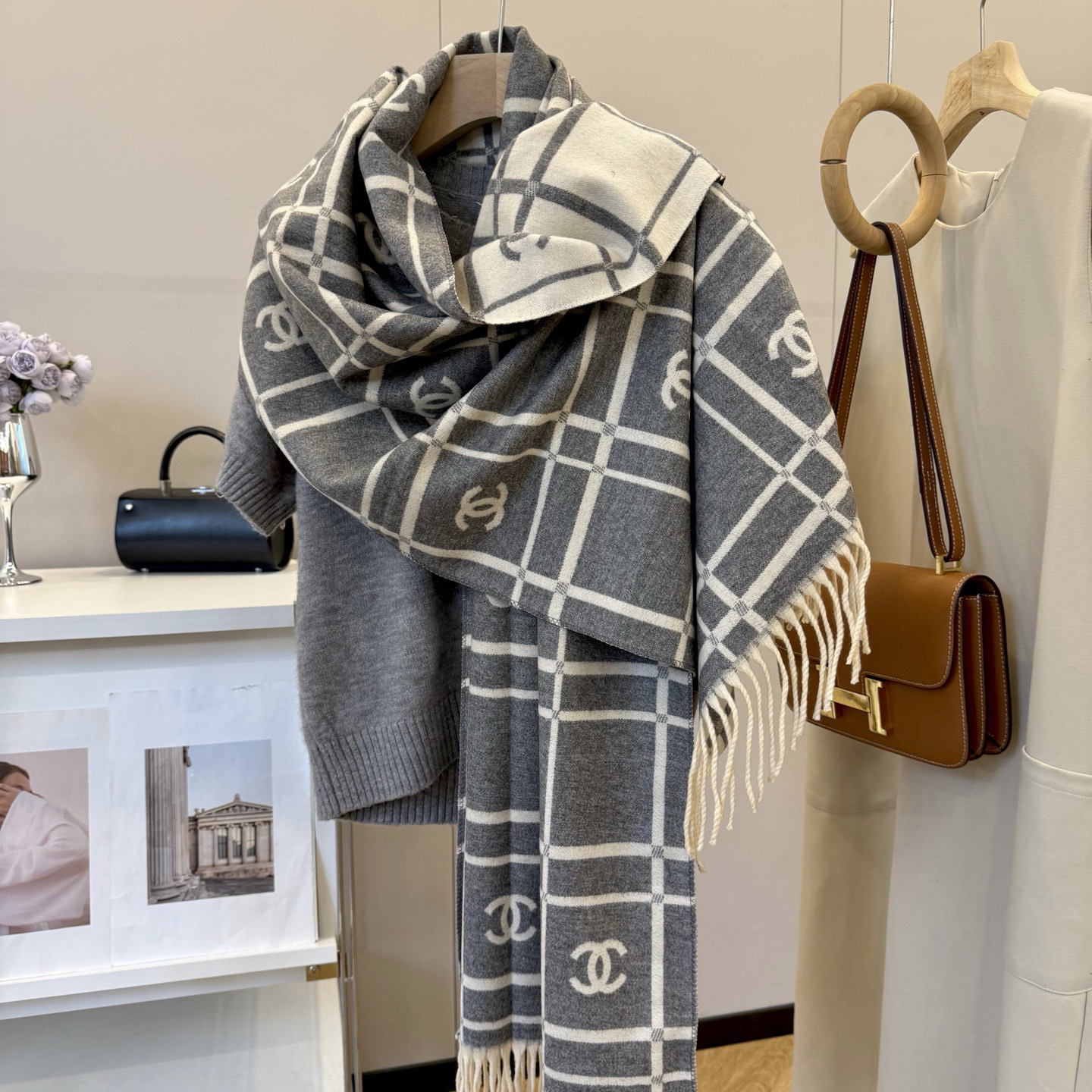 秋冬特惠💰150 香奈儿围巾 秋冬男女同款 这样的围巾,绝对是一条审美不过时的单品!随便围都会好看,版型真是一绝!!太实用百搭了,其实没有多余的设计,怎么围都好看!有垂坠感,温暖且非常显瘦!搭配正装或者搭配休闲装都很合适~对折挂围或者绕圈围都完全可以,有温度的风度‼️