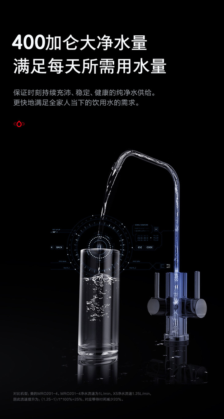 美的(Midea)(509289)净水器家用直饮400加仑智能无桶大通量E400B净水器家用自营厨下式直饮机MRC2088G-400G
