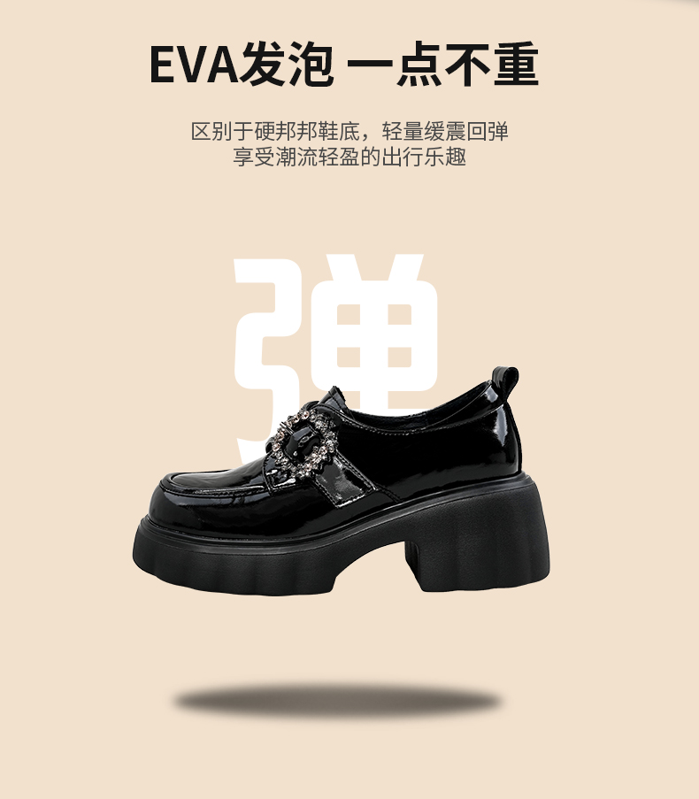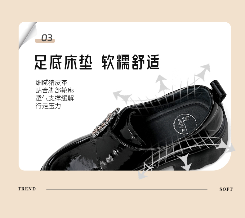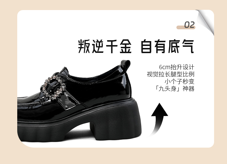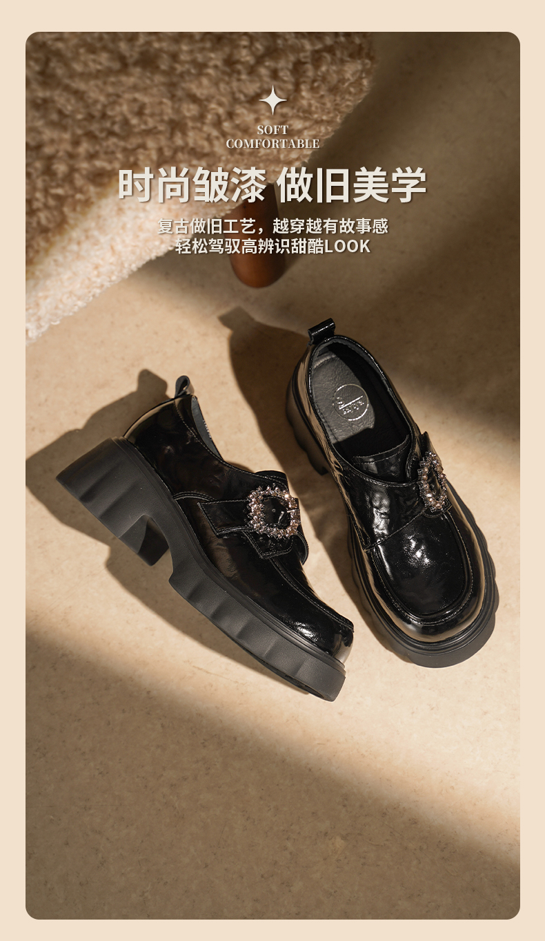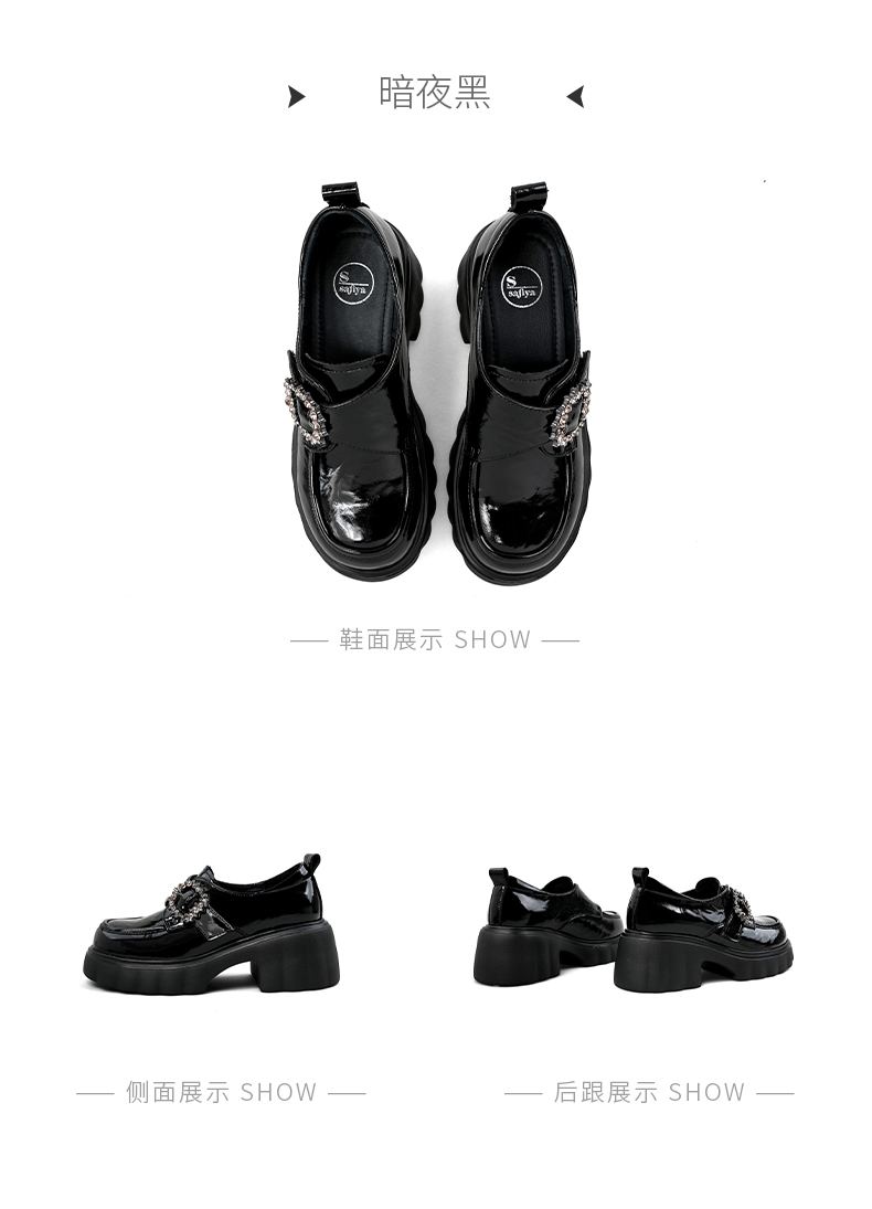 预售|Safiya/索菲娅2025英伦风钻扣魔术贴粗跟百搭厚底增高小皮鞋SFD3112135