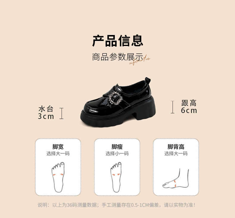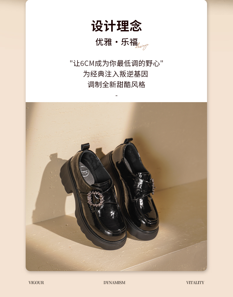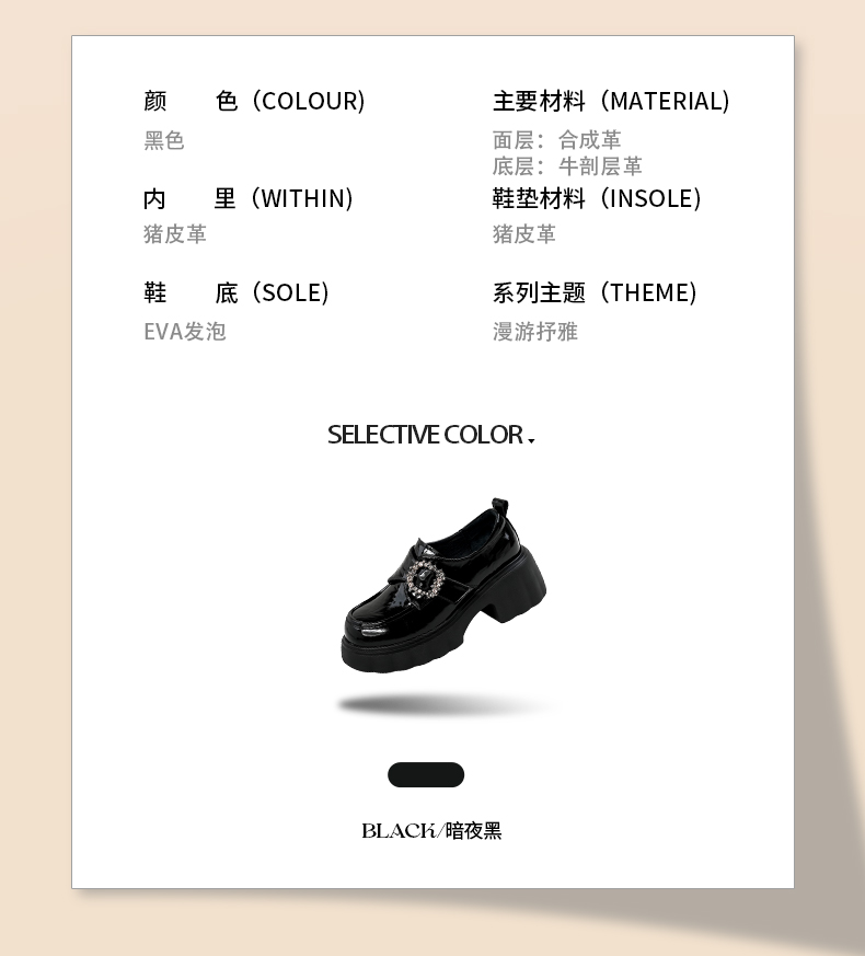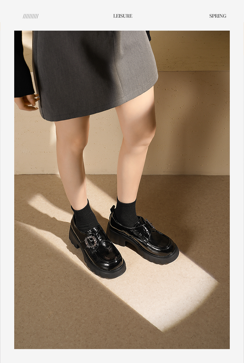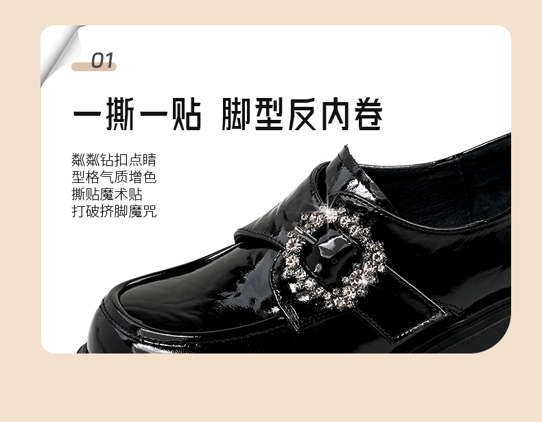 预售|Safiya/索菲娅2025英伦风钻扣魔术贴粗跟百搭厚底增高小皮鞋SFD3112135