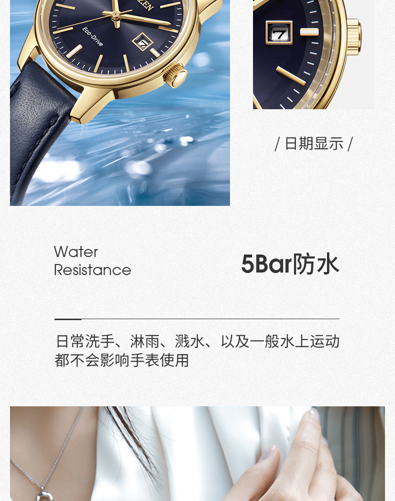西铁城日本官方正品时尚简约表盘皮带光动能情侣女士手表EW2662-19L