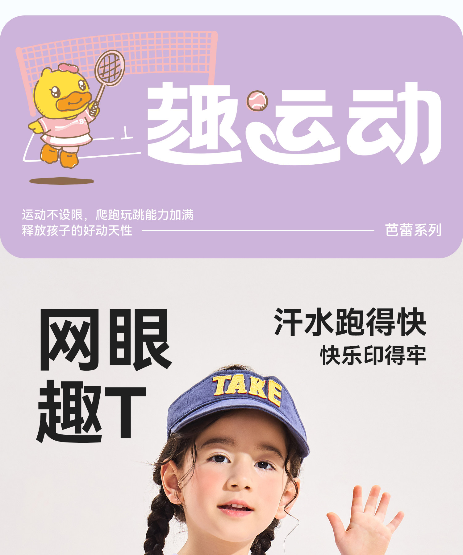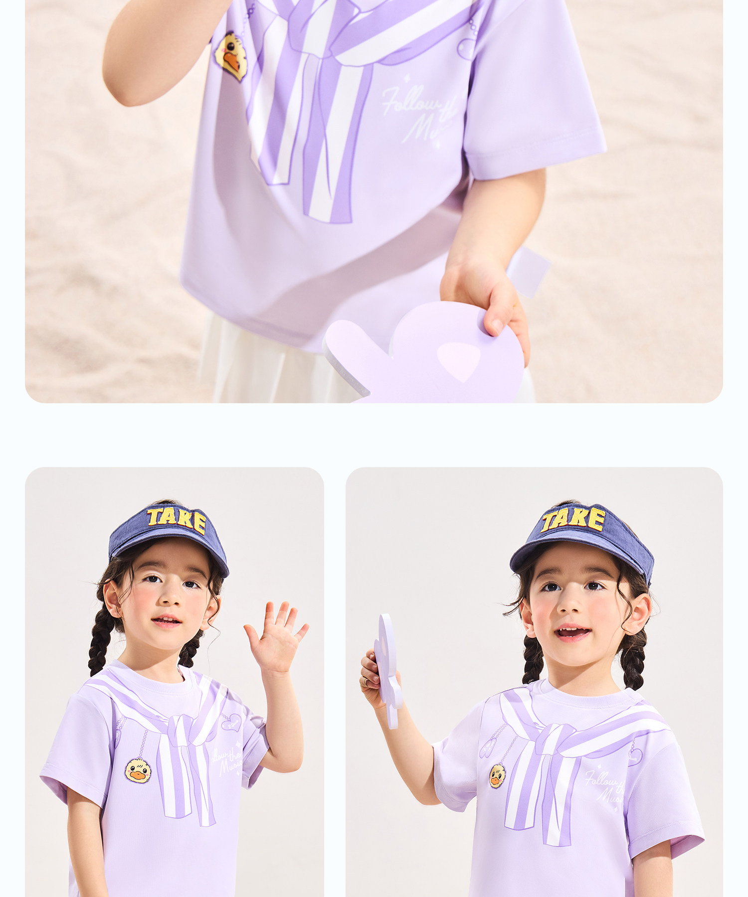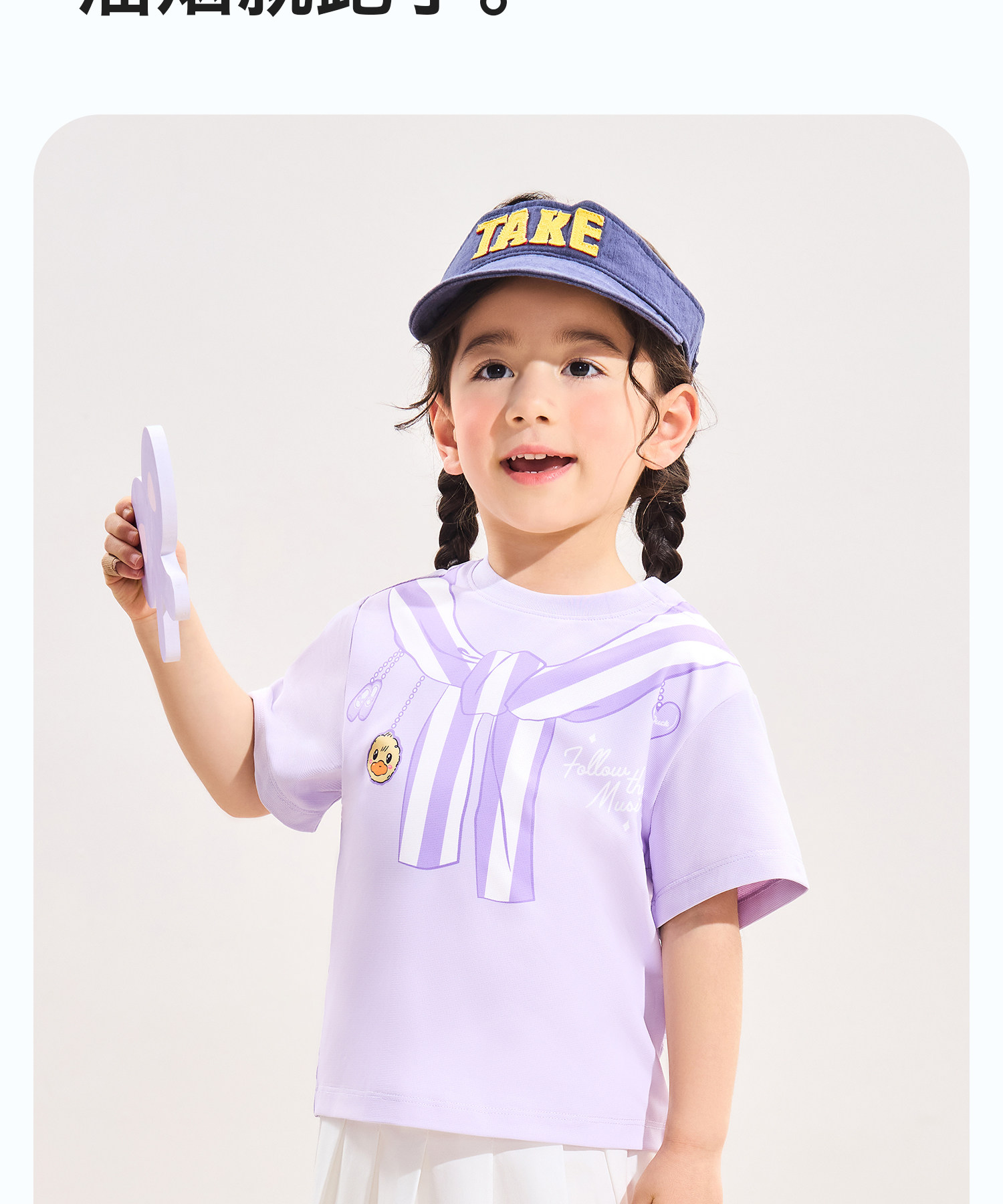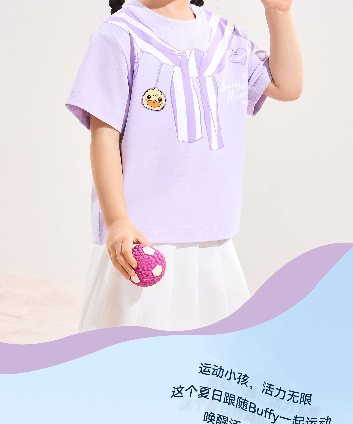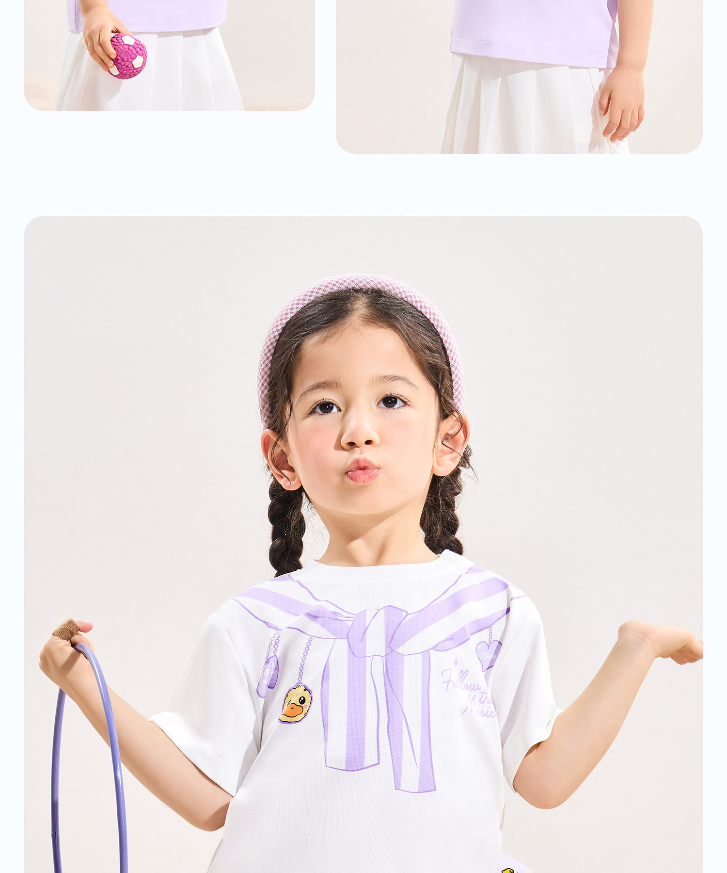 [速干]bduck小黄鸭童装女童短袖T恤夏季透气半袖儿童甜美上衣90-140 FF2701080