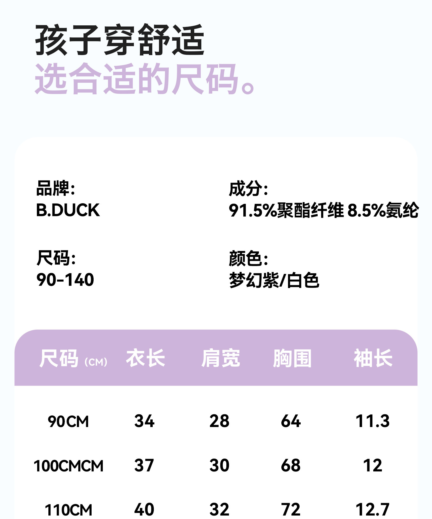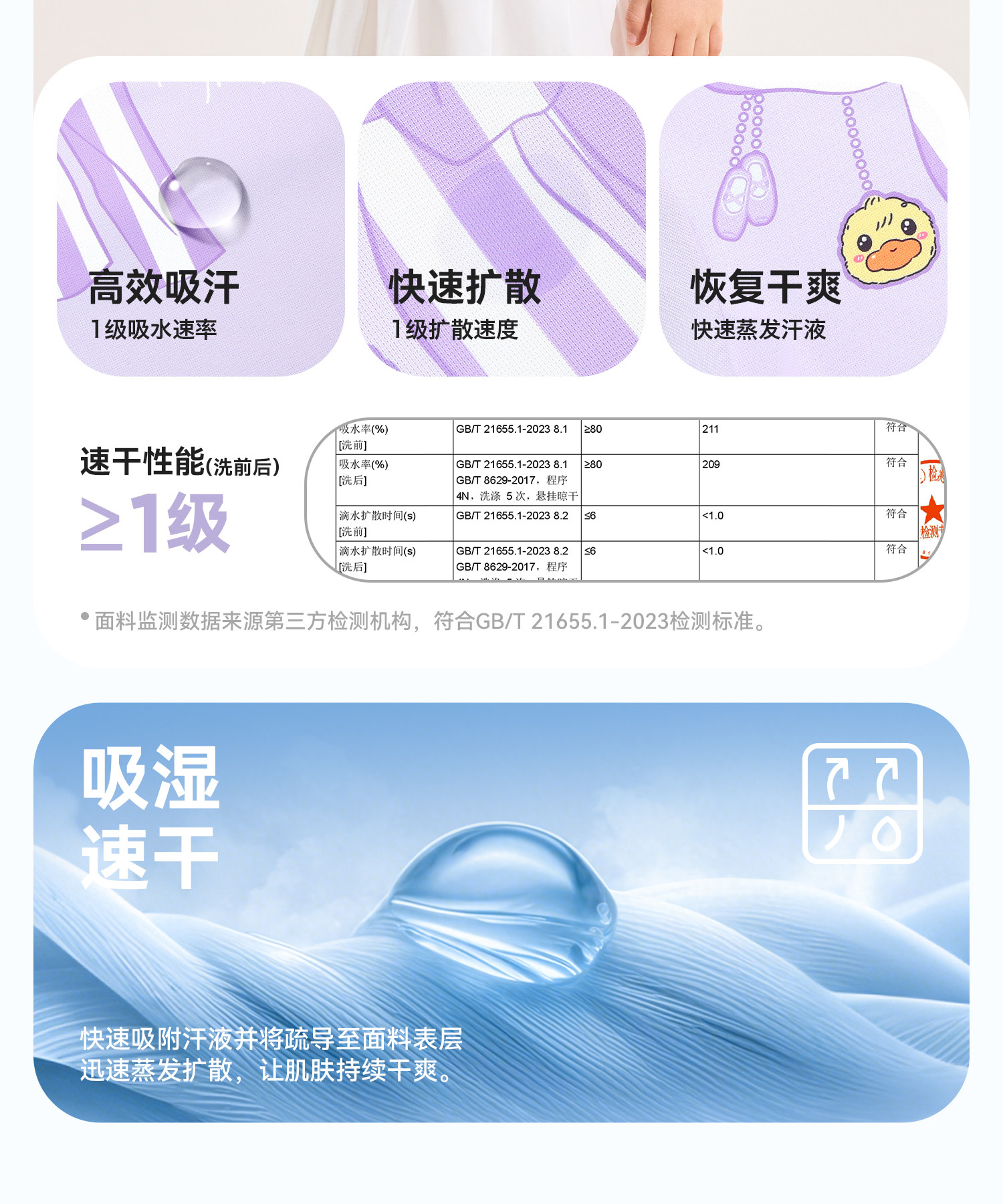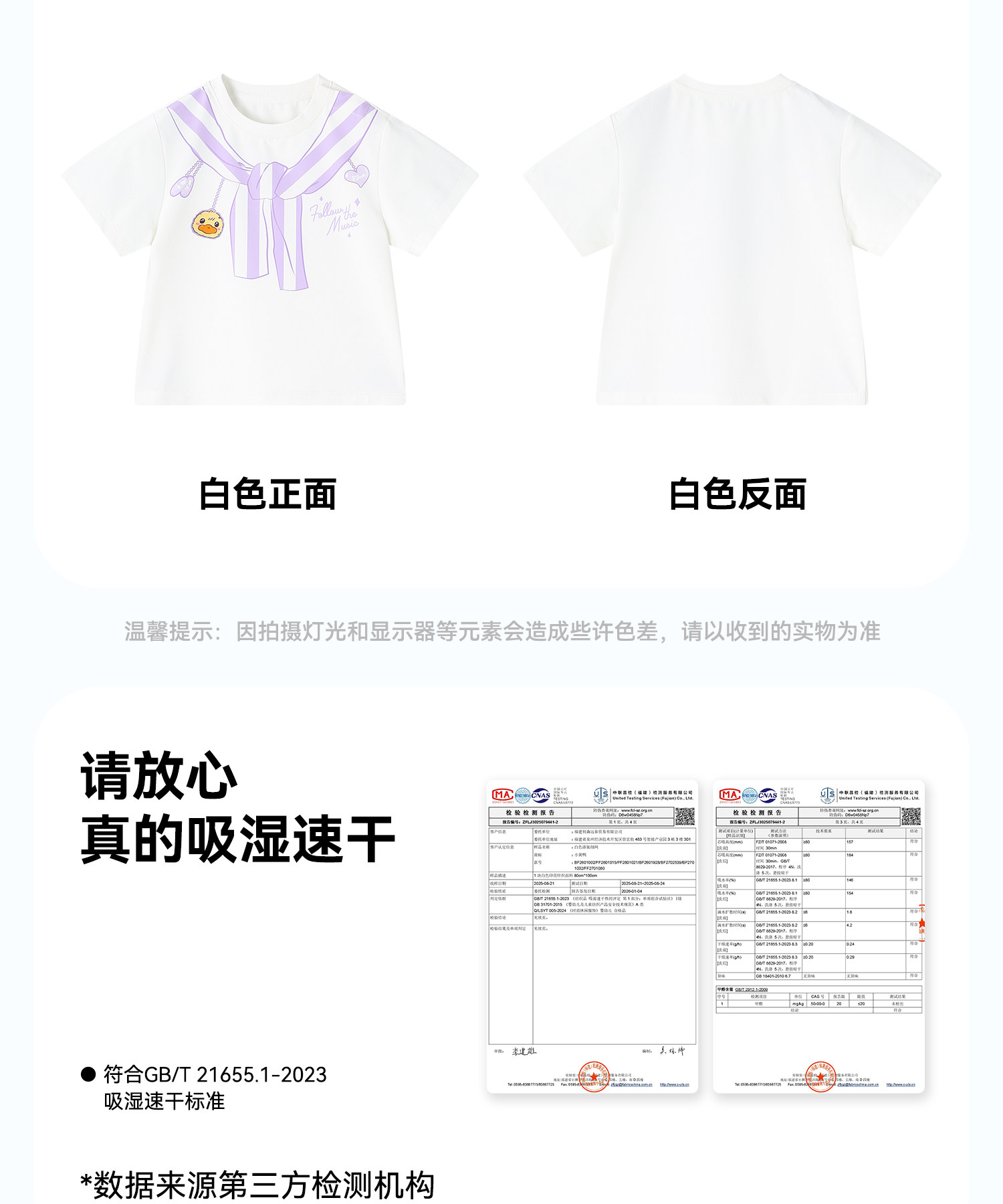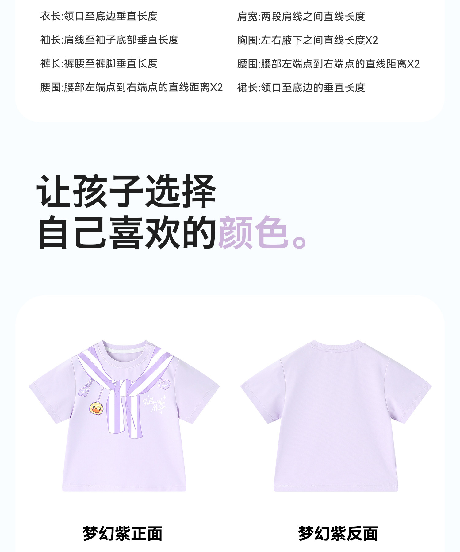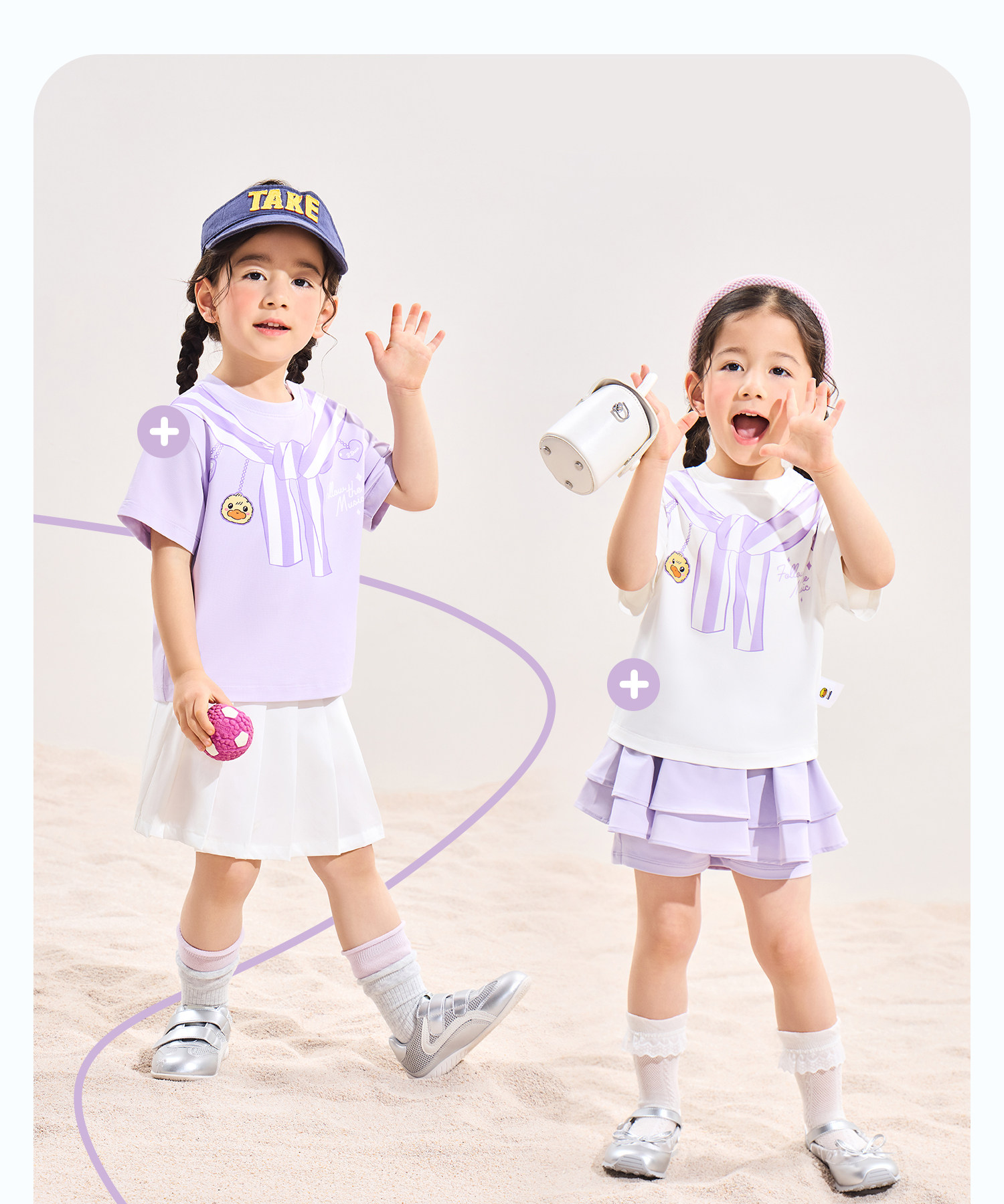 [速干]bduck小黄鸭童装女童短袖T恤夏季透气半袖儿童甜美上衣90-140 FF2701080