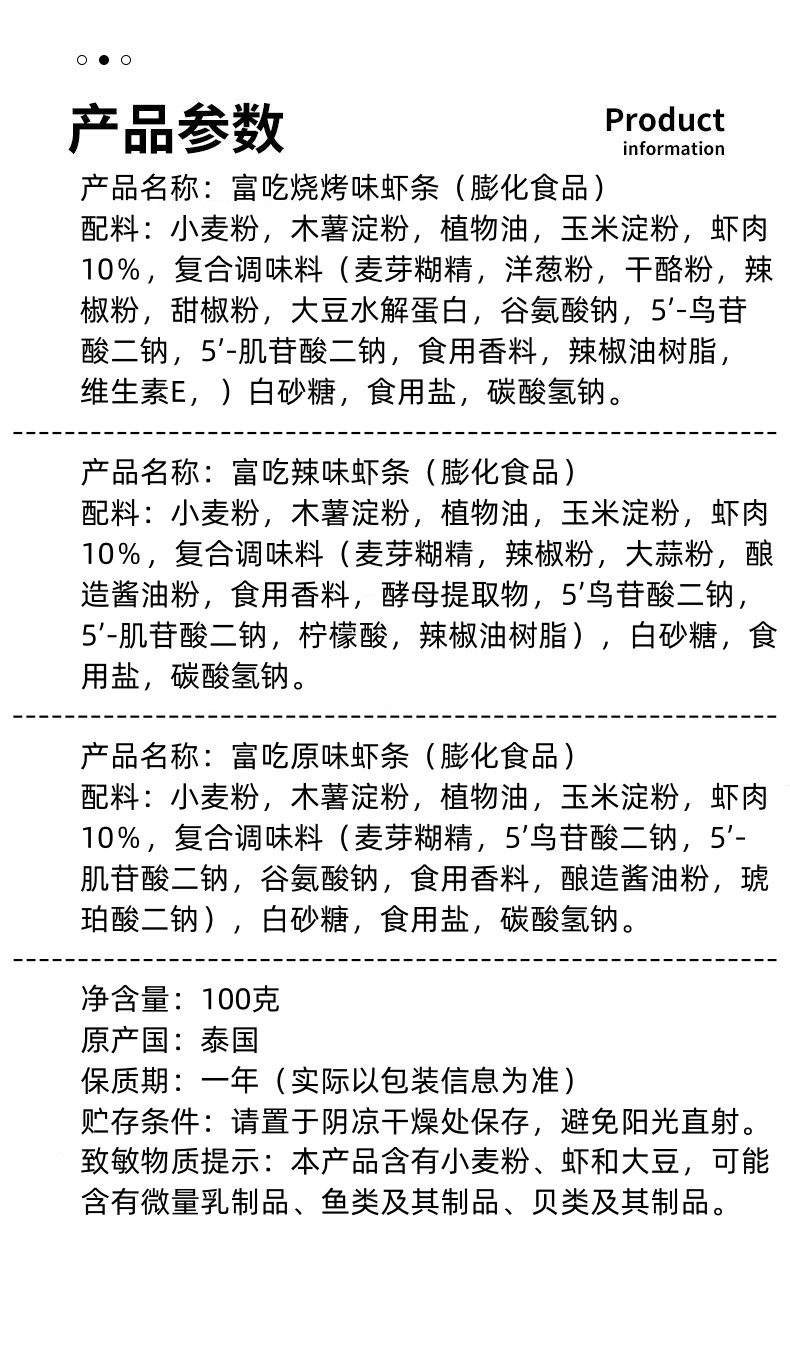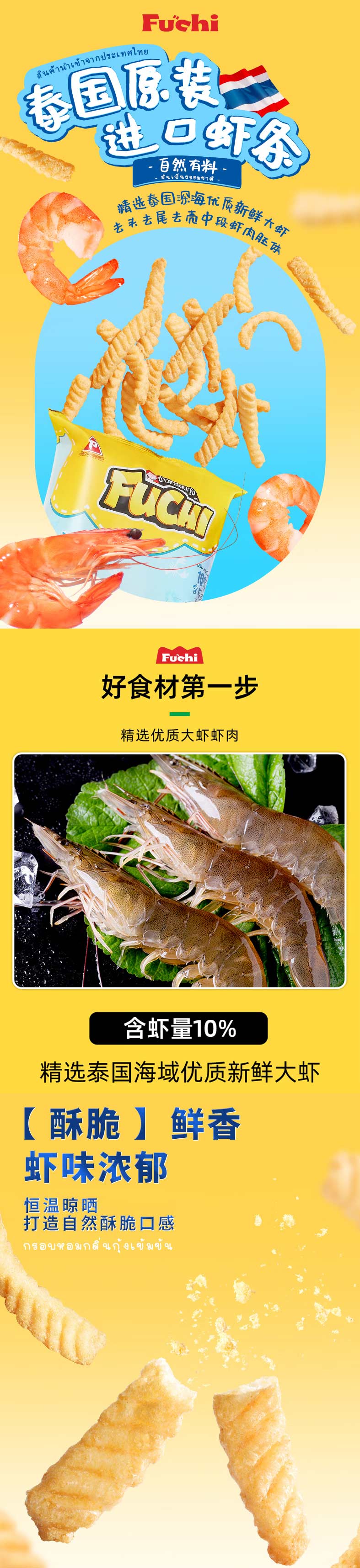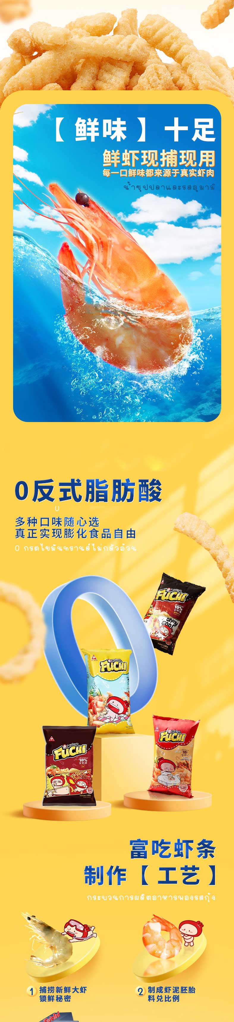 泰国进口富吃烧烤味丨辣味丨原味虾条(膨化食品)100g/袋