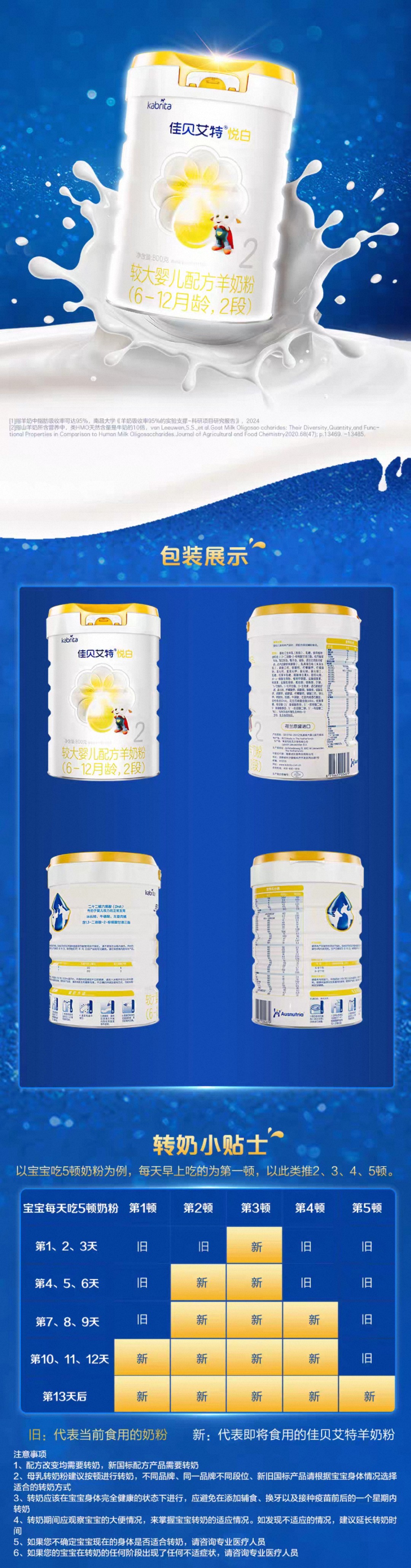 佳贝艾特悦白较大婴儿配方羊奶粉(6-12个月,2段)800g*6罐