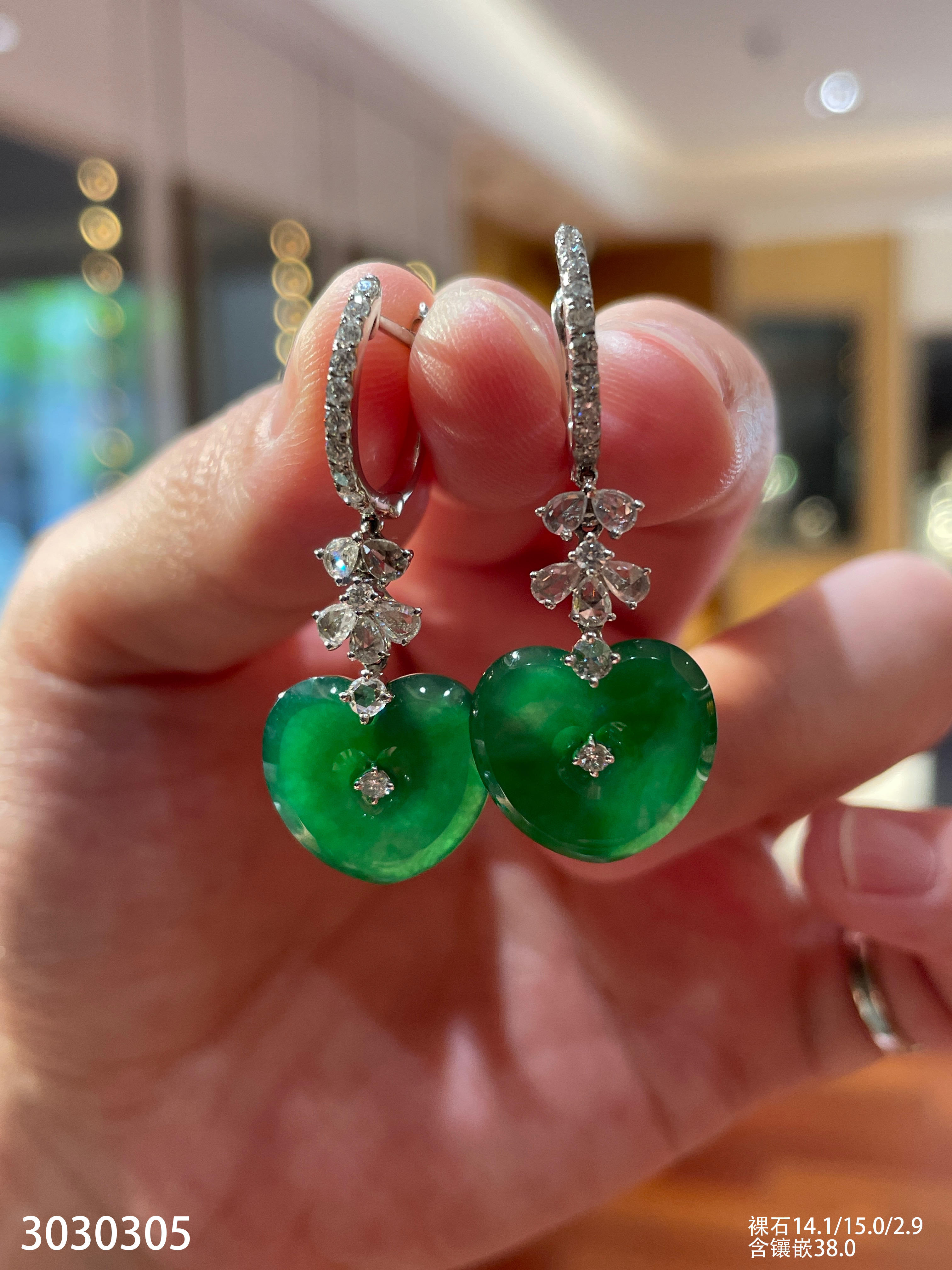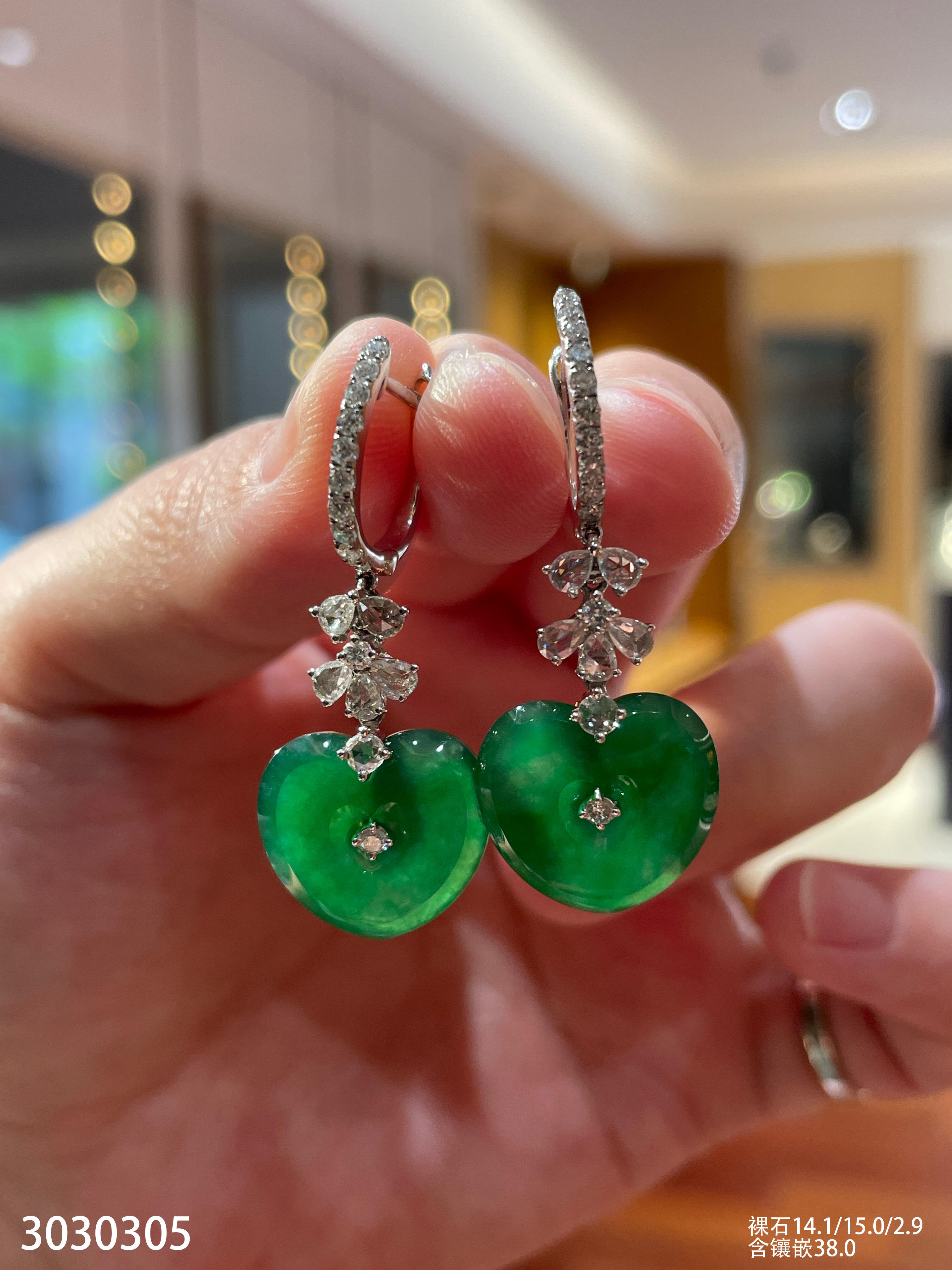 高冰种艳绿蛋面耳钉【6310503】具体价格微信咨询