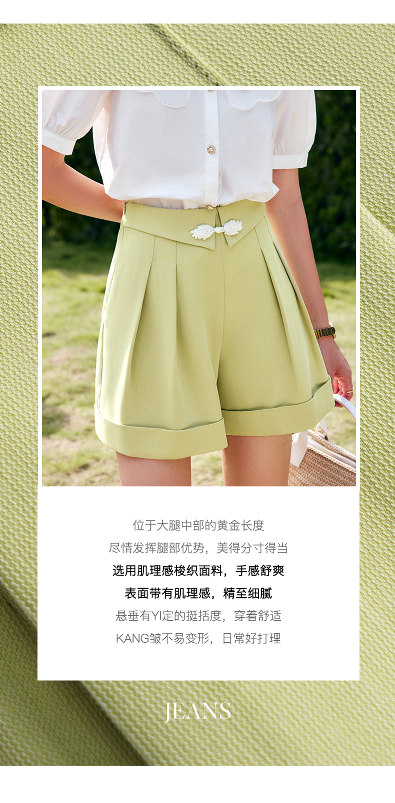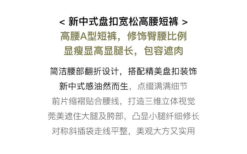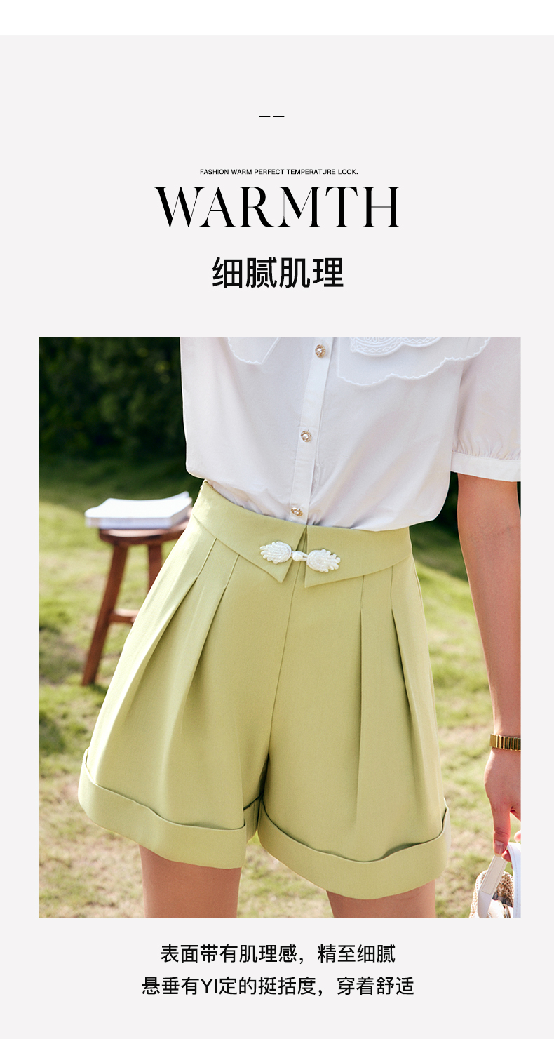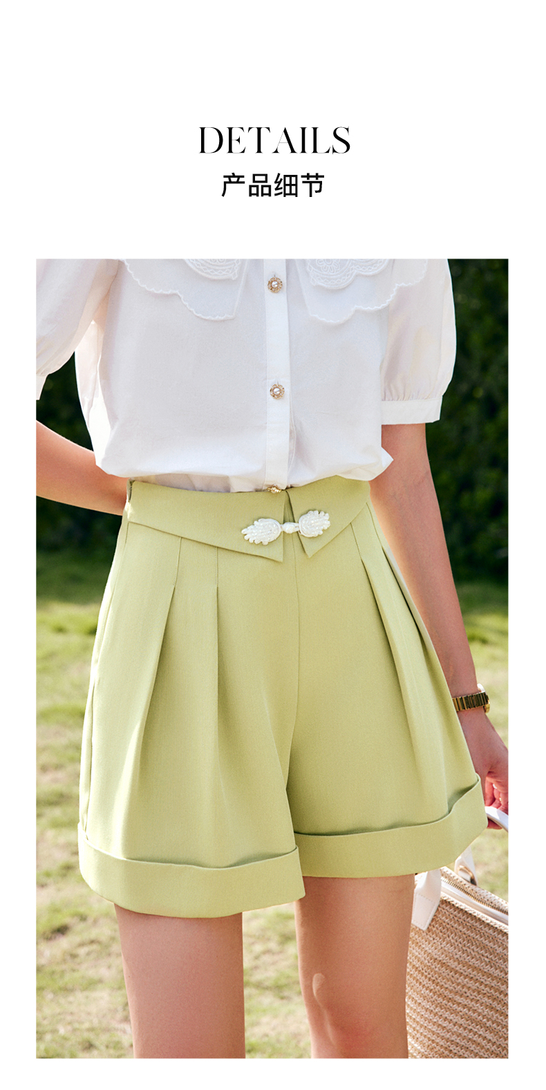 OLrain法式高级穿搭短款休闲裤女夏季2022新款高腰盘扣直筒阔腿裤