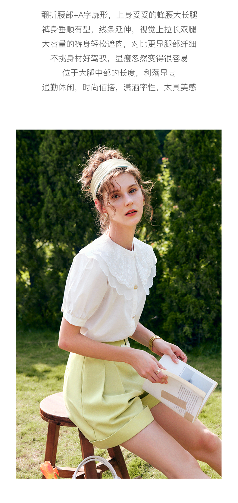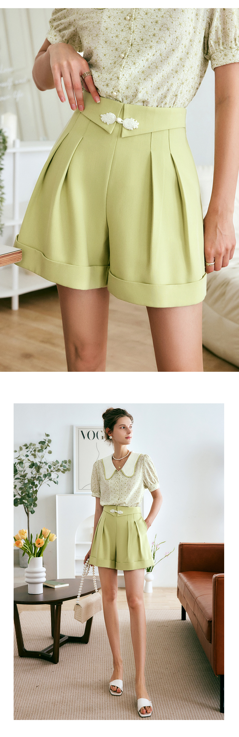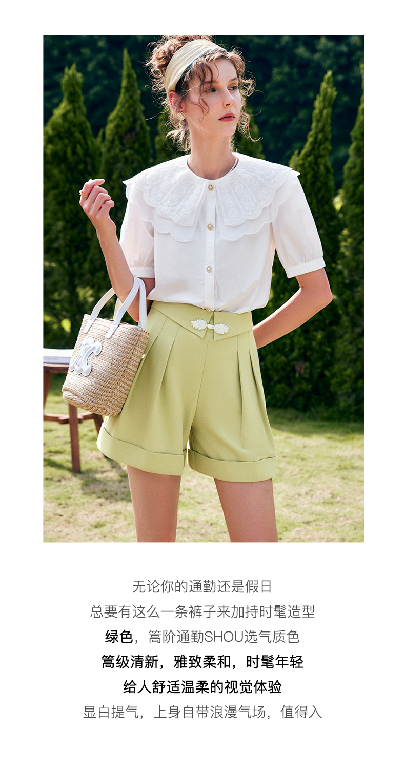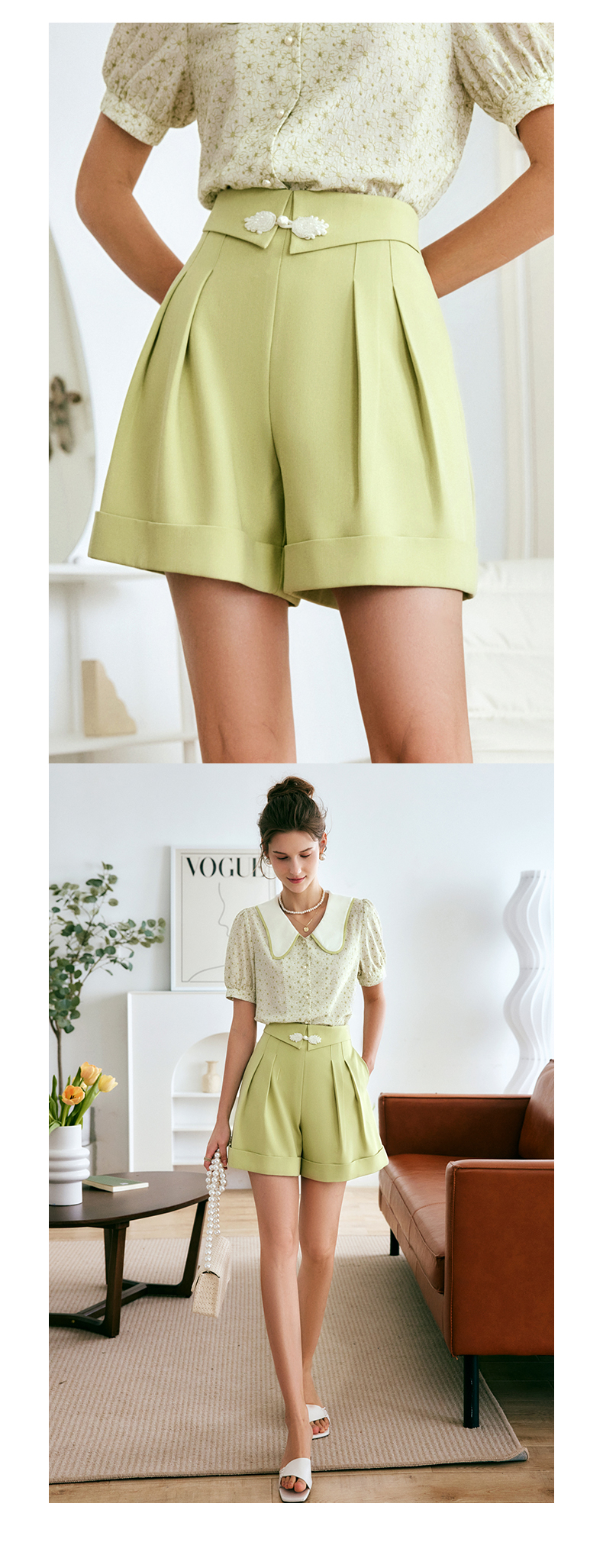 OLrain法式高级穿搭短款休闲裤女夏季2022新款高腰盘扣直筒阔腿裤