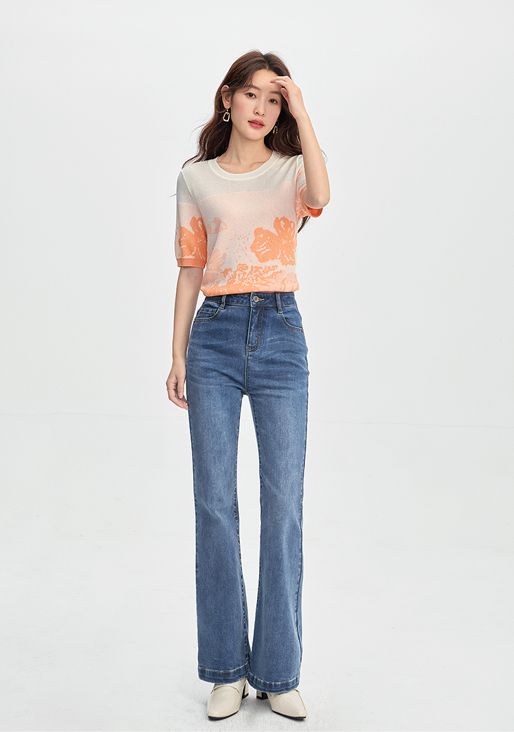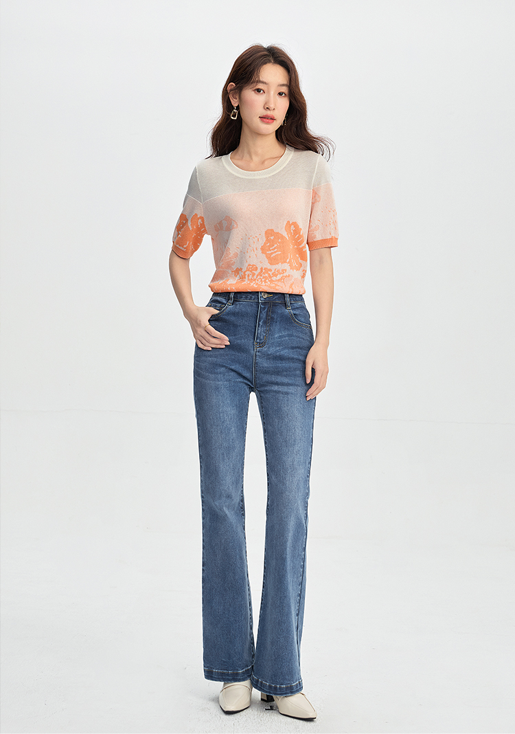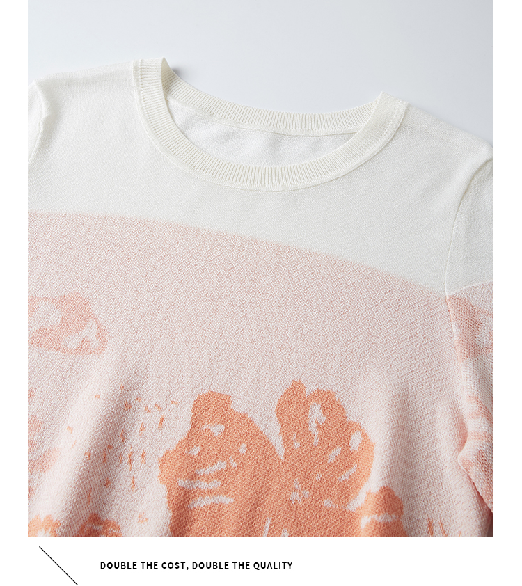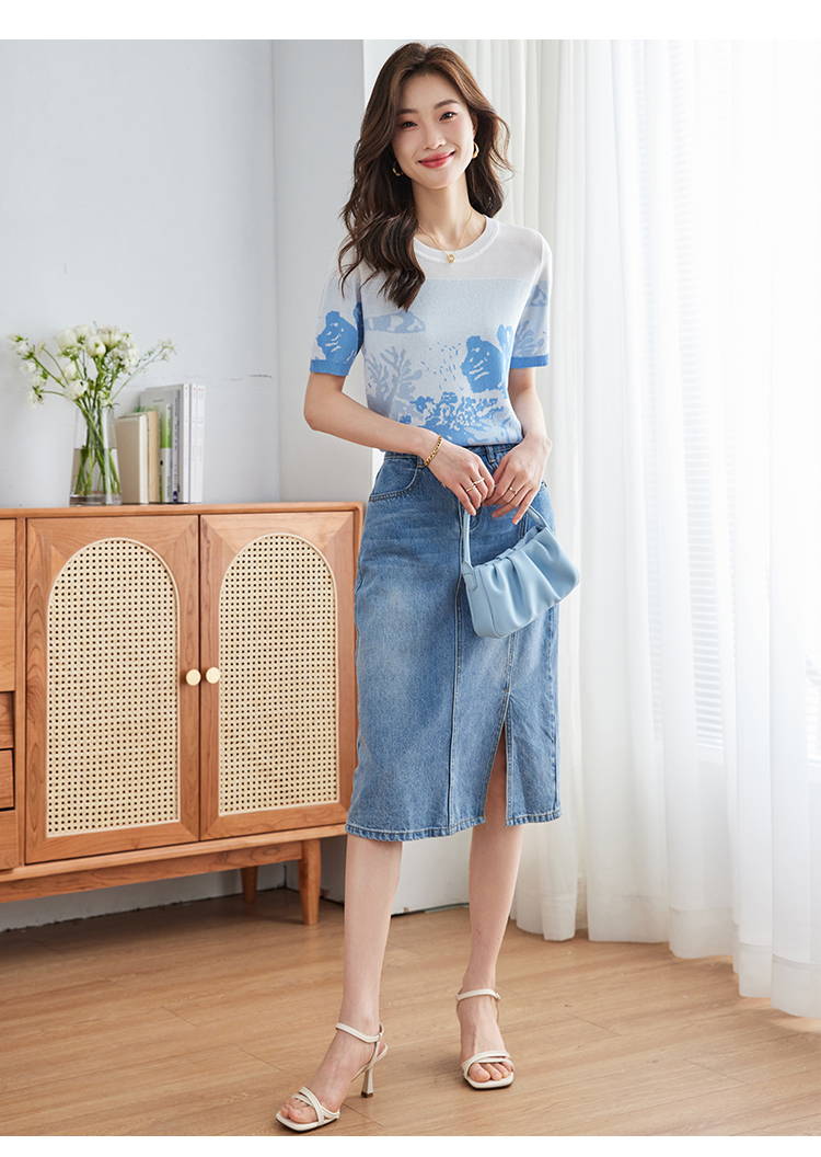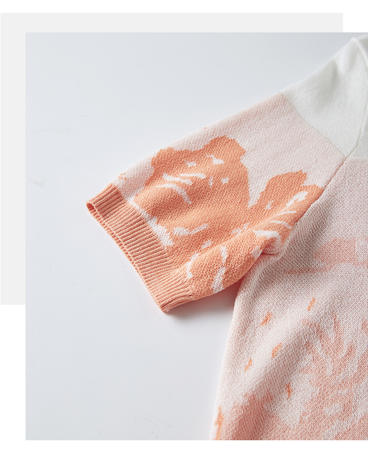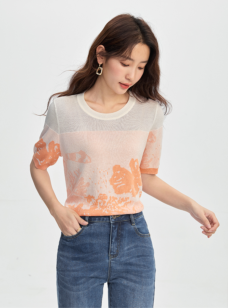 【专属特价】熙世界薄款冰丝针织衫T恤女短袖2025夏新款温柔甜美风提花上衣