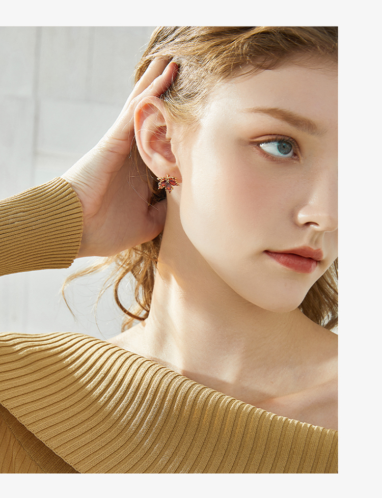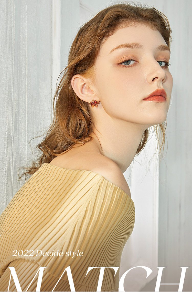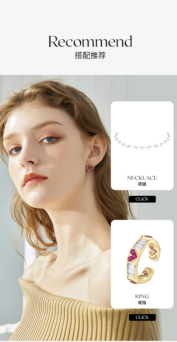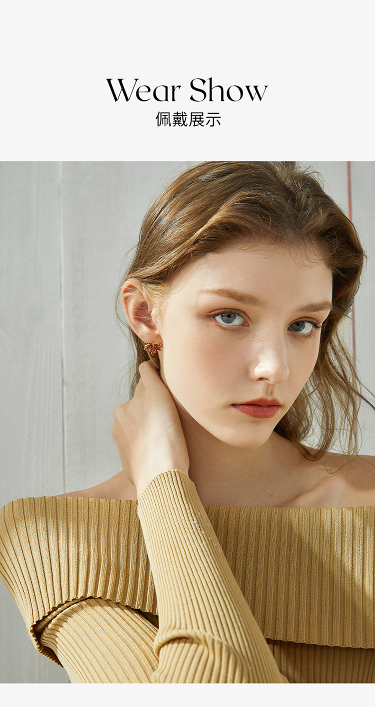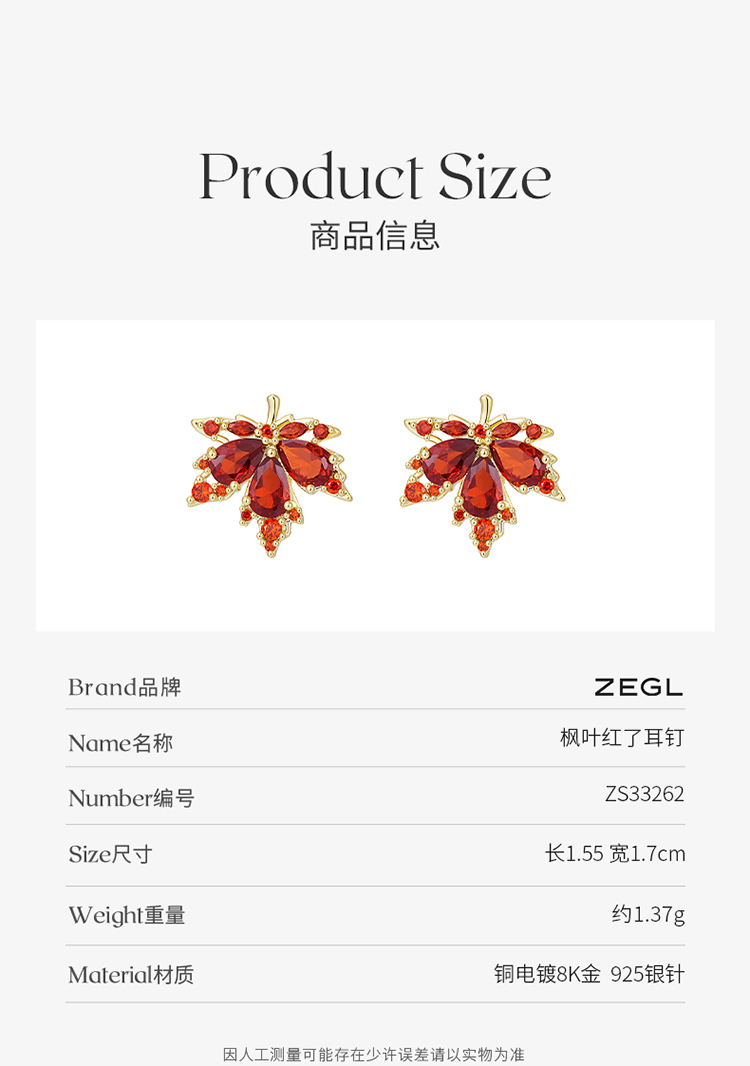 ZEGL红色枫叶耳环女2022年新款潮小众设计感高级耳钉925银针耳饰