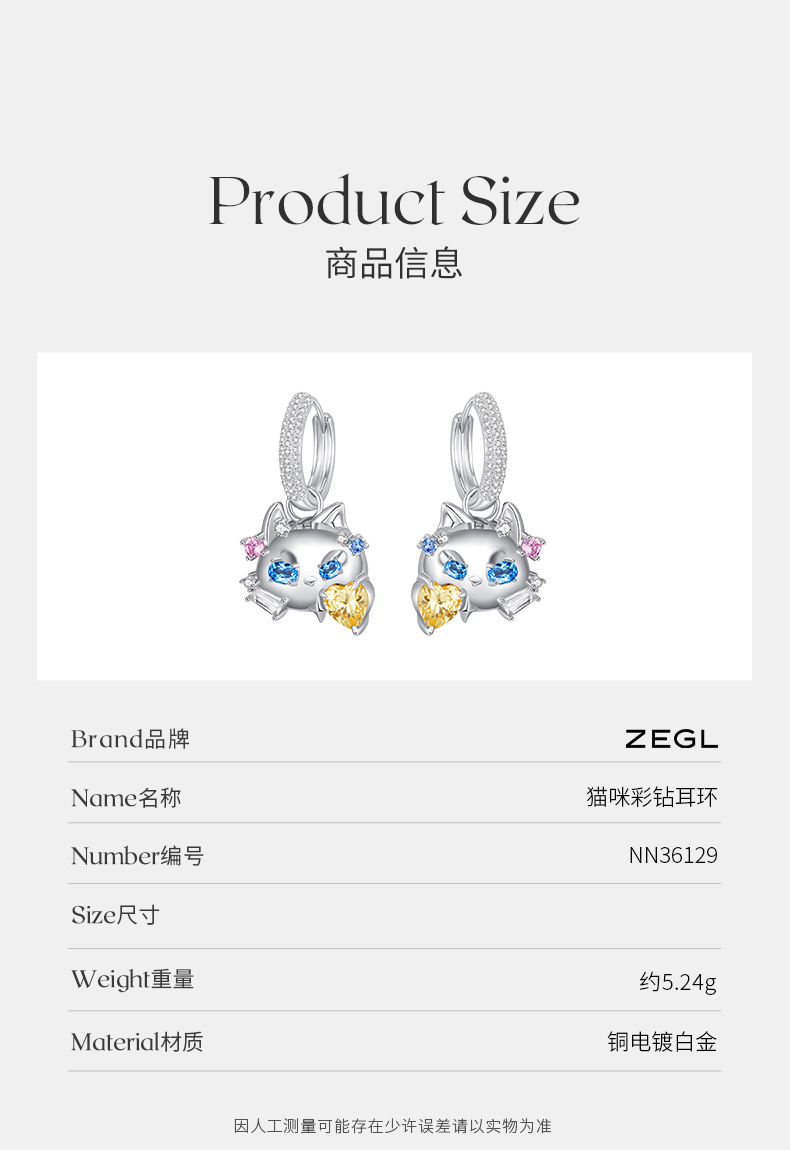 ZEGL设计师猫猫杂货铺系列猫咪彩钻耳环