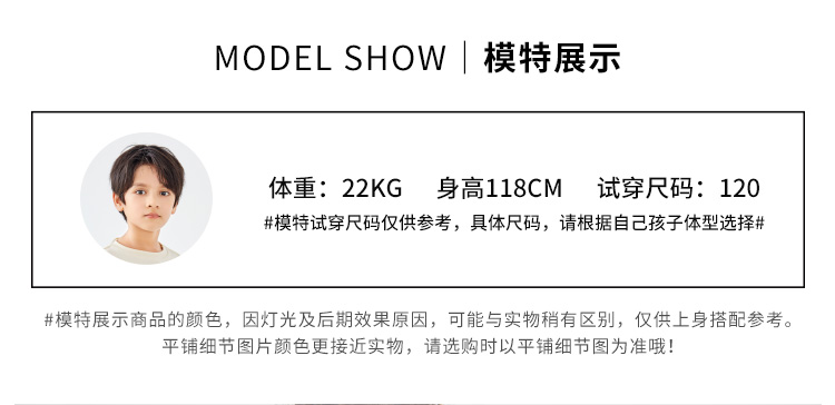 | 参考身高: 110/52 120/56 130/60 140/64 150/68 160/72 | 适用季节: 春秋 |