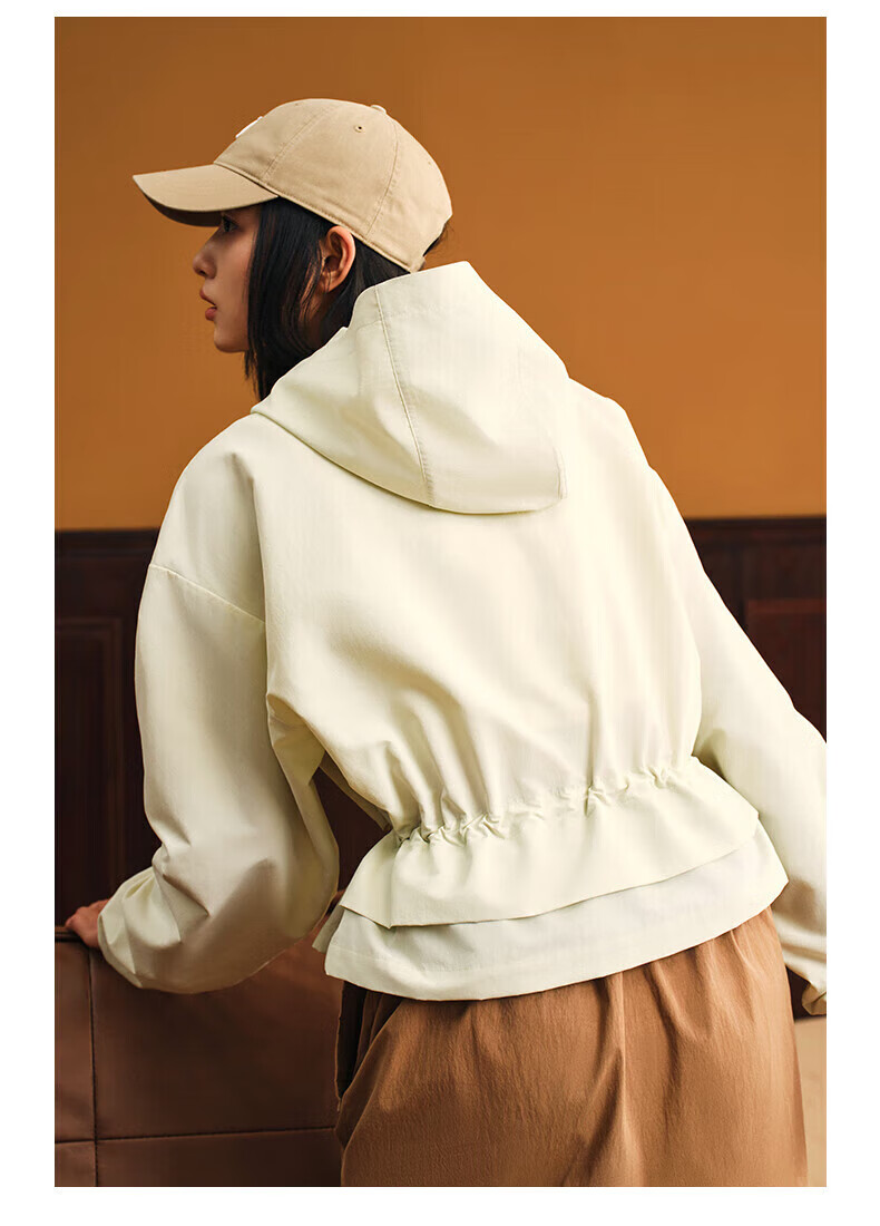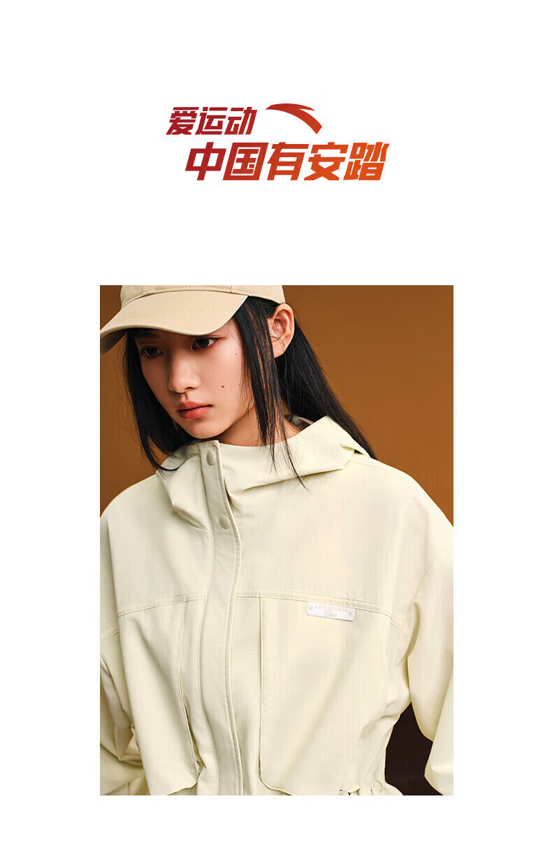 安踏(ANTA)【关晓彤同款】梭织外套 女新款休闲抽绳收腰运动上衣162538603 雪花白-1