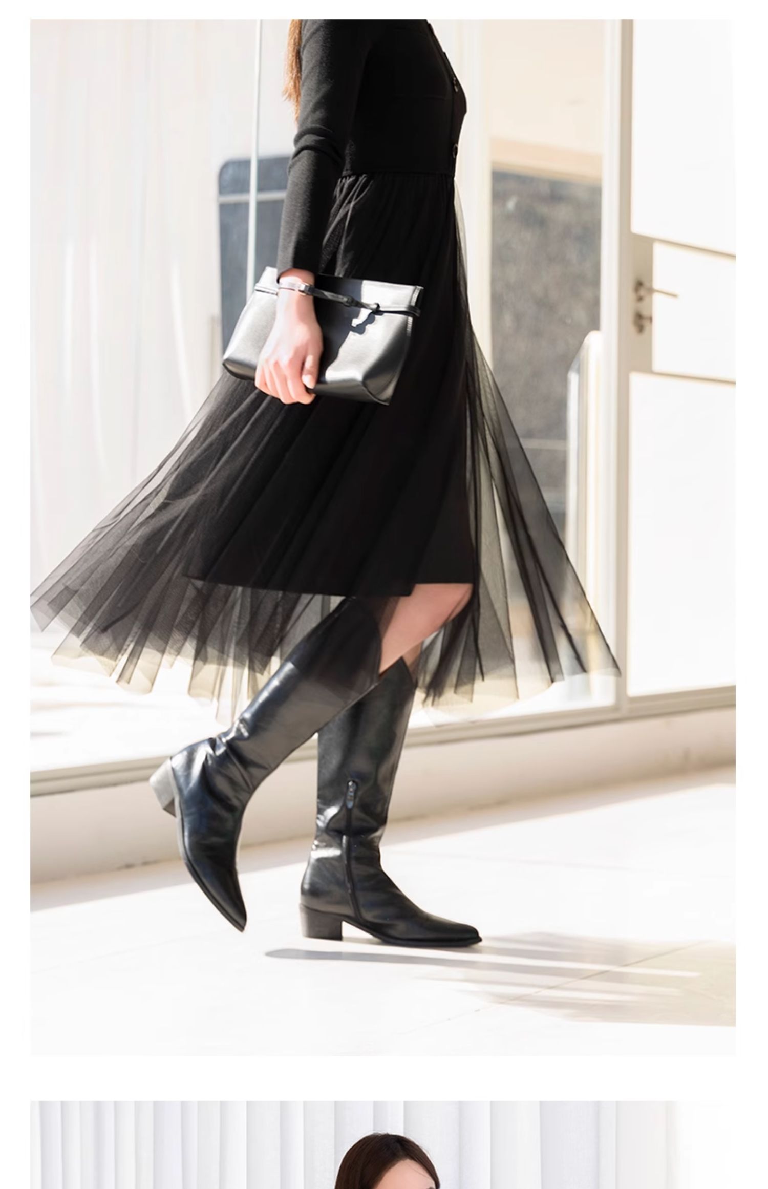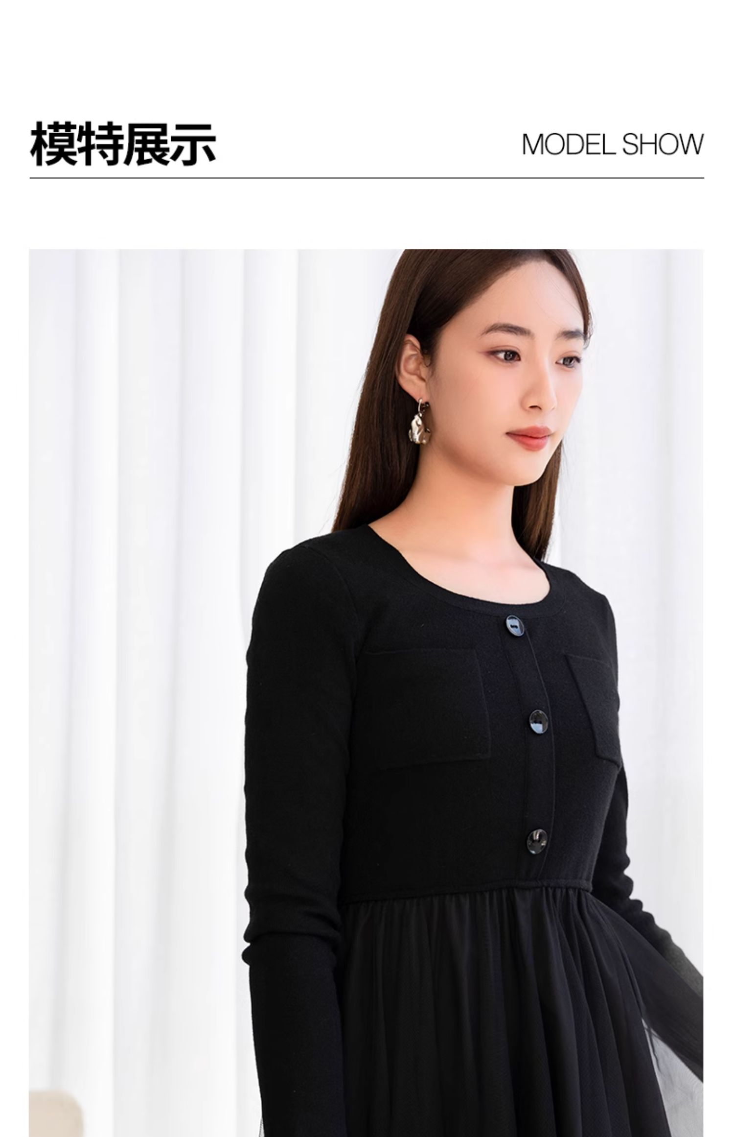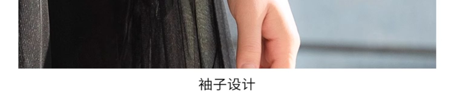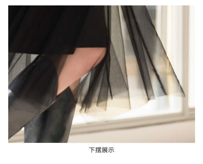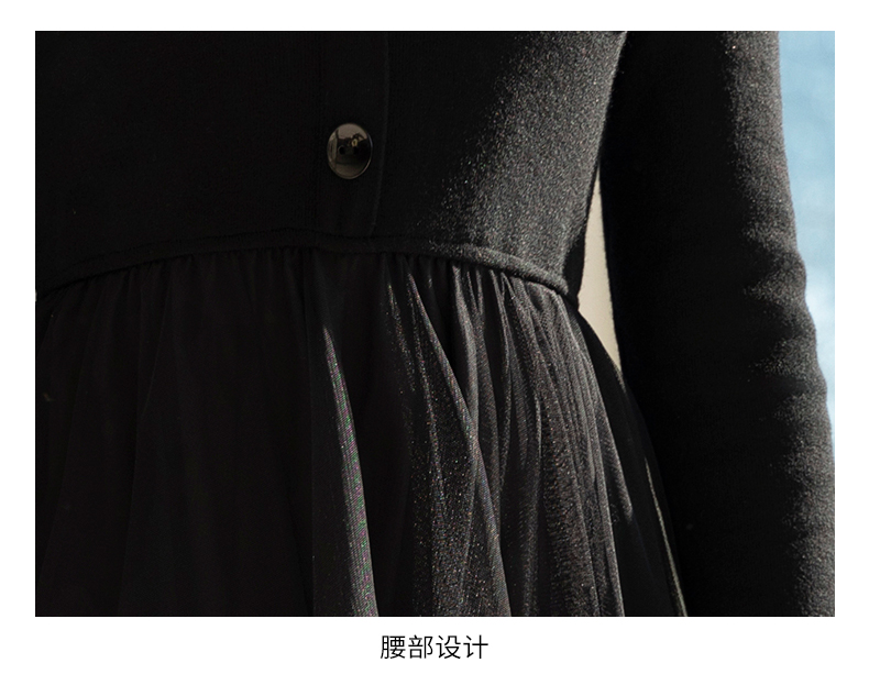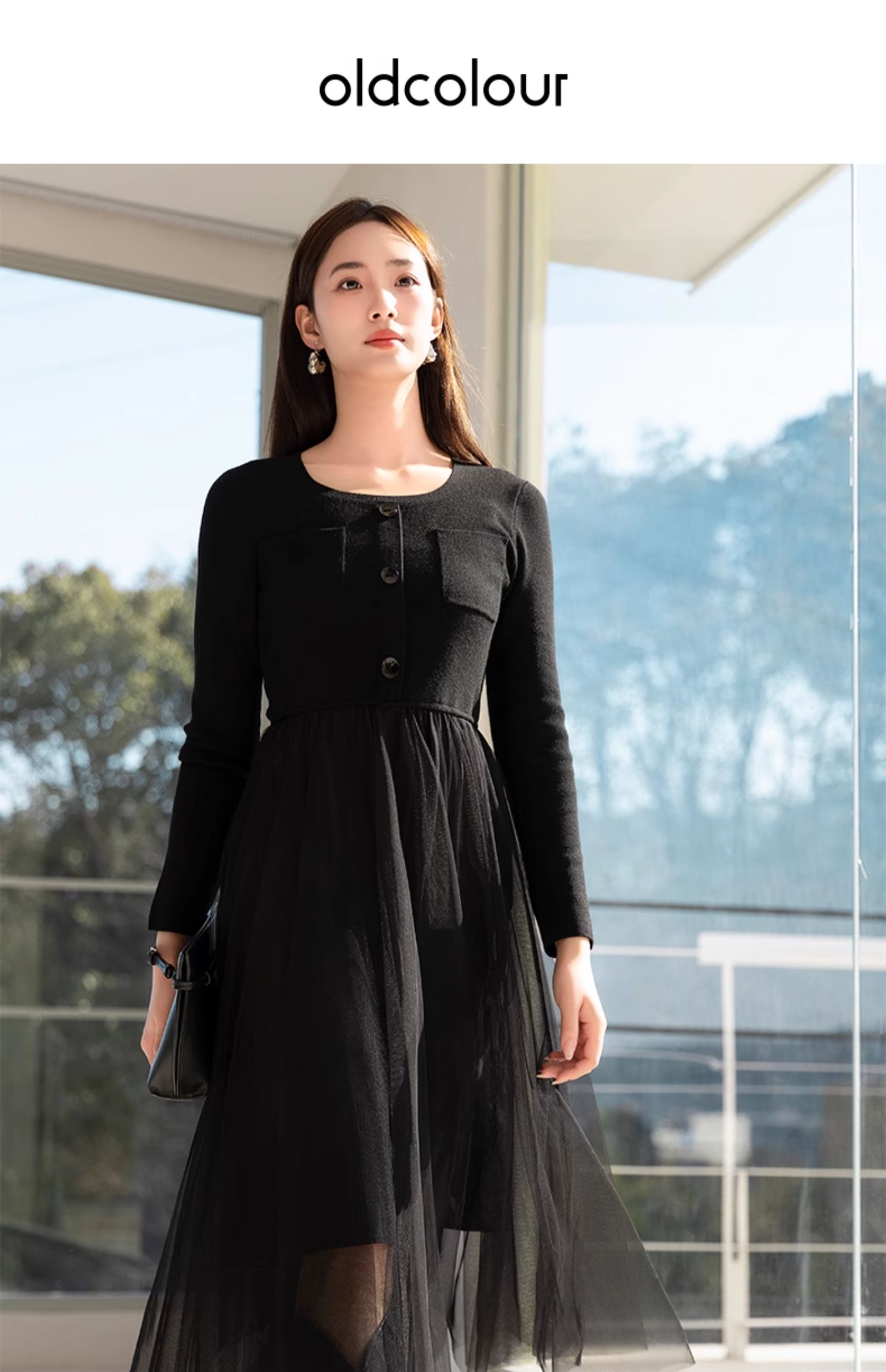 oldcolour春季新款黑色气质蕾丝拼接网纱长袖连衣裙女Q111001A1