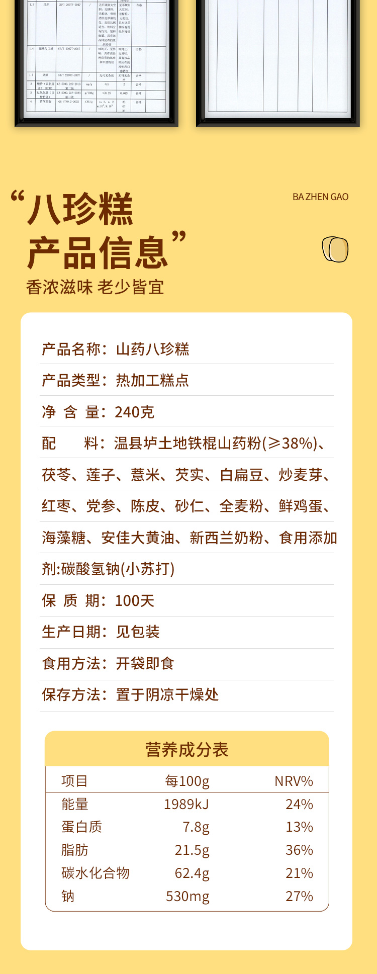 怀府街 新一代古方八珍糕240g/盒 手工制作 0蔗糖 开袋即食 健康零食 48小时发货