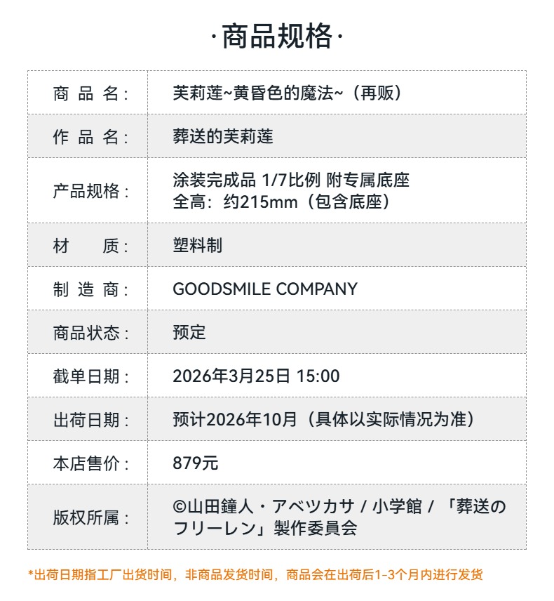 【GSC预售定金】1/7标准比例 芙莉莲~黄昏色的魔法~ 葬送的芙莉莲