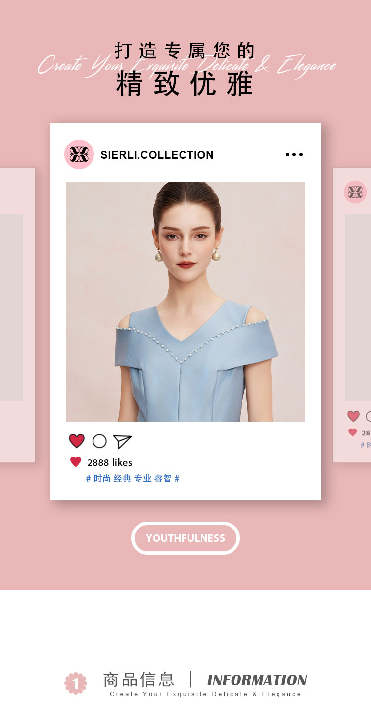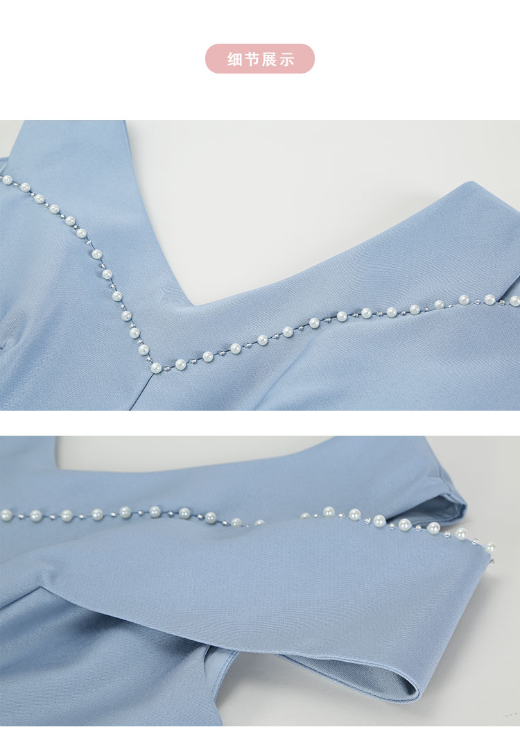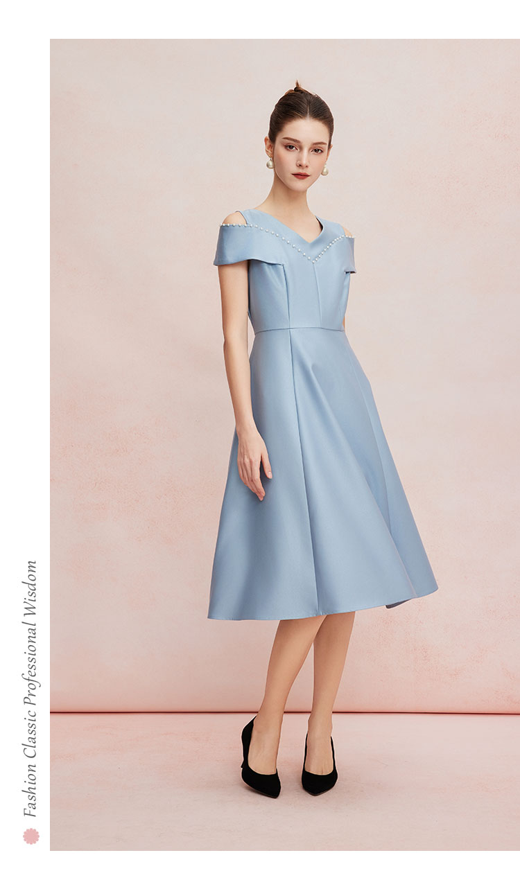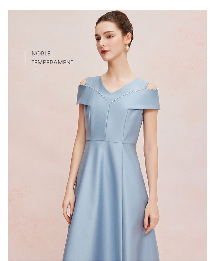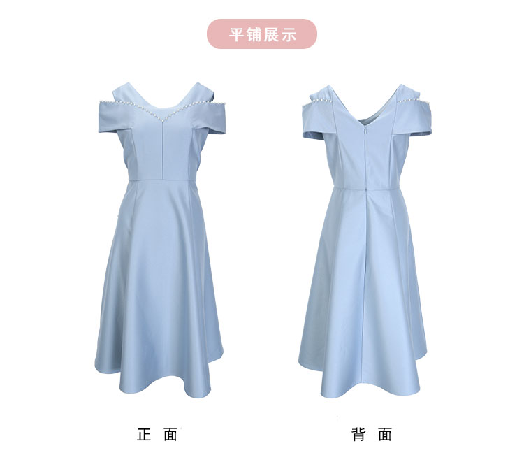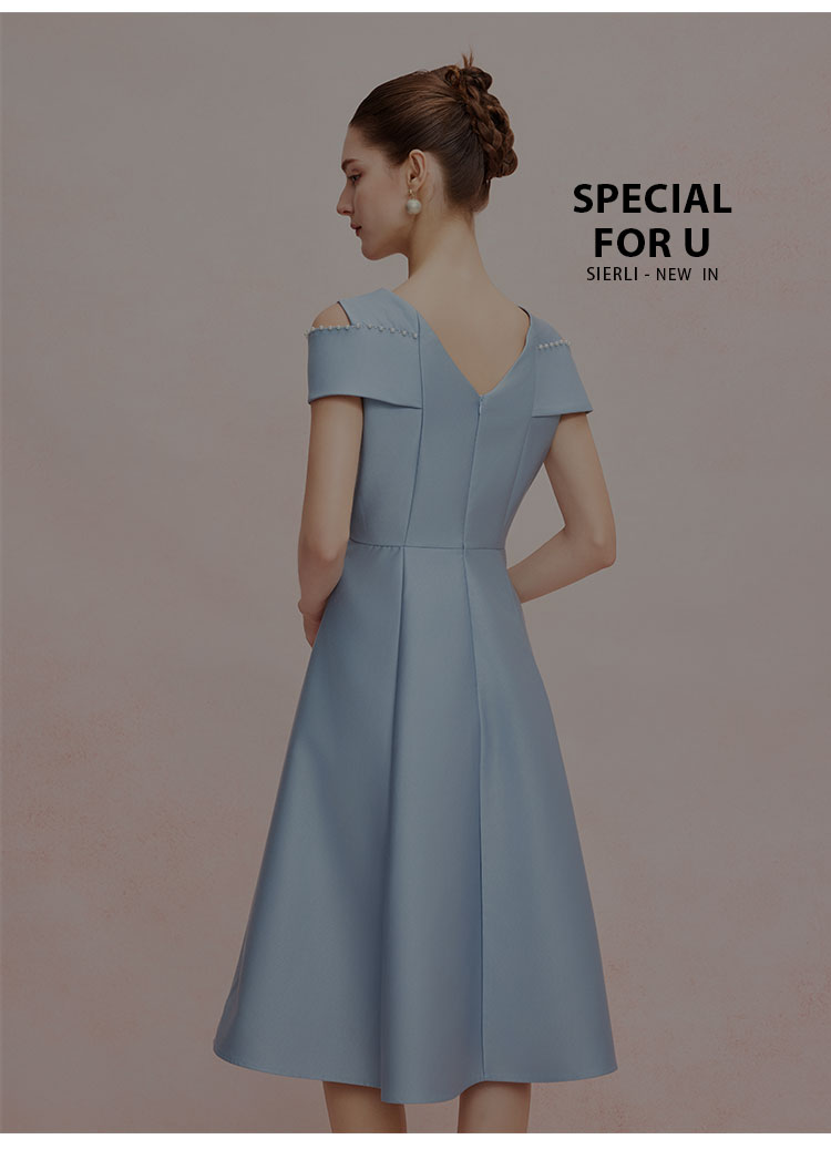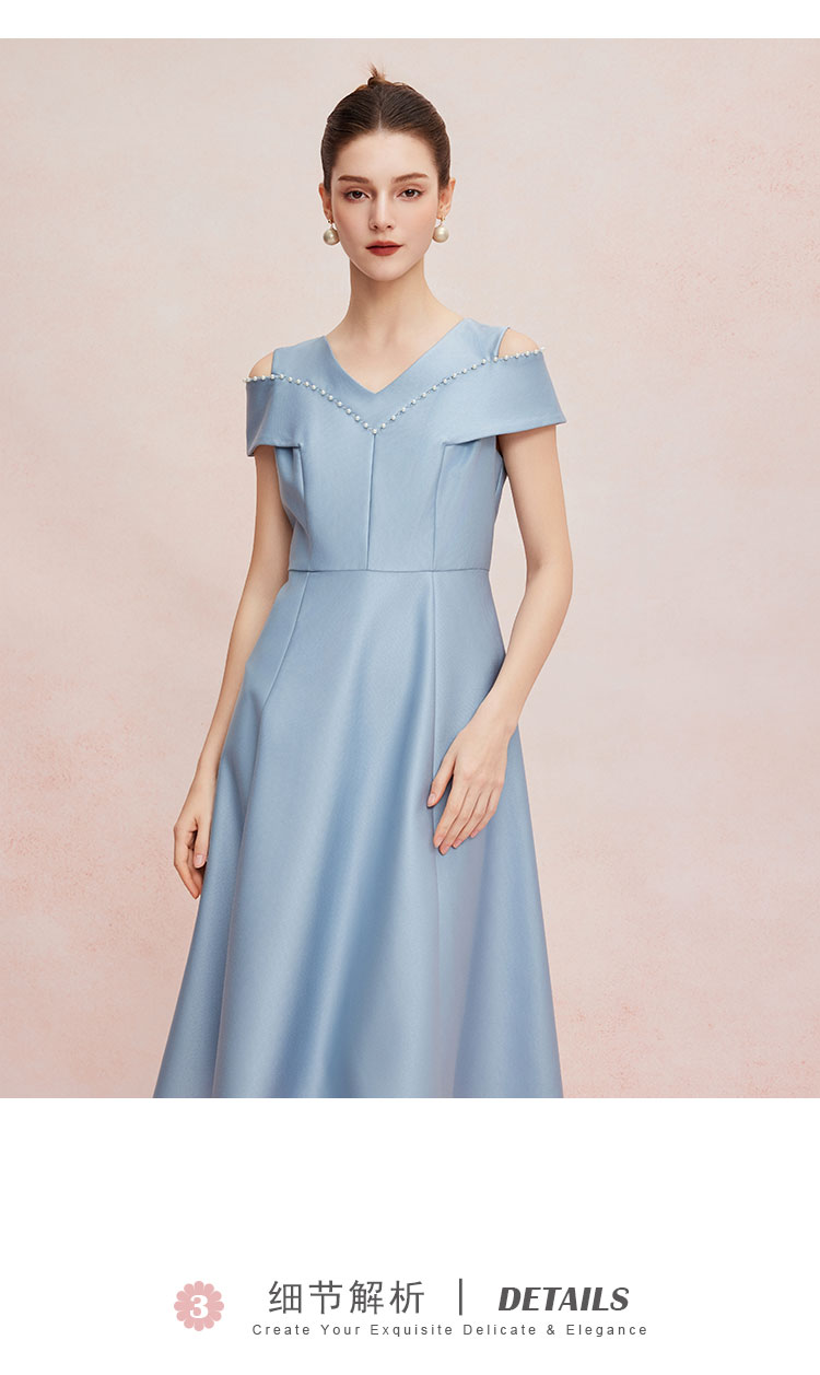 QF8A2斯尔丽25夏款新款落肩手工钉珍珠收腰放摆小宴会连衣裙