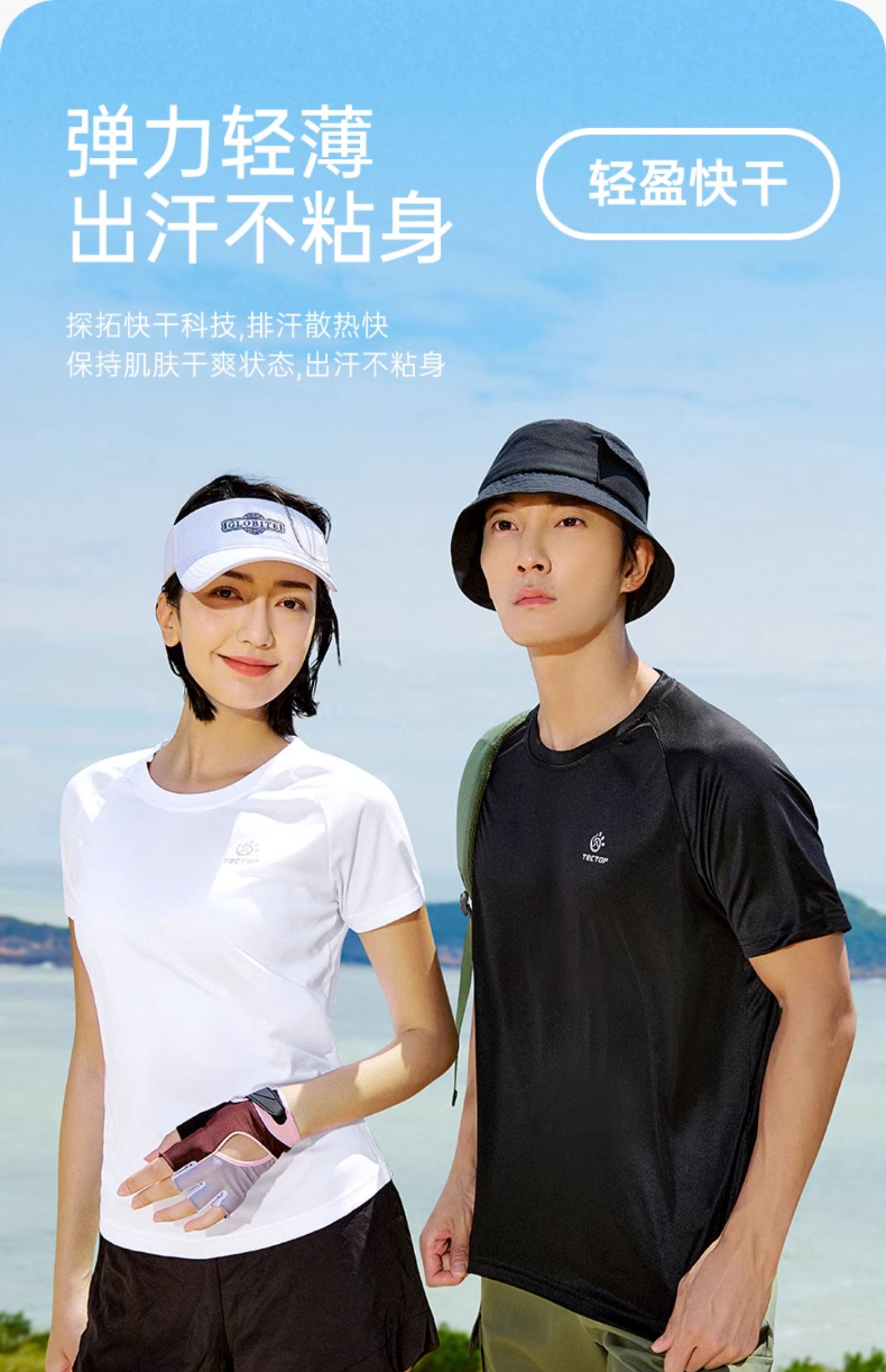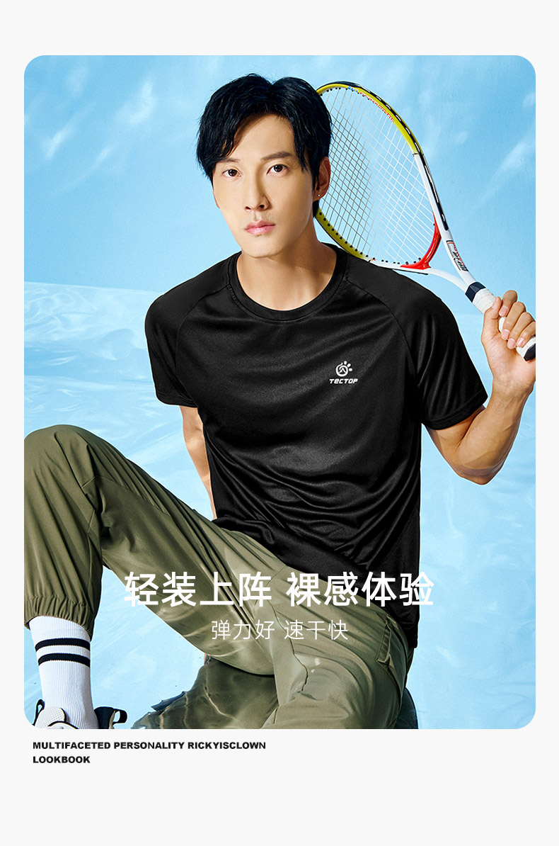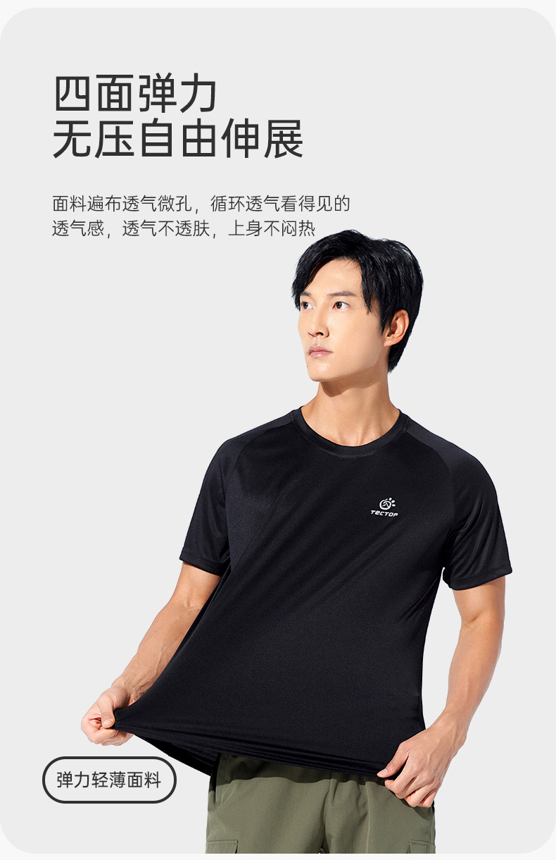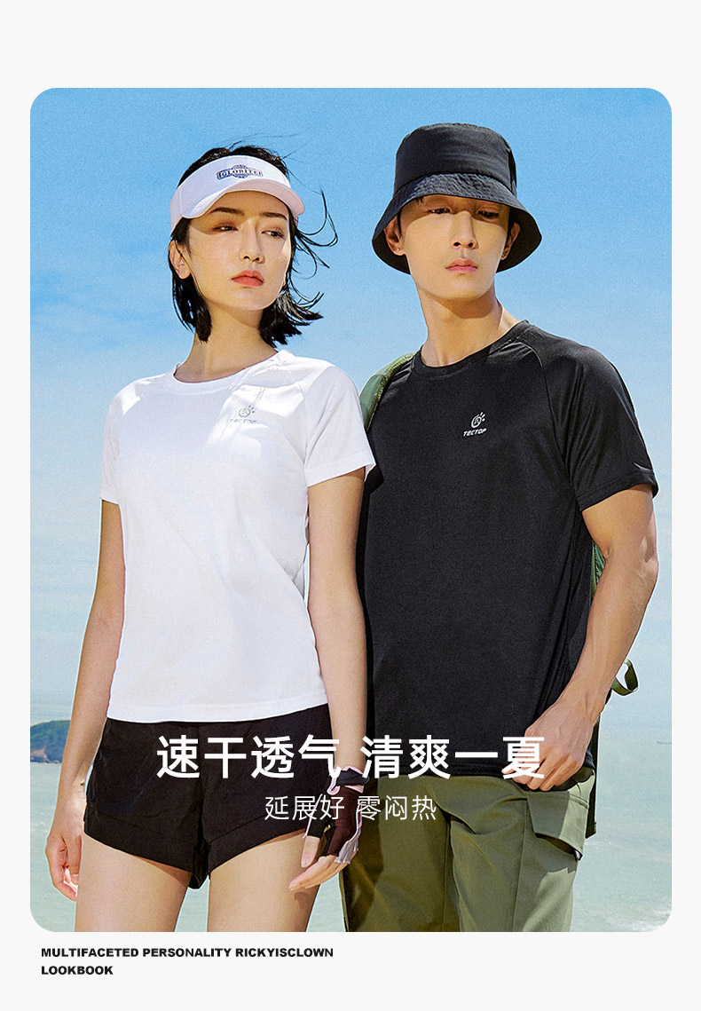 探拓户外运动速干短袖T恤男女夏季透气基础宽松跑步健身快干上衣