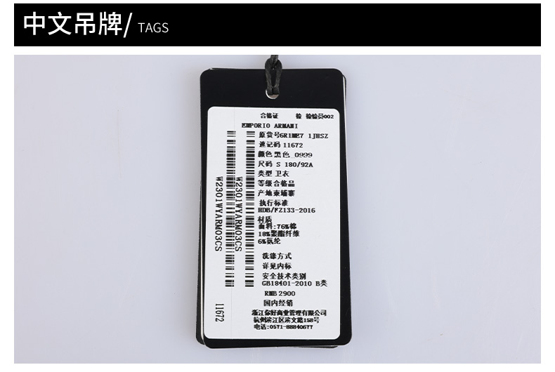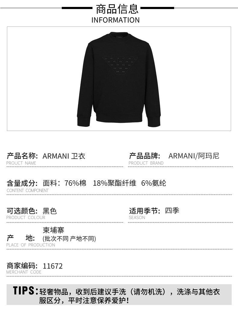 Emporio Armani 阿玛尼 男士针绣飞鹰logo休闲卫衣外套 11672