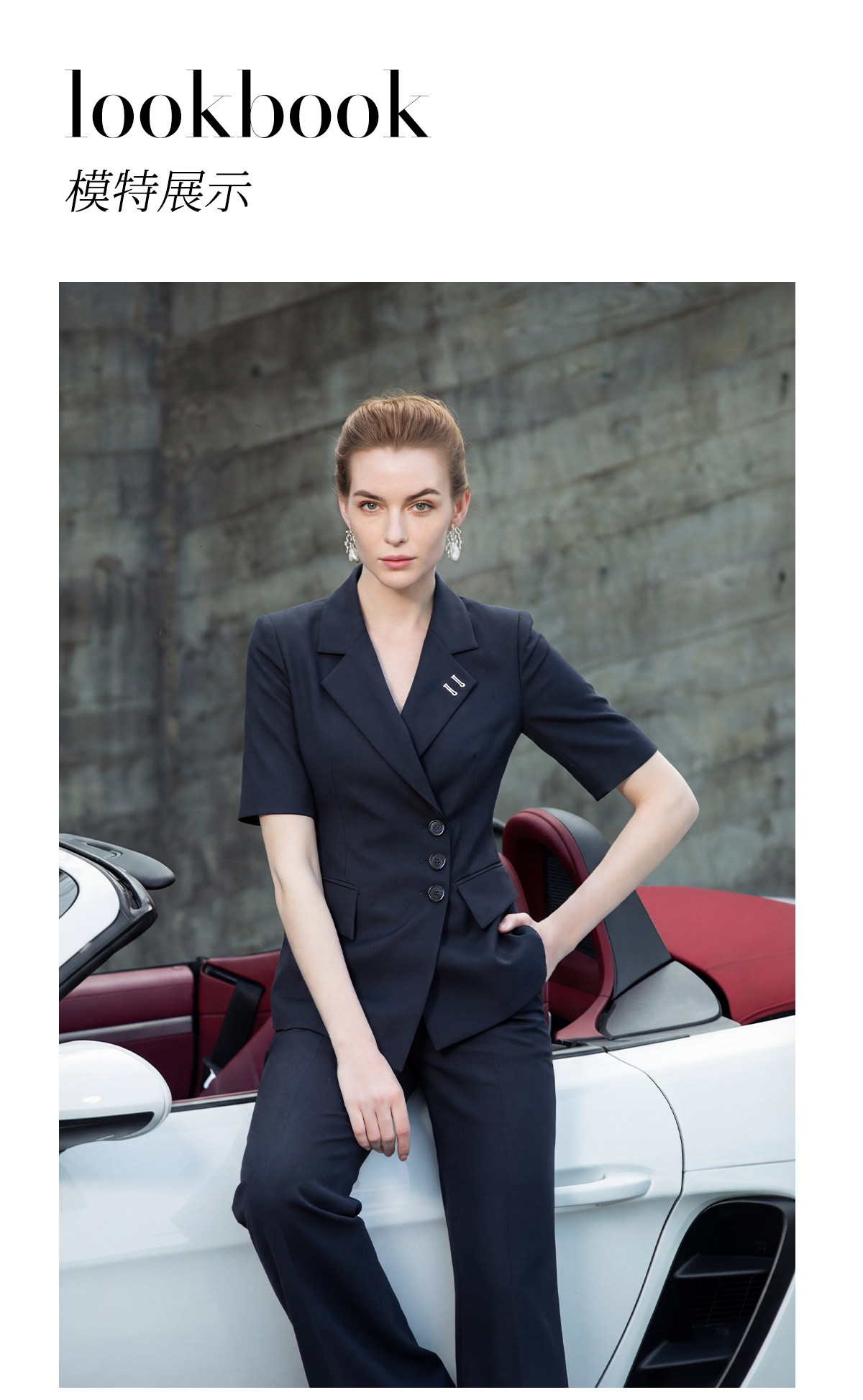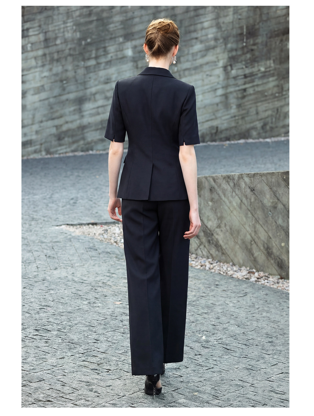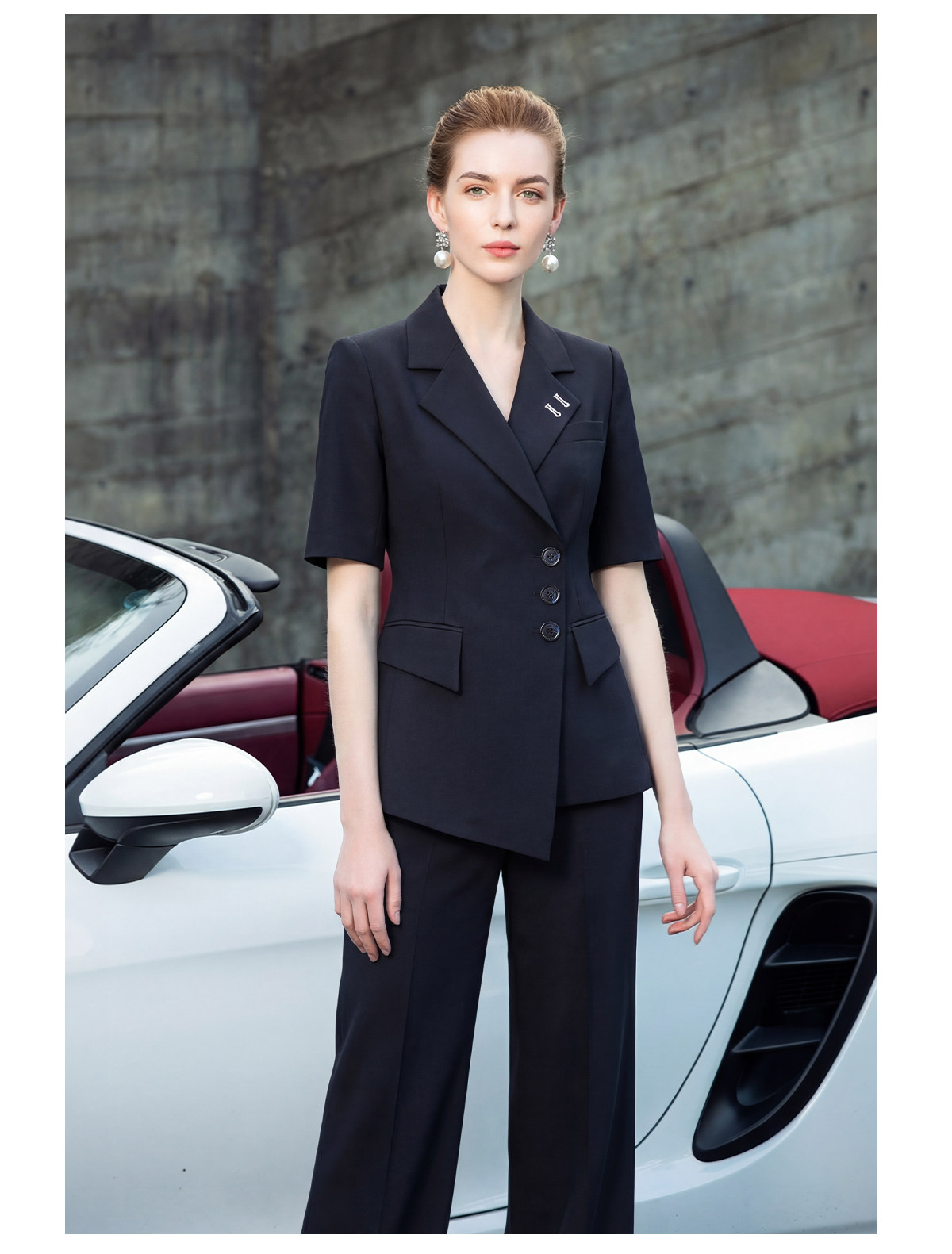 IWY/藏青色商务短袖西装套装女夏季气质职业装双排扣正装工作服WCP511
