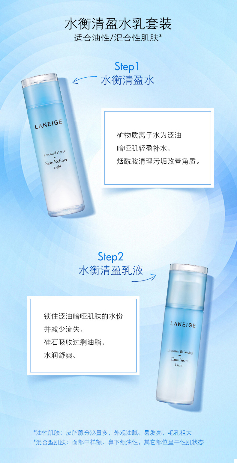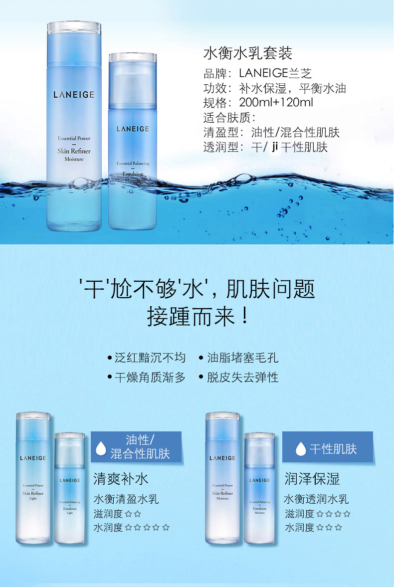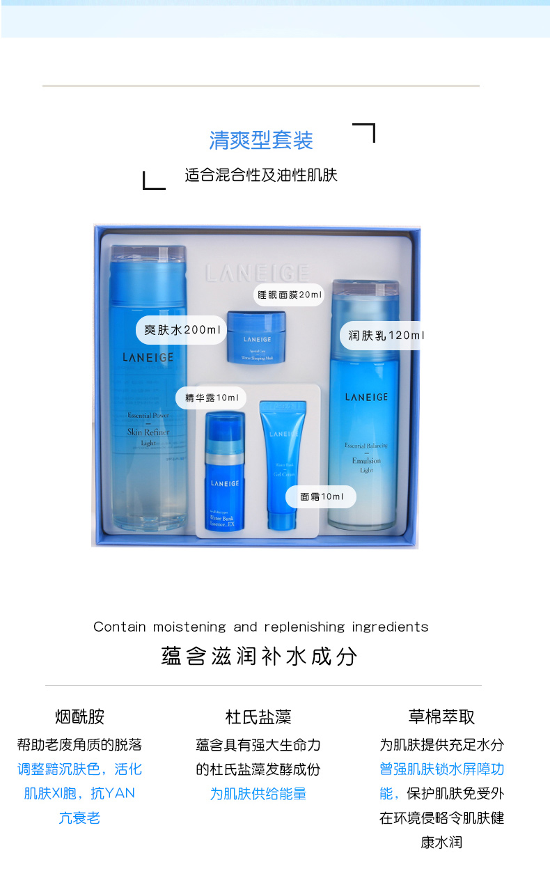 【现货】韩国兰芝LANEIGE水乳套装水库凝肌2件套水乳 清爽型 滋潤型