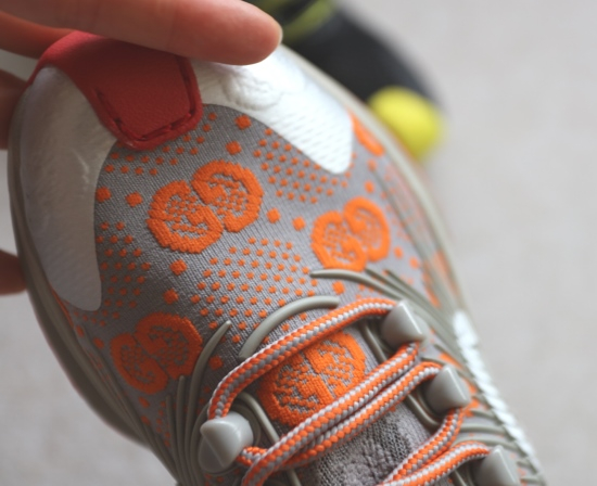 鞋面是欧洲过来的环保弹力纤维 飞线一体编织 平纹针织料的纹理