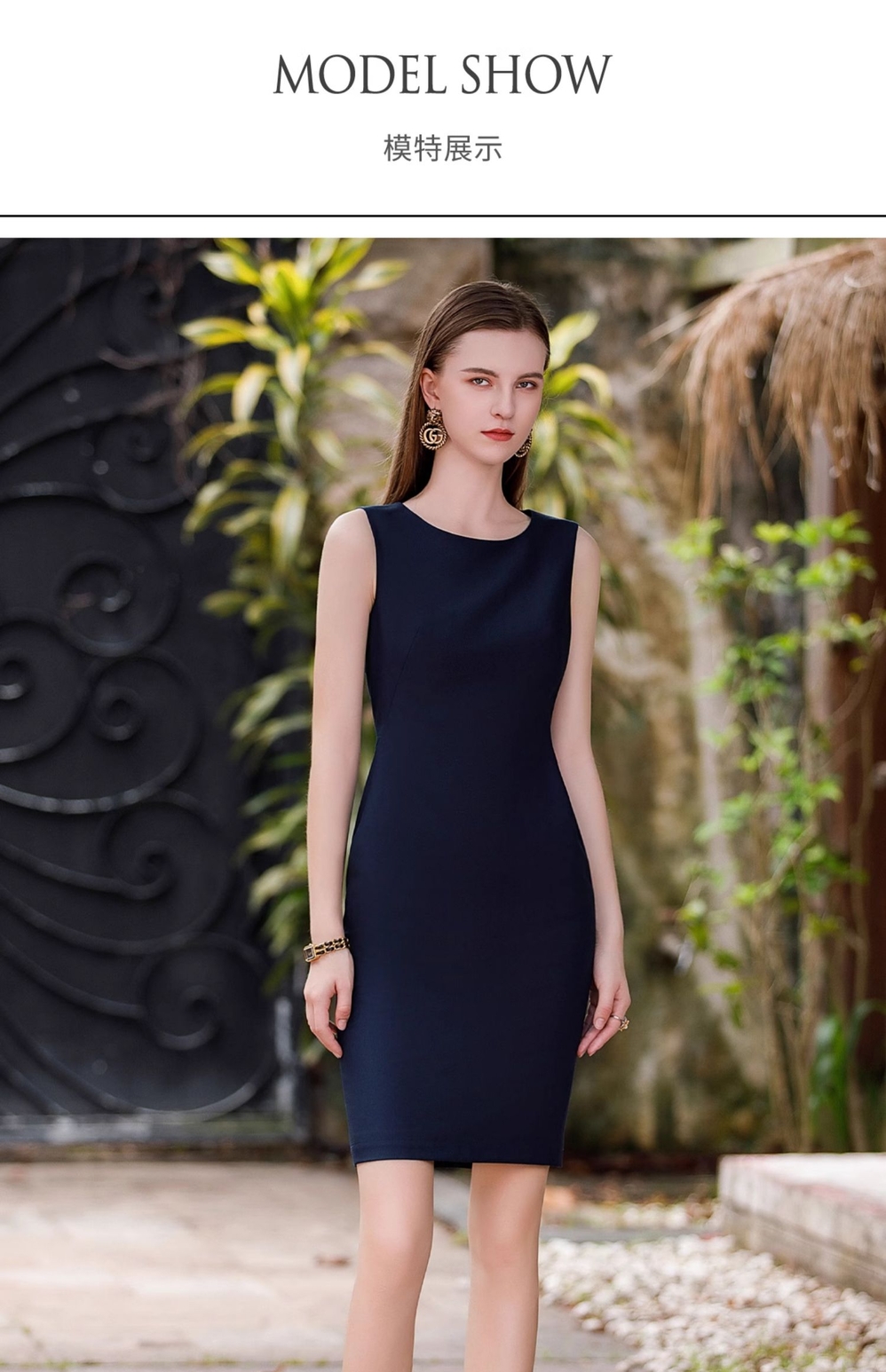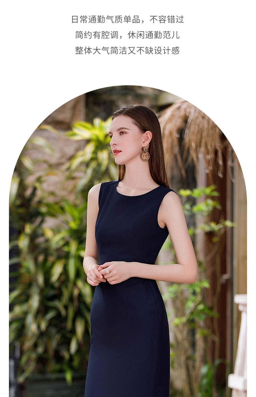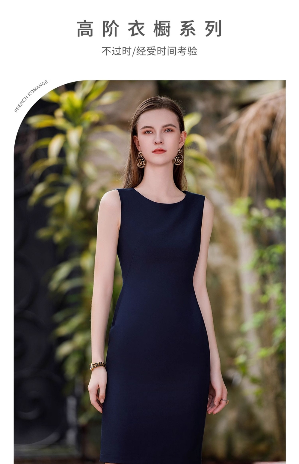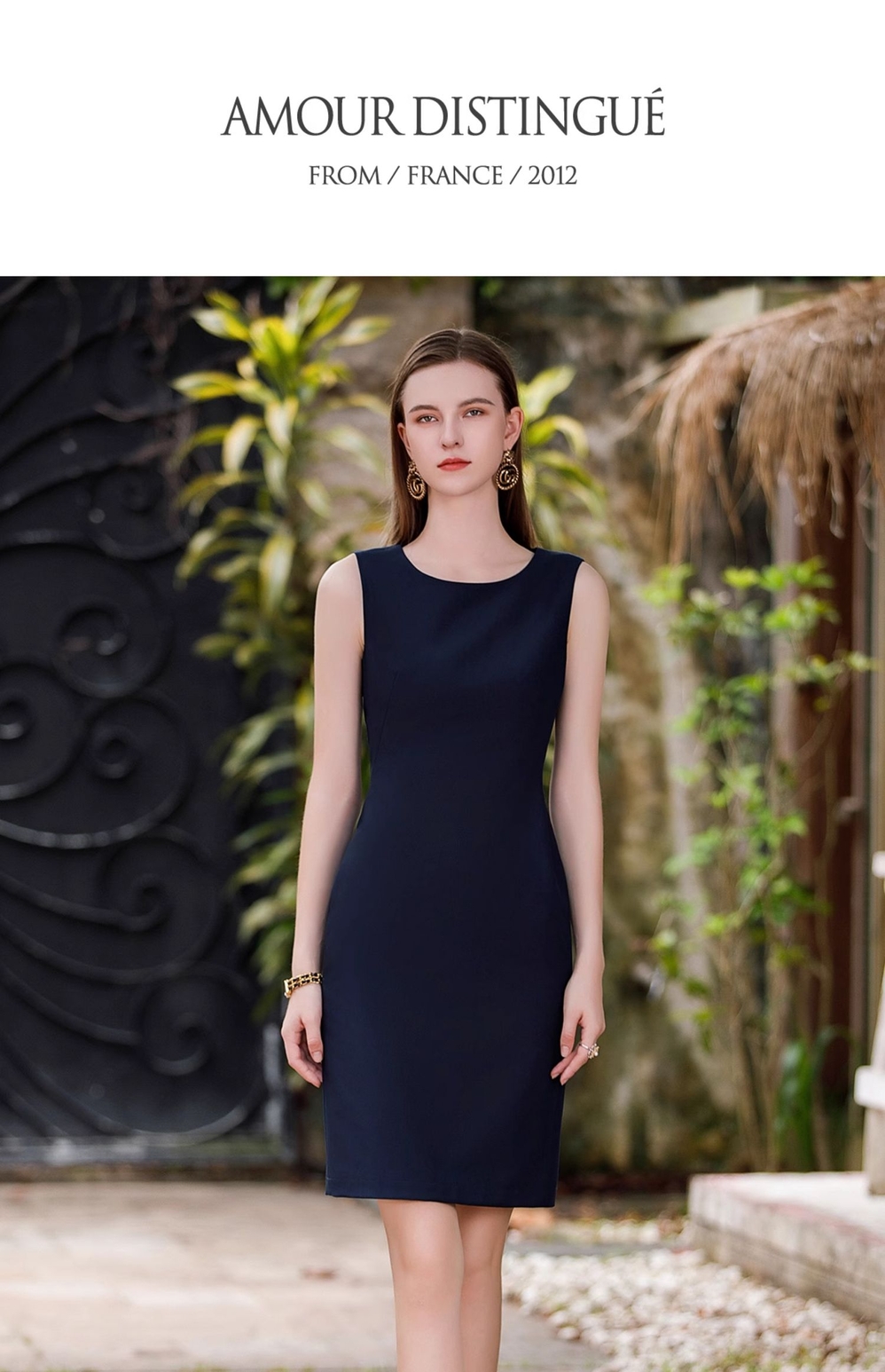 IWY/藏青色无袖连衣裙配西装裙子修身高级通勤Q736