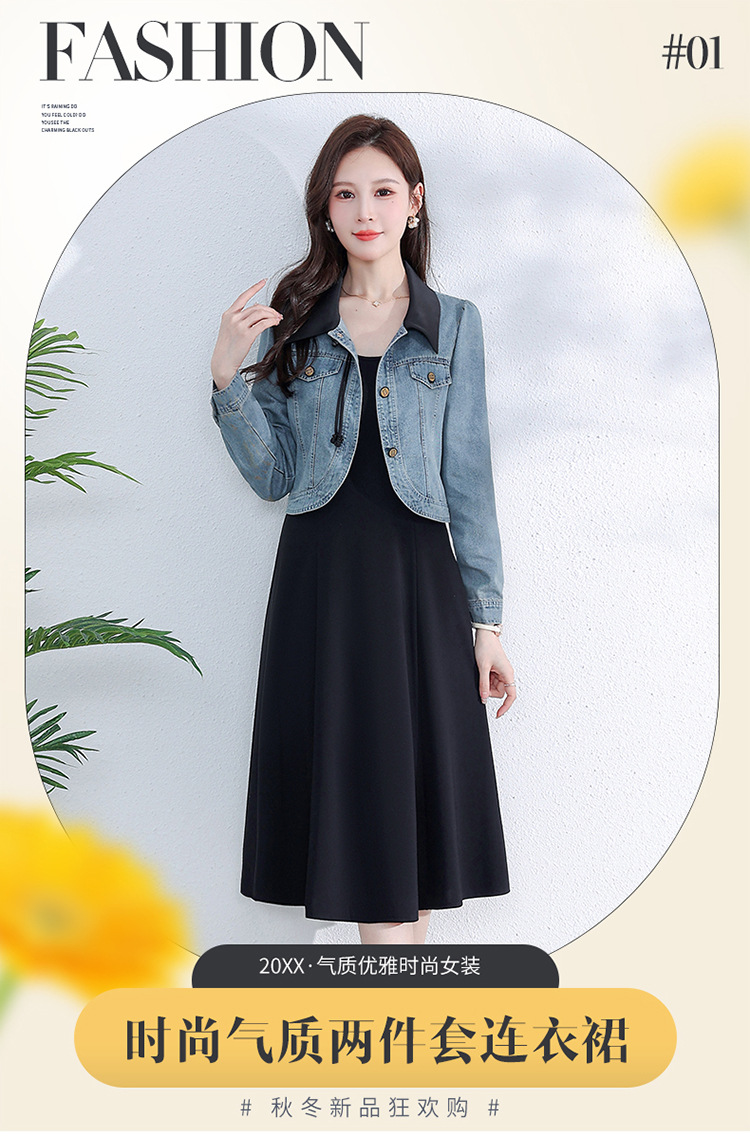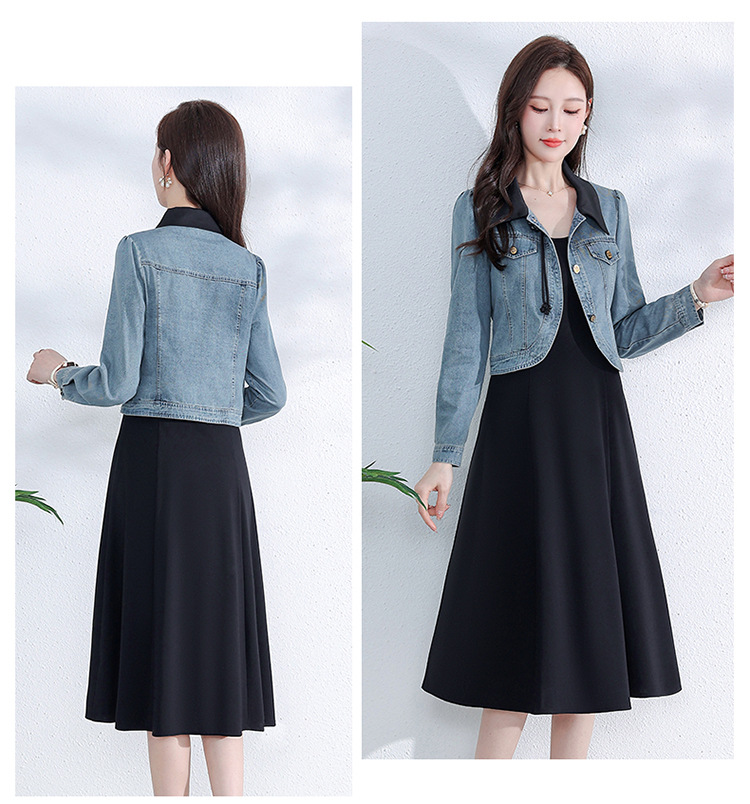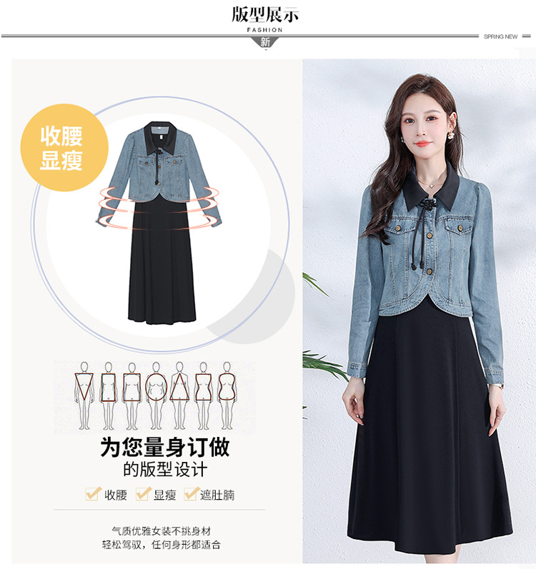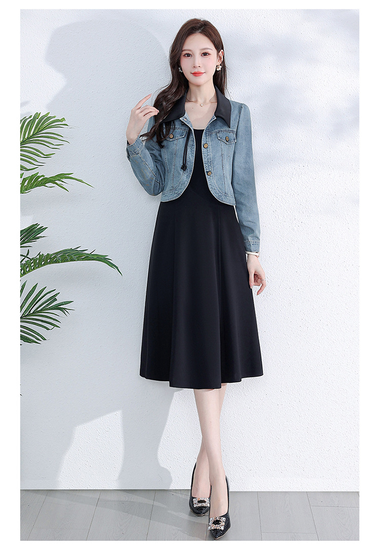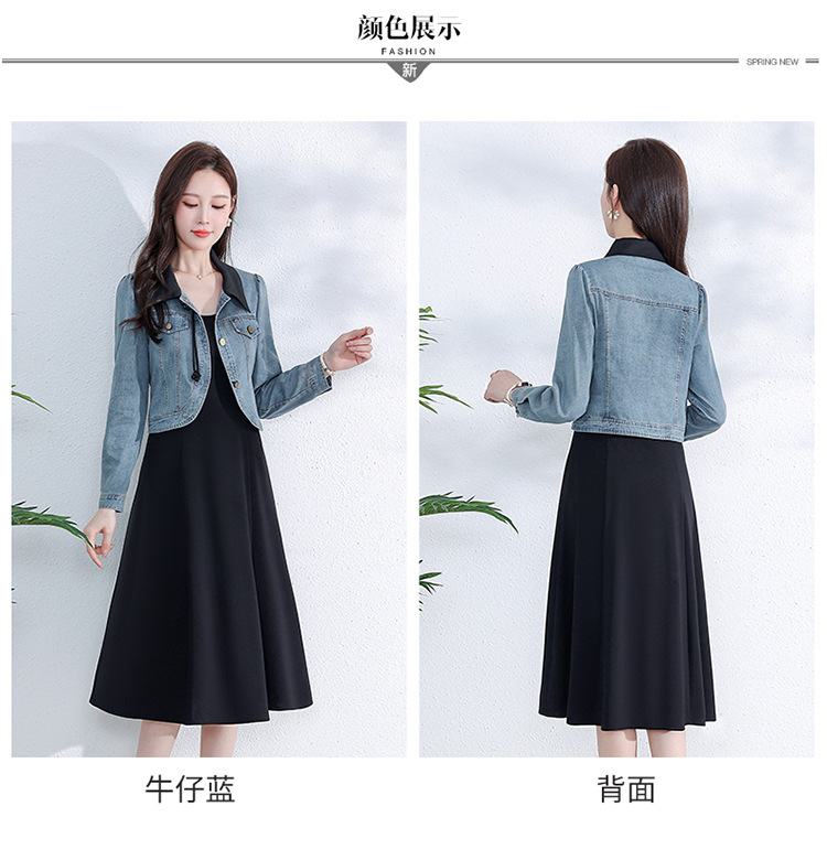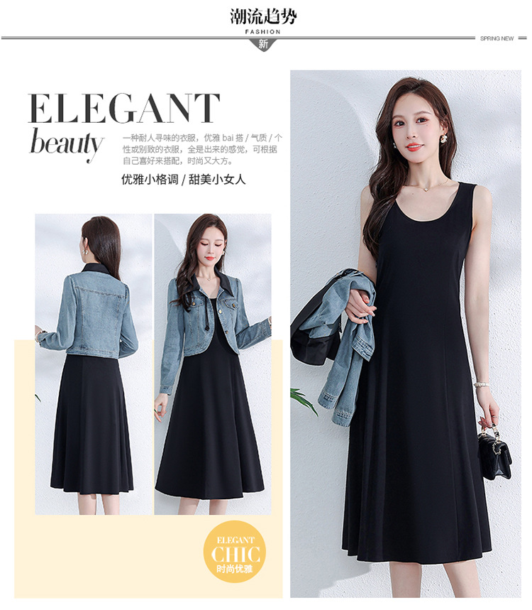 牛仔外套时尚春季新款,中长款黑色打底裙两件套连衣裙QYM-YM-A1808-Y