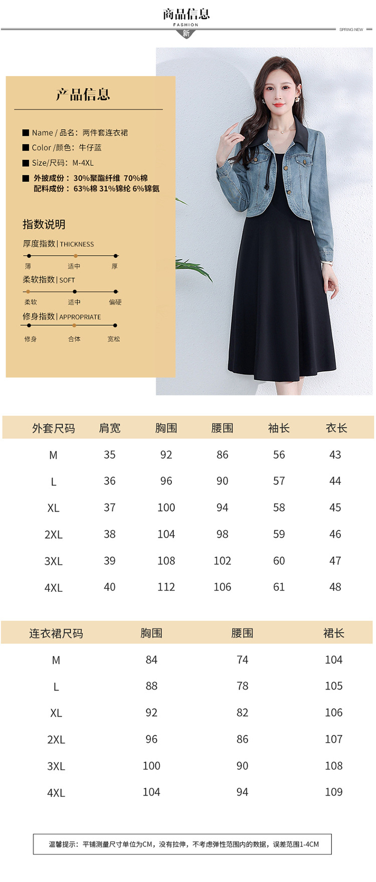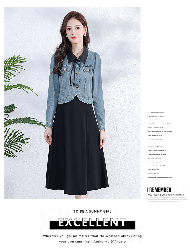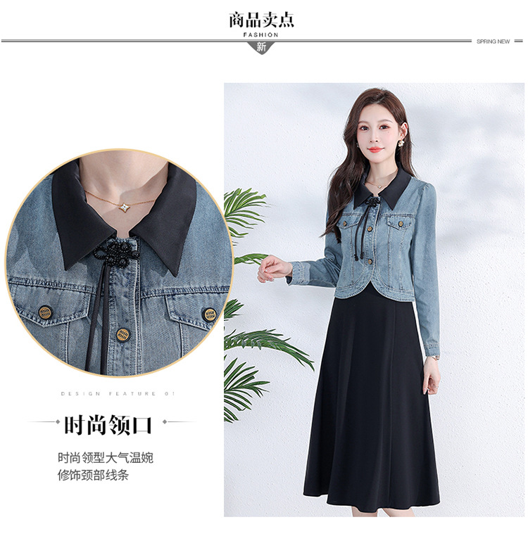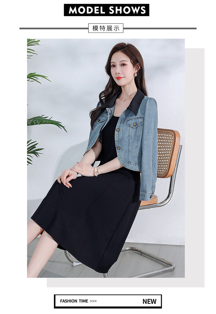 牛仔外套时尚春季新款,中长款黑色打底裙两件套连衣裙QYM-YM-A1808-Y